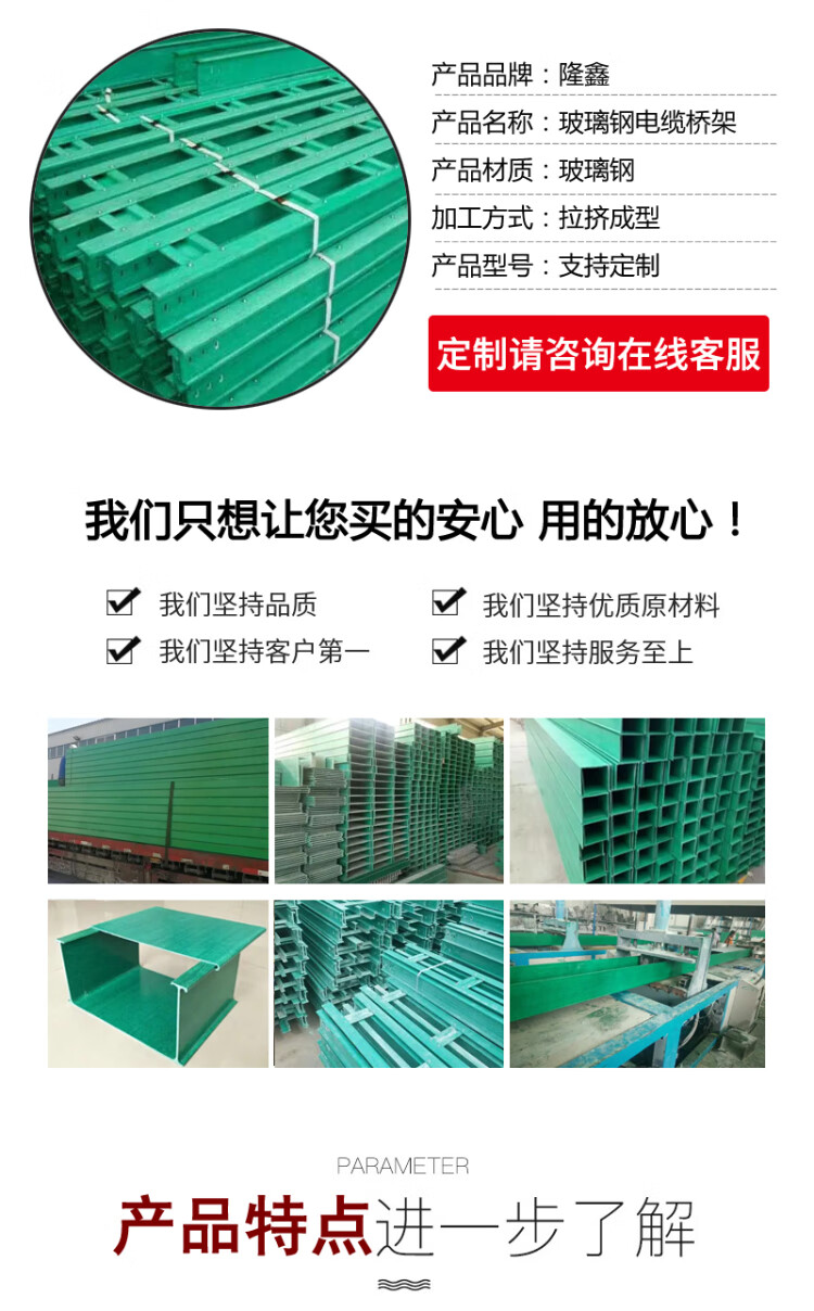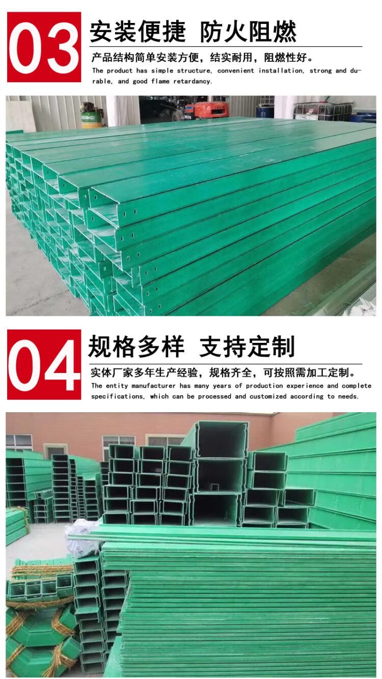 Fiberglass cable tray anti-corrosion flame retardant trough ladder type cable trough polyurethane composite green trough box wire box 400 100*50