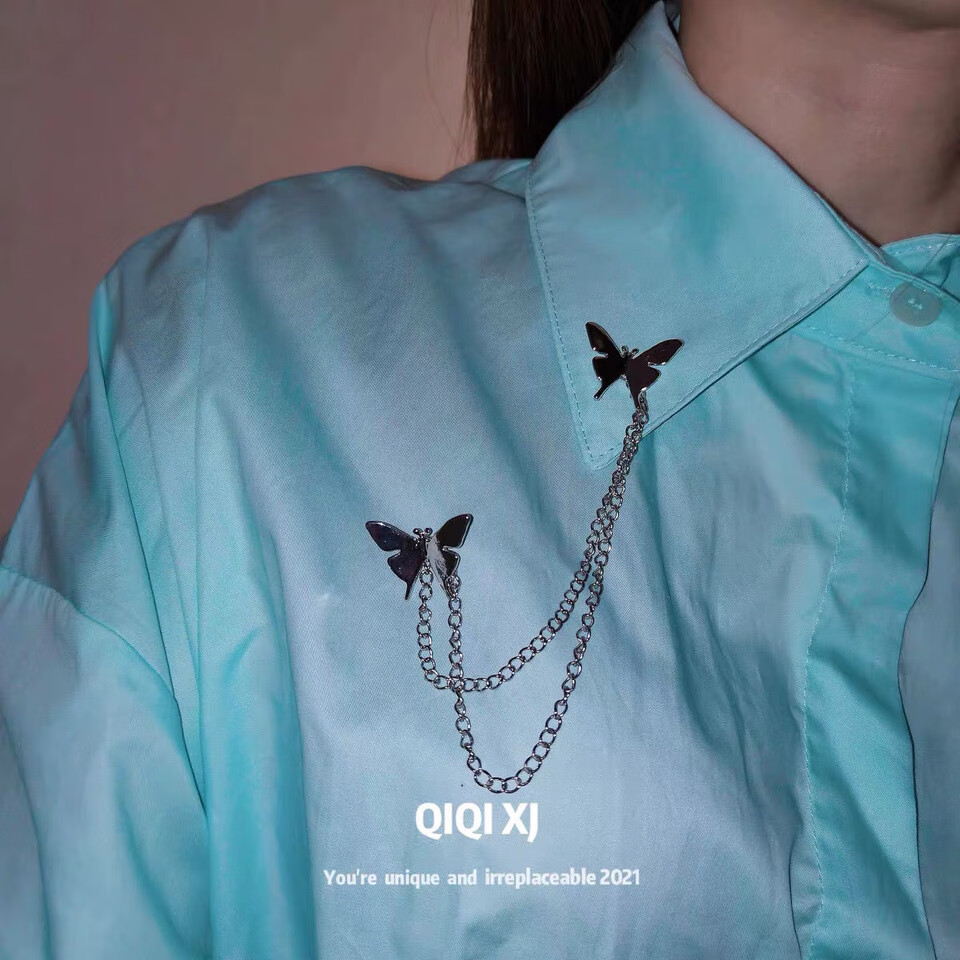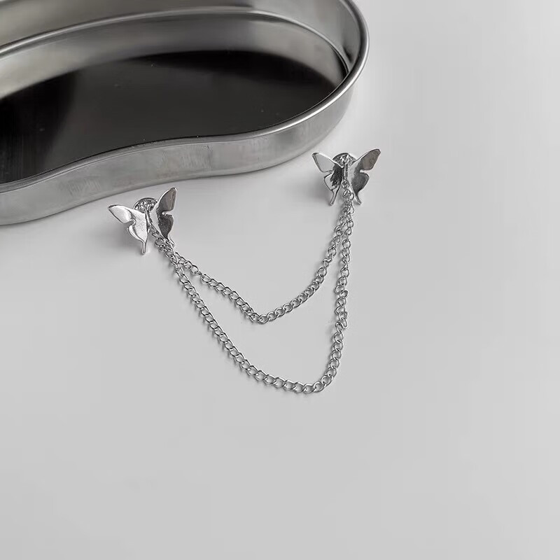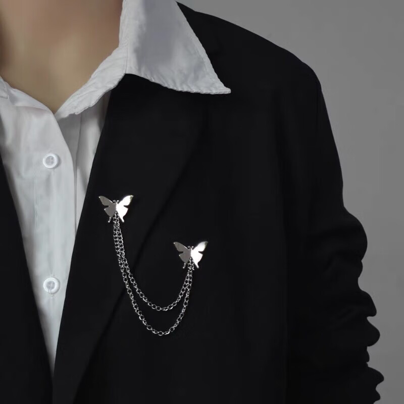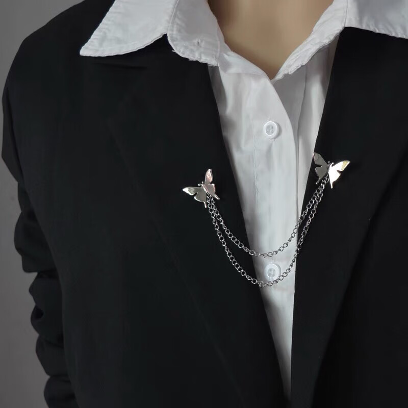 Containing spring flowers ins trendy personalized metal butterfly chain brooch for women versatile simple tassel brooch corsage clothes suit accessories silver 2 butterfly brooches