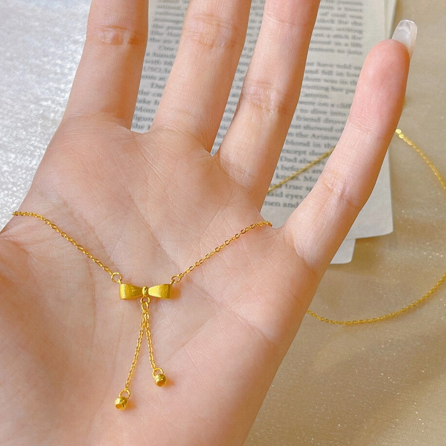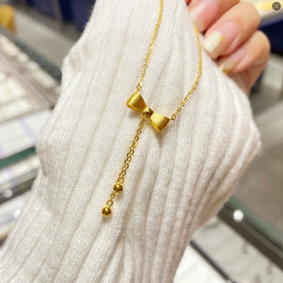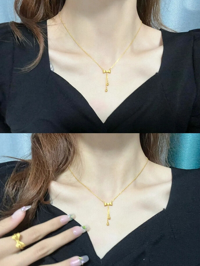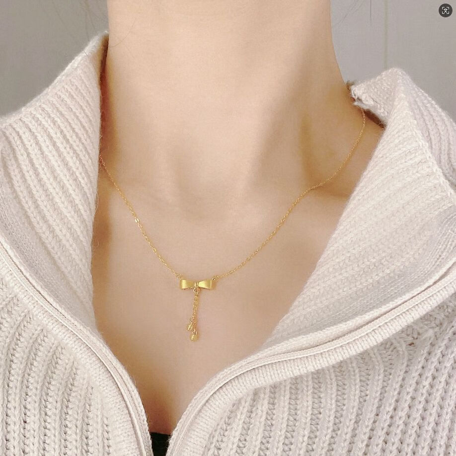Yangyan butterfly double tassel necklace for women, sterling silver gold-plated bow pendant, clavicle chain, sweet girl gift to best friend trendy butterfly double tassel necklace