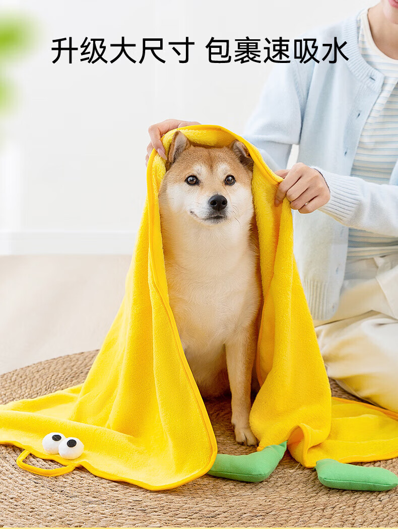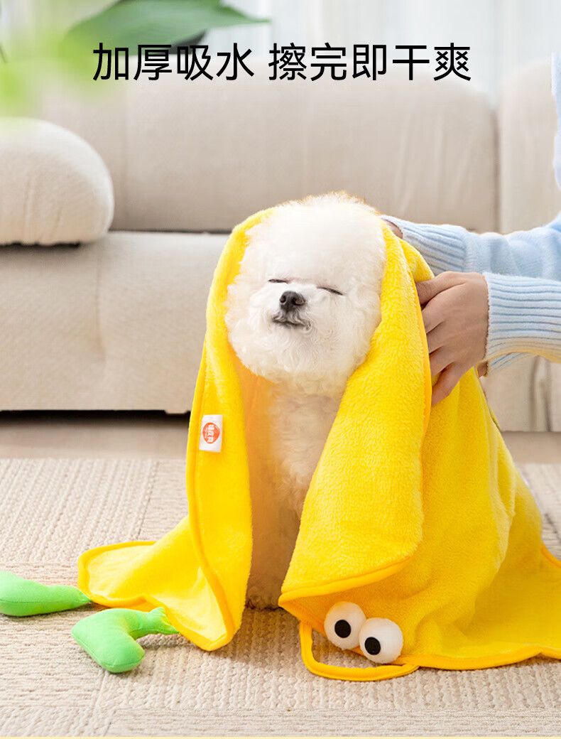 Bichon Frize Special Bath Towel Quick-drying Dog Absorbent Bath Towel Pet Bath Towel Dog Bathing Supplies Locke Yellow M 80*50cm