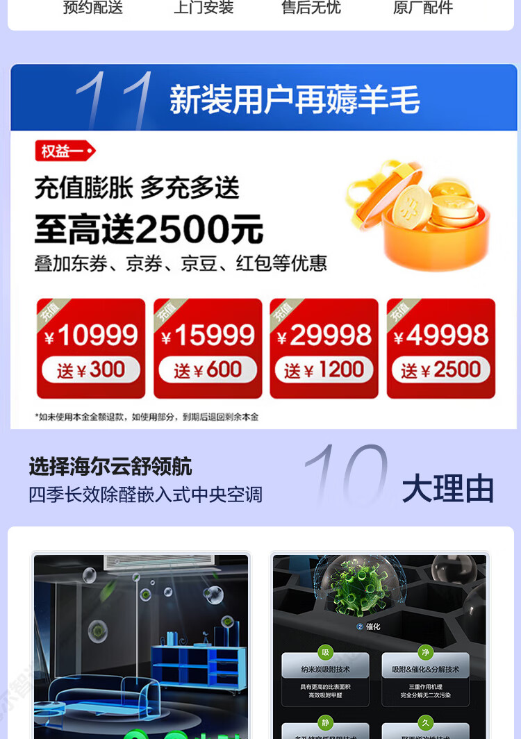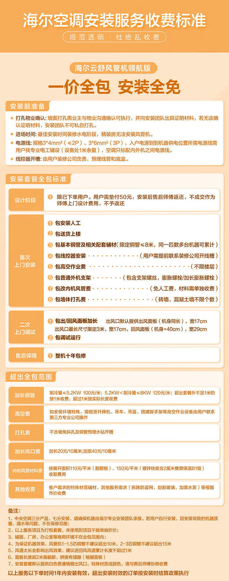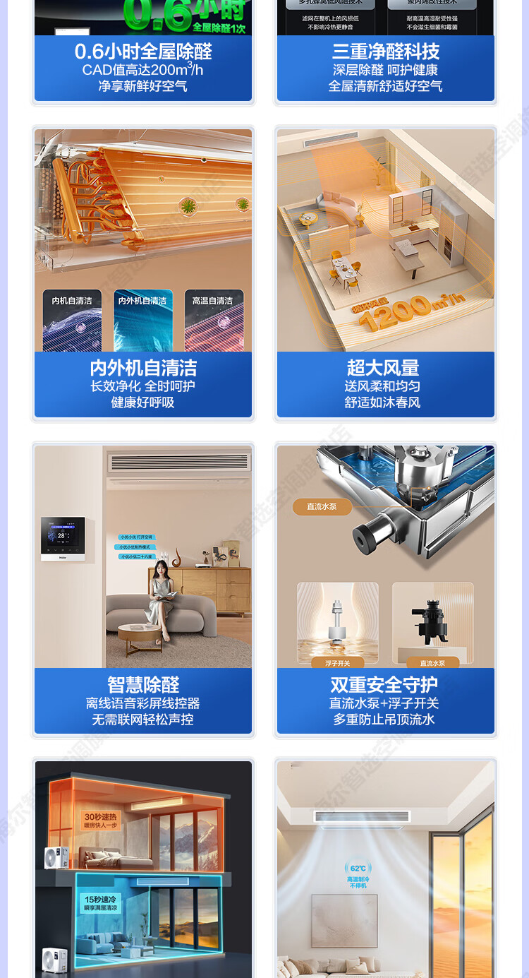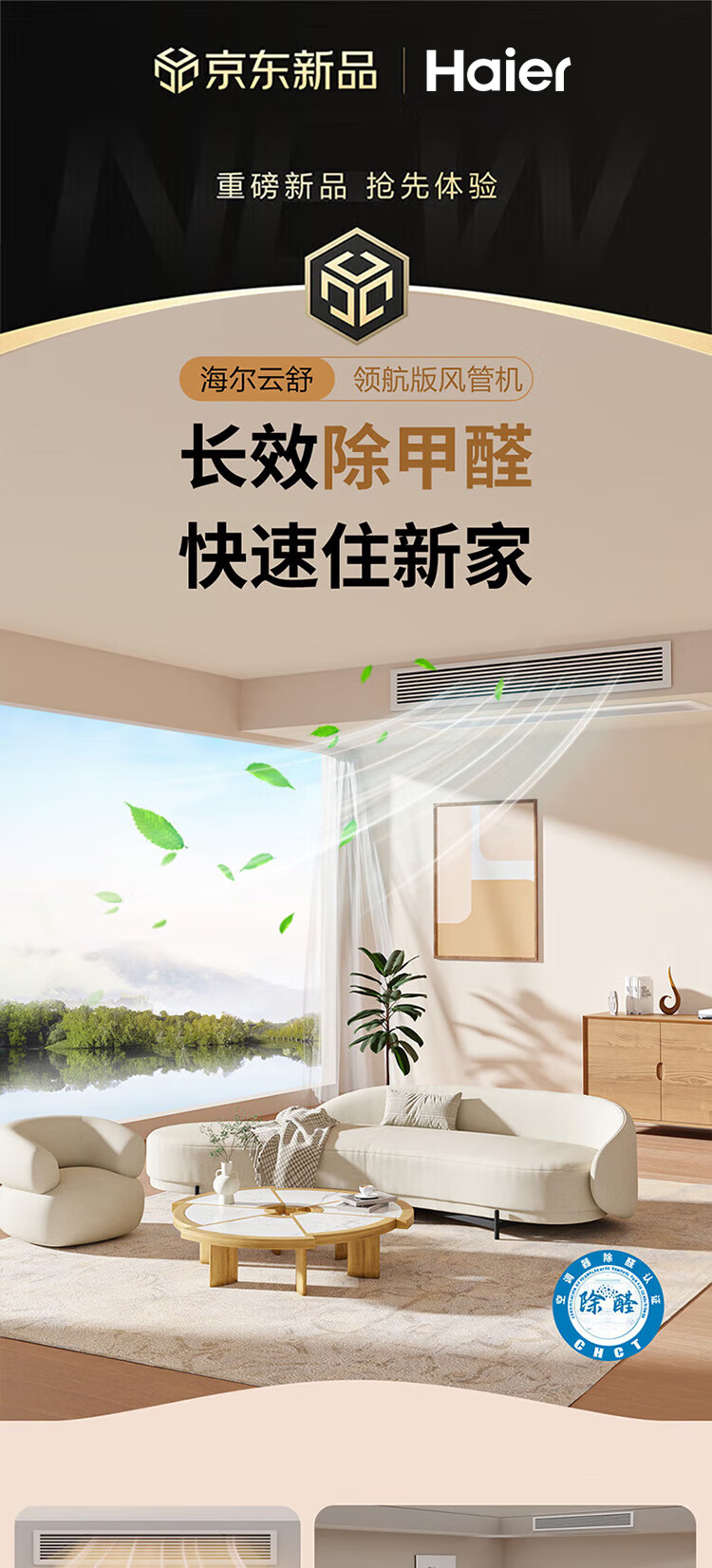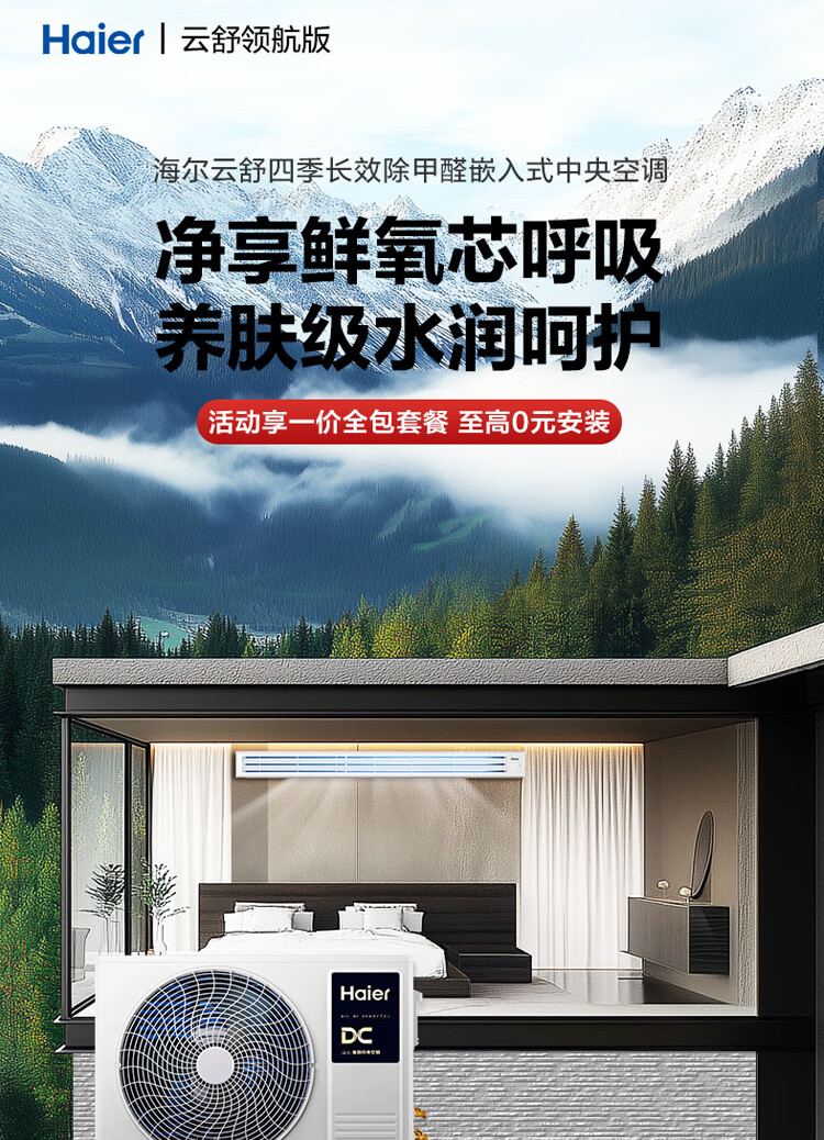 Haier central air conditioning formaldehyde removal duct machine with 3 hp exceeds the national standard, new first-level energy efficiency, living room home embedded Yunshu Pilot, whole house intelligent full DC frequency conversion sterilization, large 3 hp, first-class energy efficiency Yunshu Pilot + DC water pump + long-term formaldehyde removal