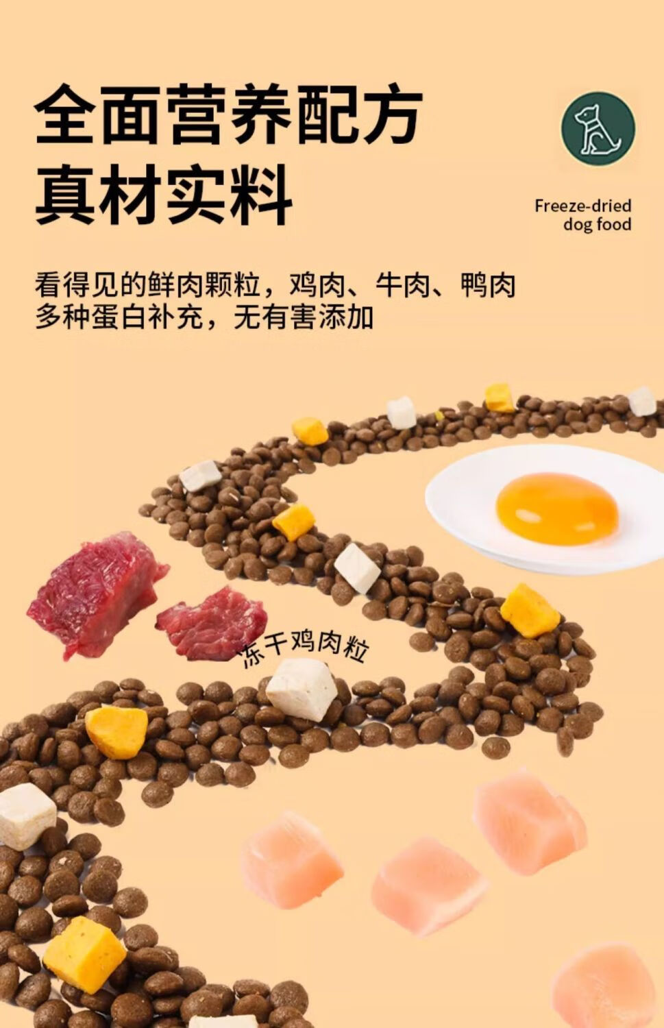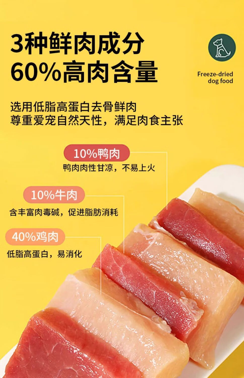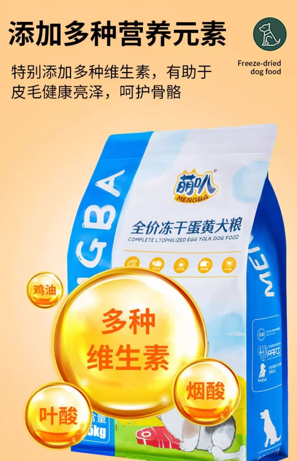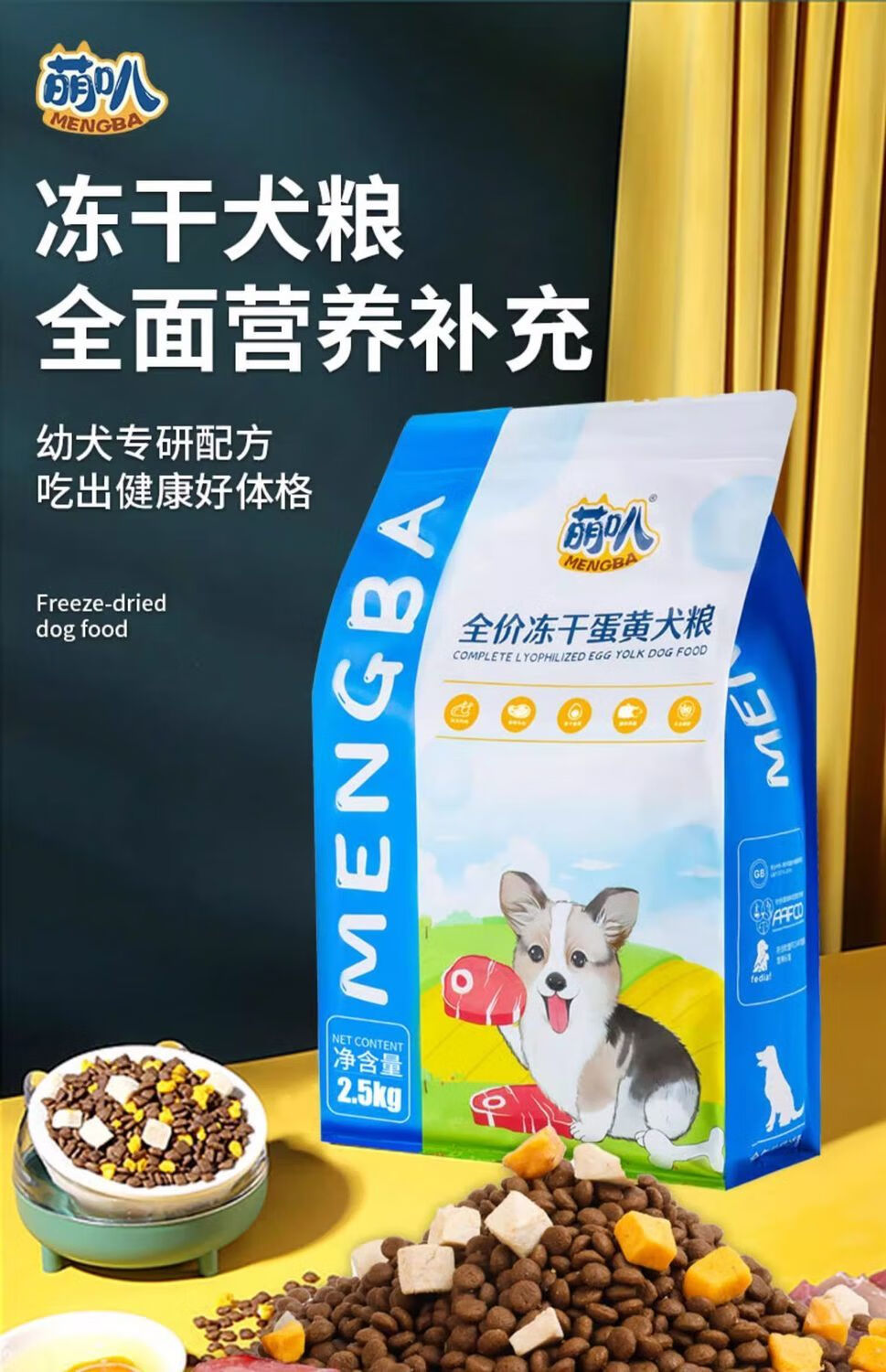 Mengba dog food freeze-dried three-part egg yolk fresh meat grain-free Teddy Corgi Bichon small dog adult and puppy freeze-dried dog food Mengba three-part freeze-dried dog food 5 Jin Jin equal to 0.5 kg, with sample