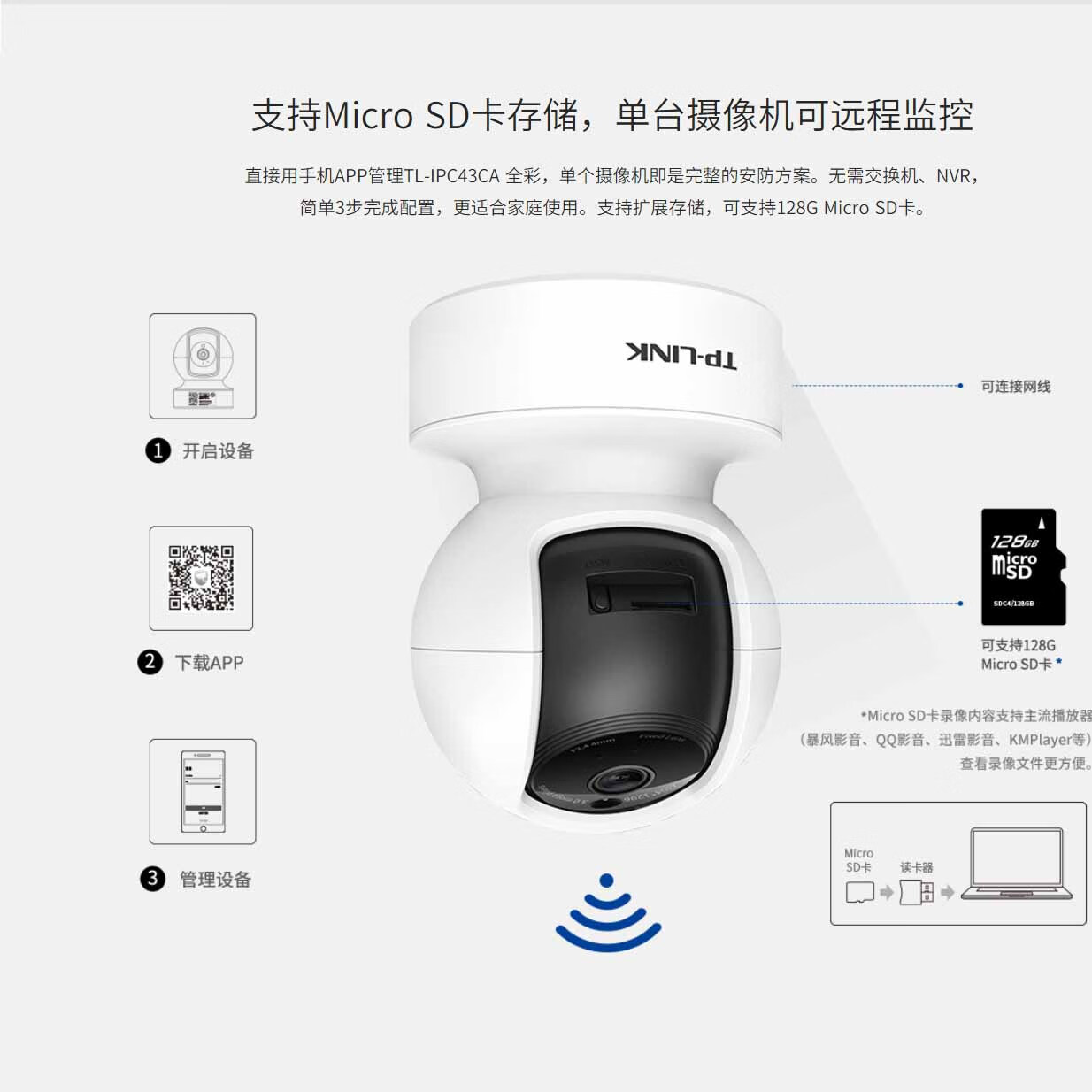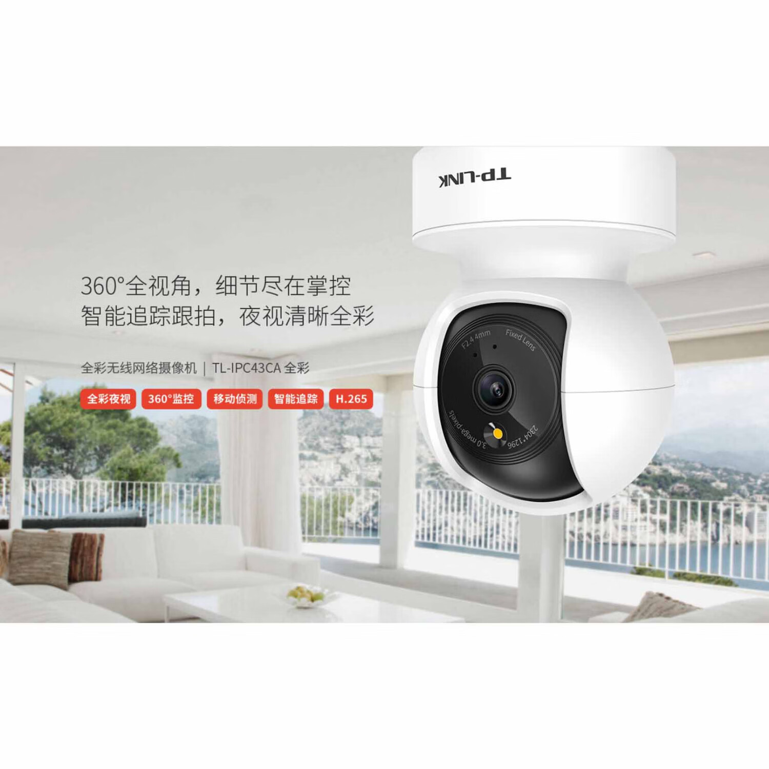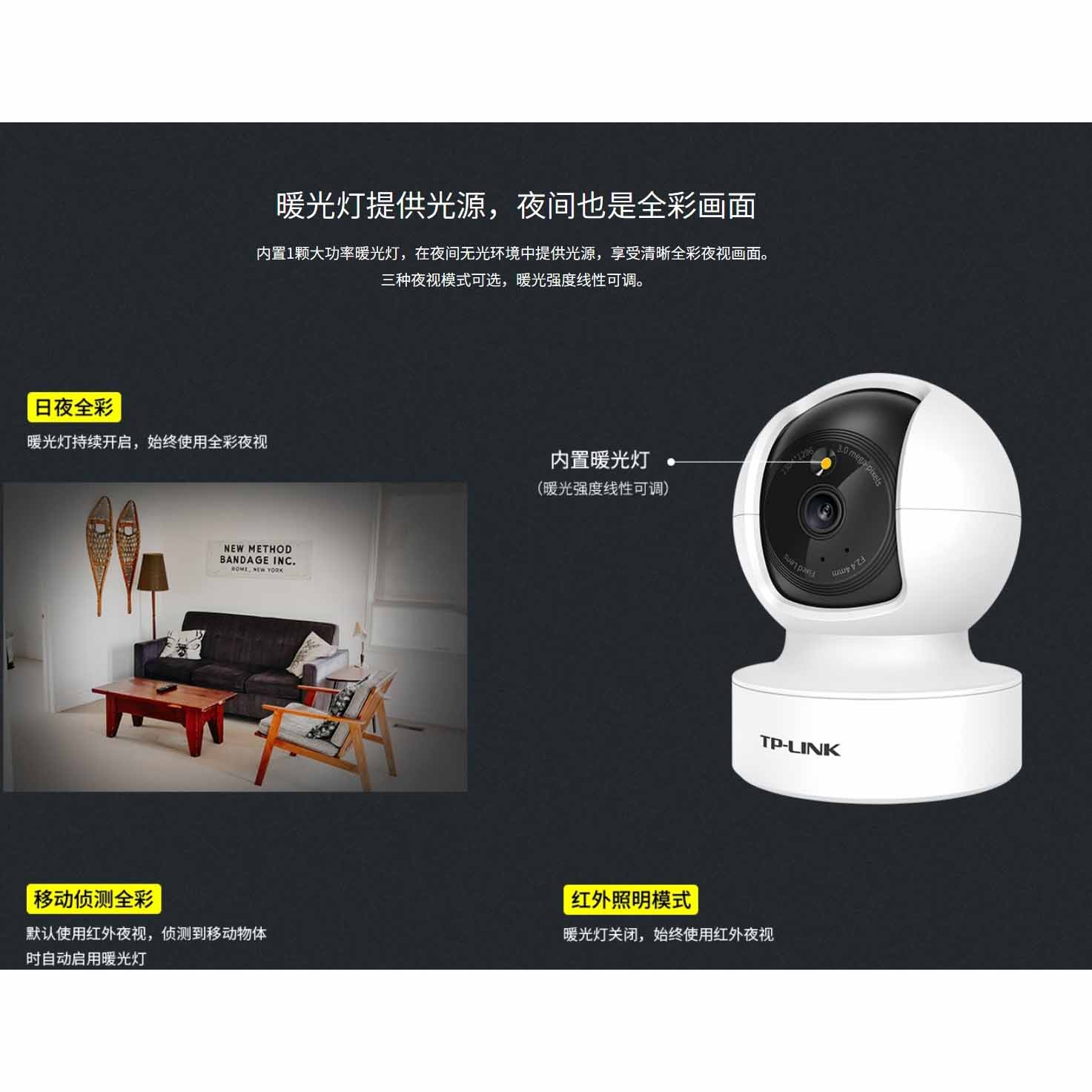 Pulian full-color high-definition wireless network monitor home camera 360 remote baby monitor without blind spots TL-IPC44CL full-color 4 million pixels + network port 64G memory card (about 7 days)