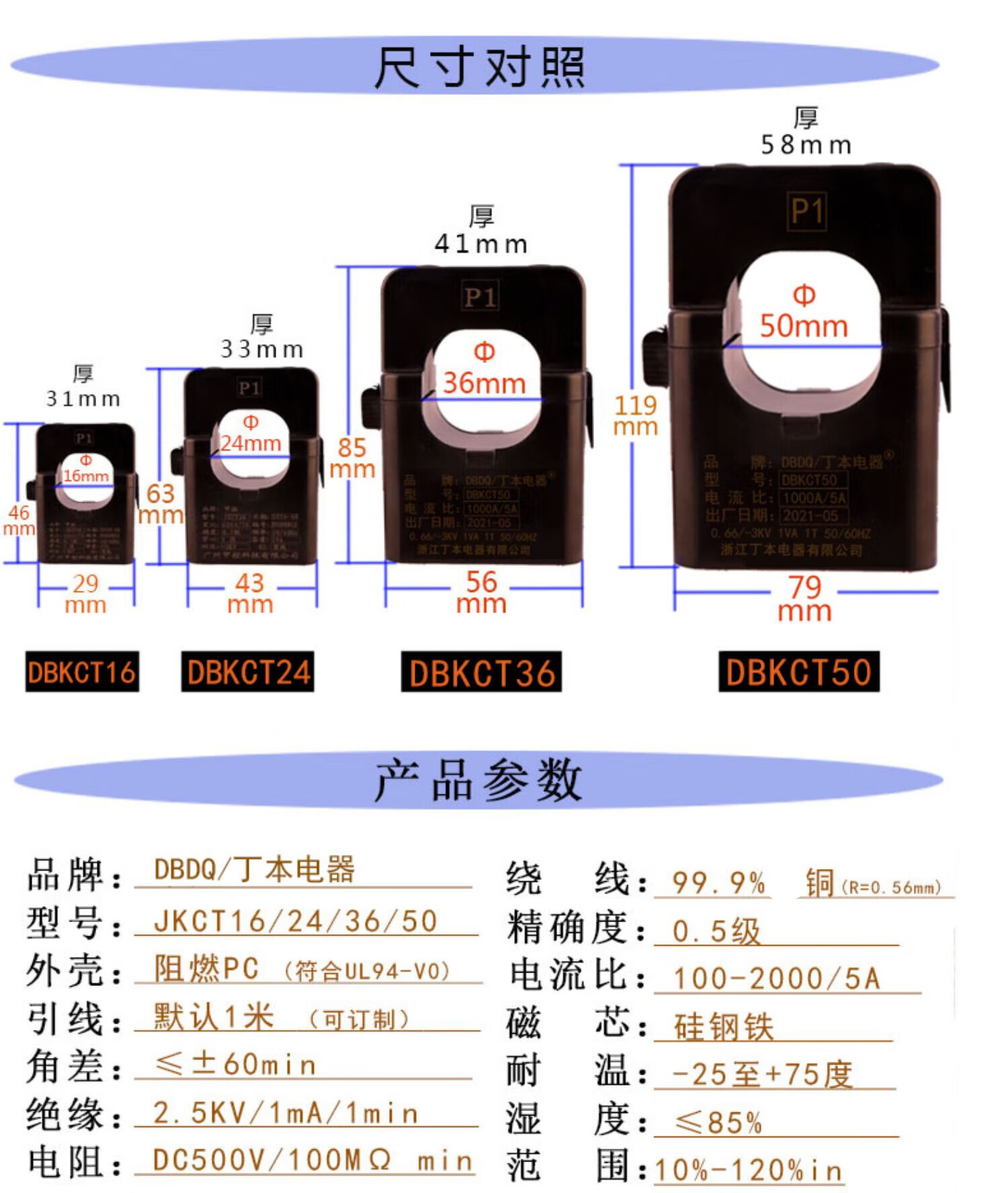 Open current transformer open and close type three-phase 0.5 level measurement KCT0.6616/24/36 aperture 16mm-100/5