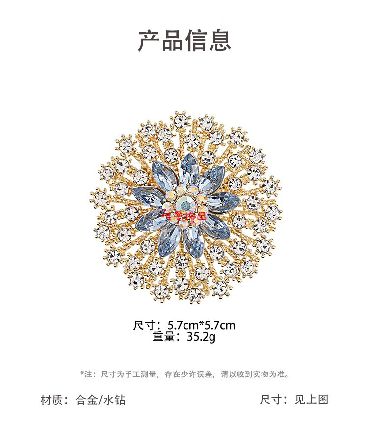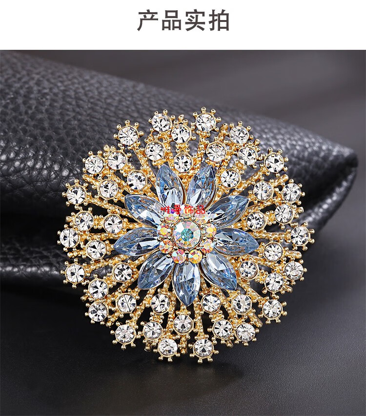 WOUG elegant lady snowflake brooch alloy inlaid glass rhinestone pin clothing fixed acrylic snowflake