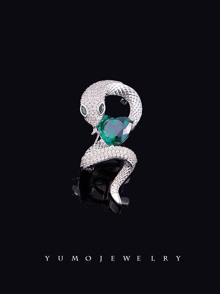 WOUG emerald snake-shaped zodiac brooch design niche 2025 new animal year coat gold