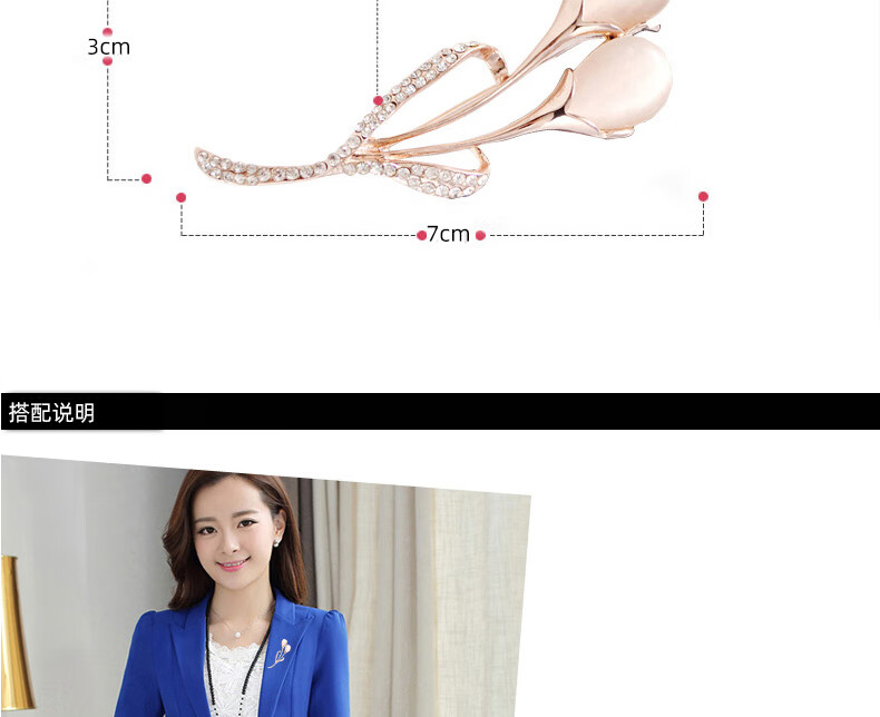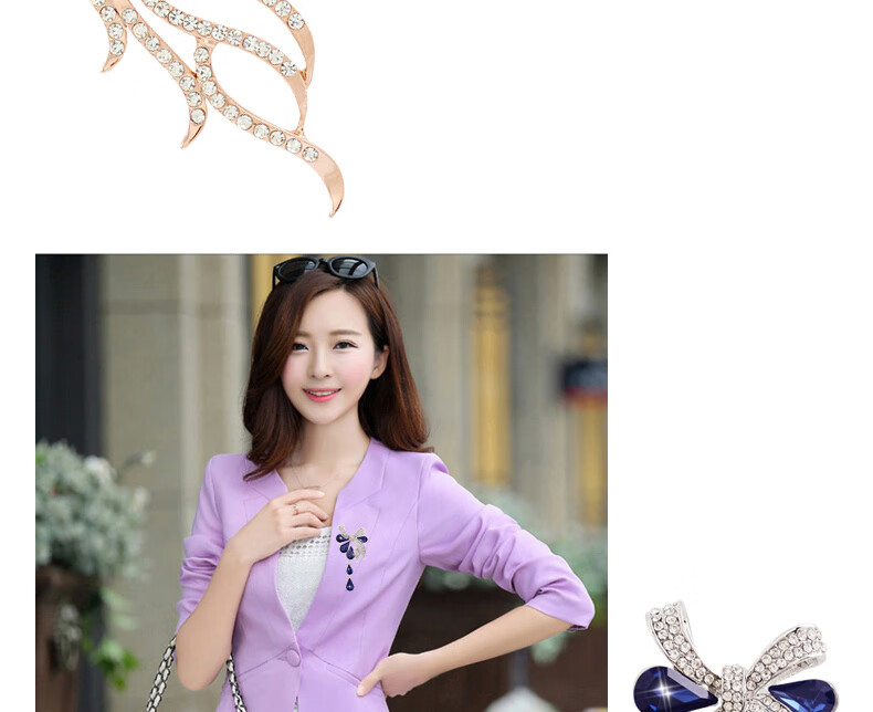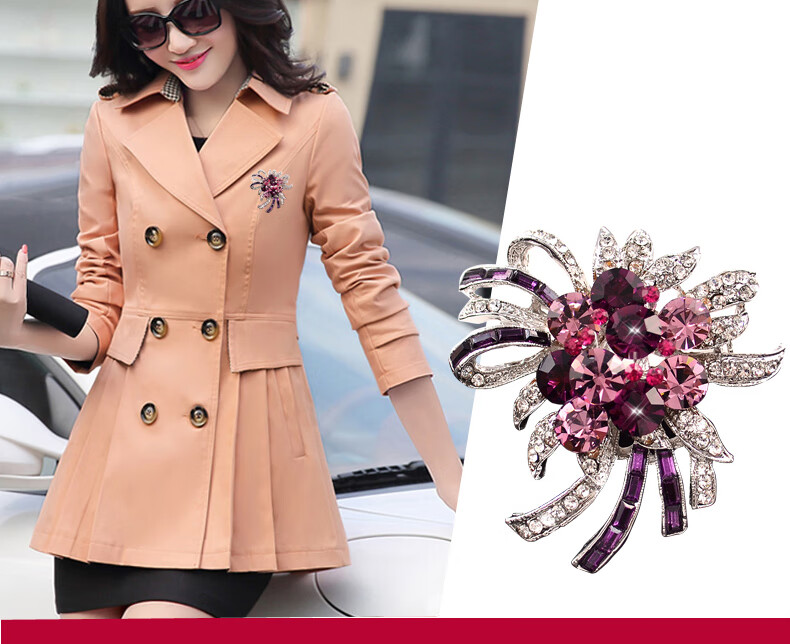 WOUG fashion brooch for women's cardigan coat corsage shawl pin buckle atmospheric crystal Korean style impatiens flower brooch silver
