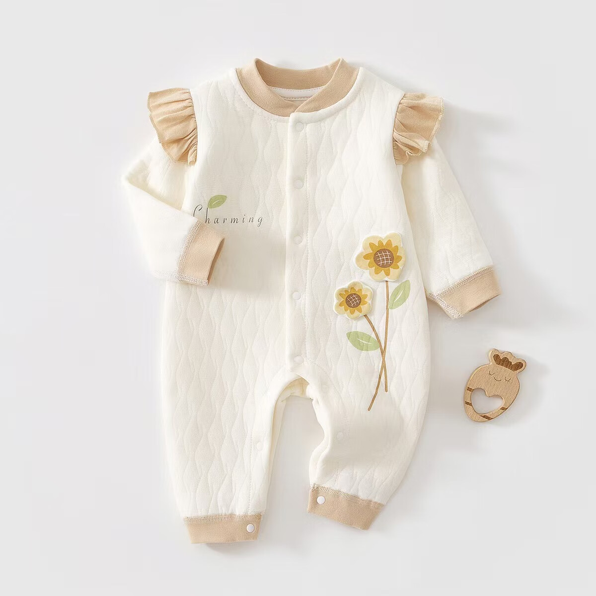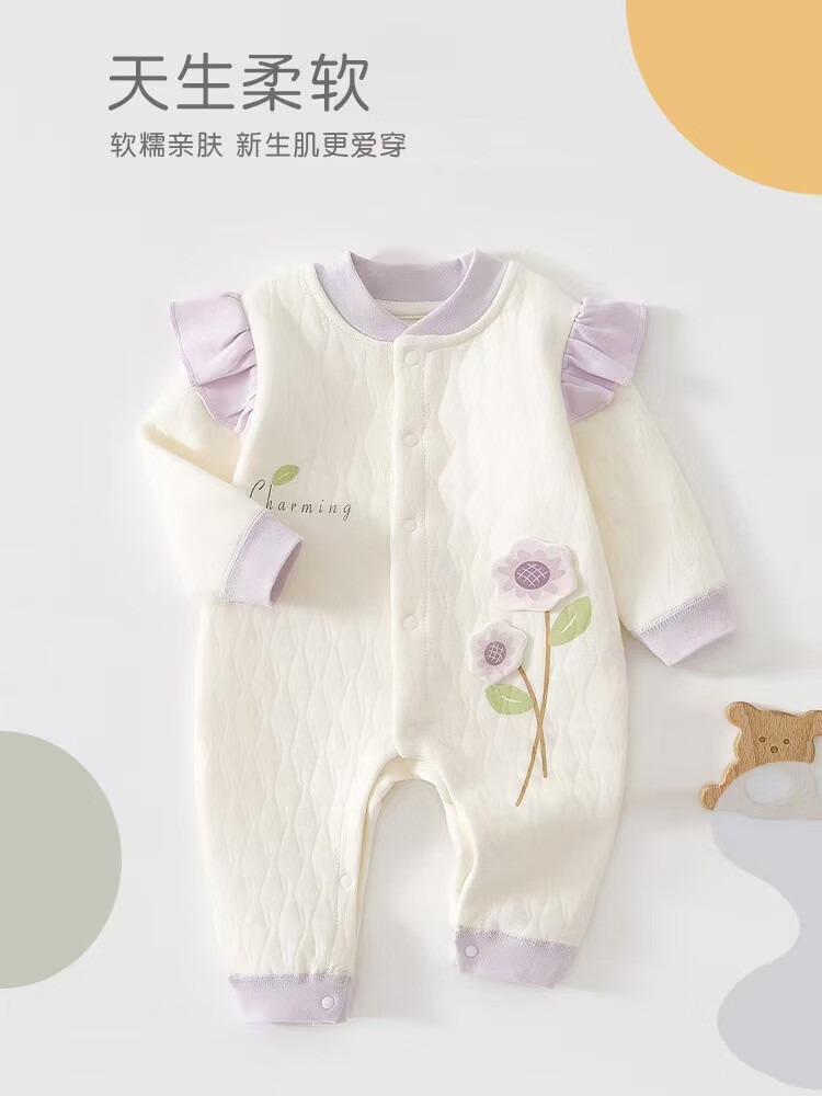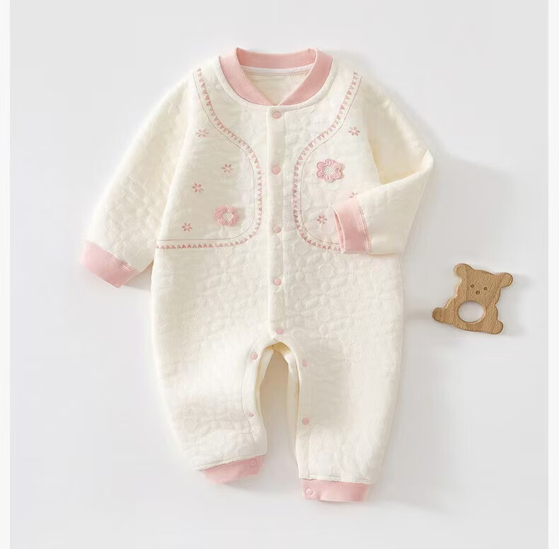 Disney baby clothes spring, autumn and winter new one-piece cotton warm six-month-old baby autumn clothing female baby quilted pajamas autumn pure pink lemon bear head + pink flower rabbit 90cm
