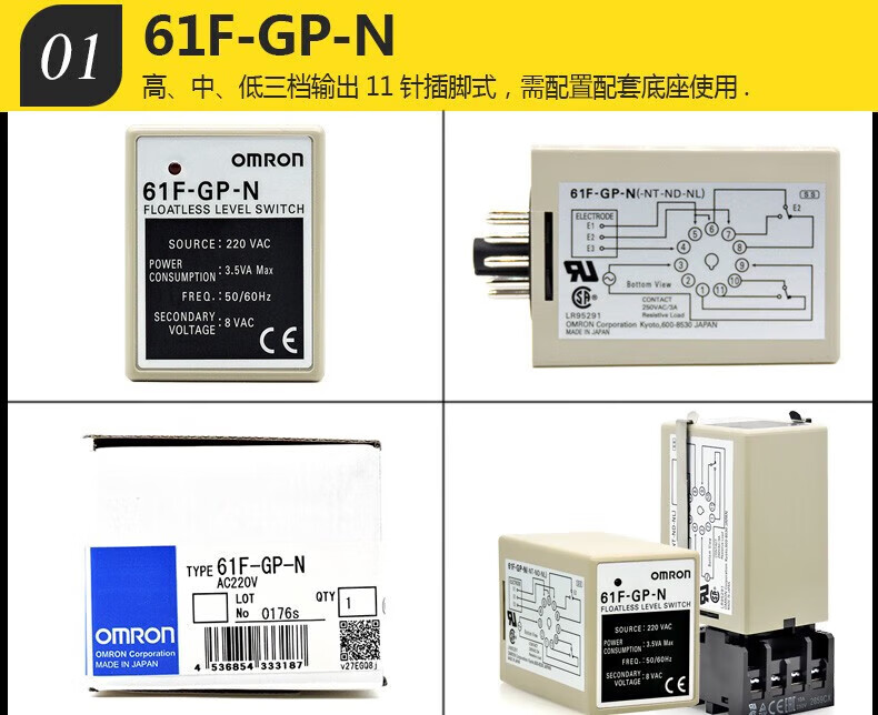 Japanese original 61F liquid level relay, medium, high and low water level controller, automatic water supply device, with three poles 61F-LS-CP11-NRA