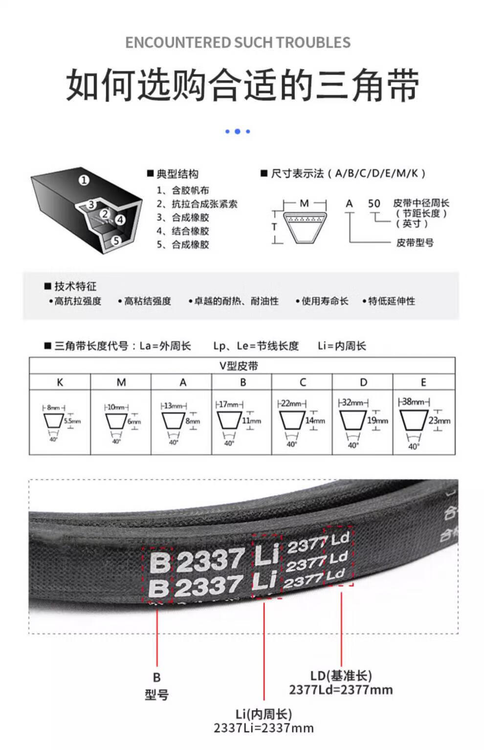 V-belt rubber transmission V-belt industrial belt model A type 380-A1500Li Camel A1499 Li