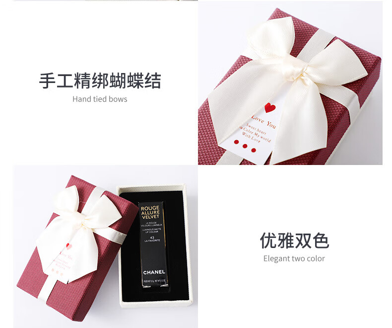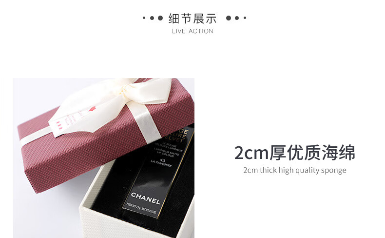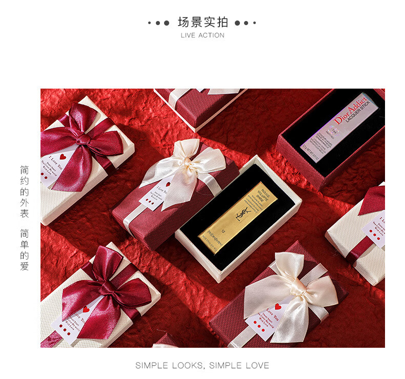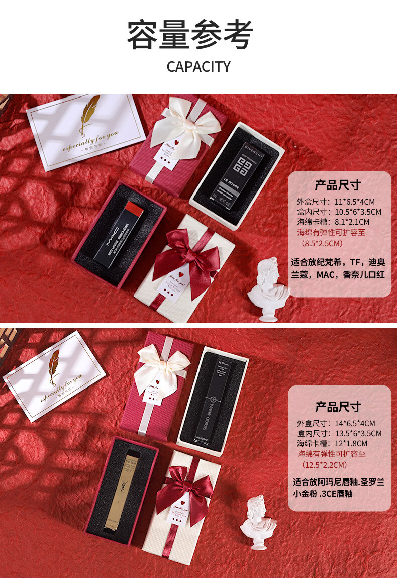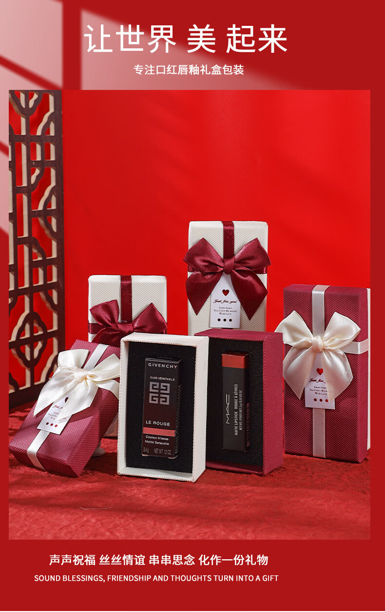 Xinghengdream rectangular gift box with bow lipstick box, holiday gift box, exquisite birthday cosmetics and perfume gift box, wine red, length 11*width 6.5*height 4cm, including sponge