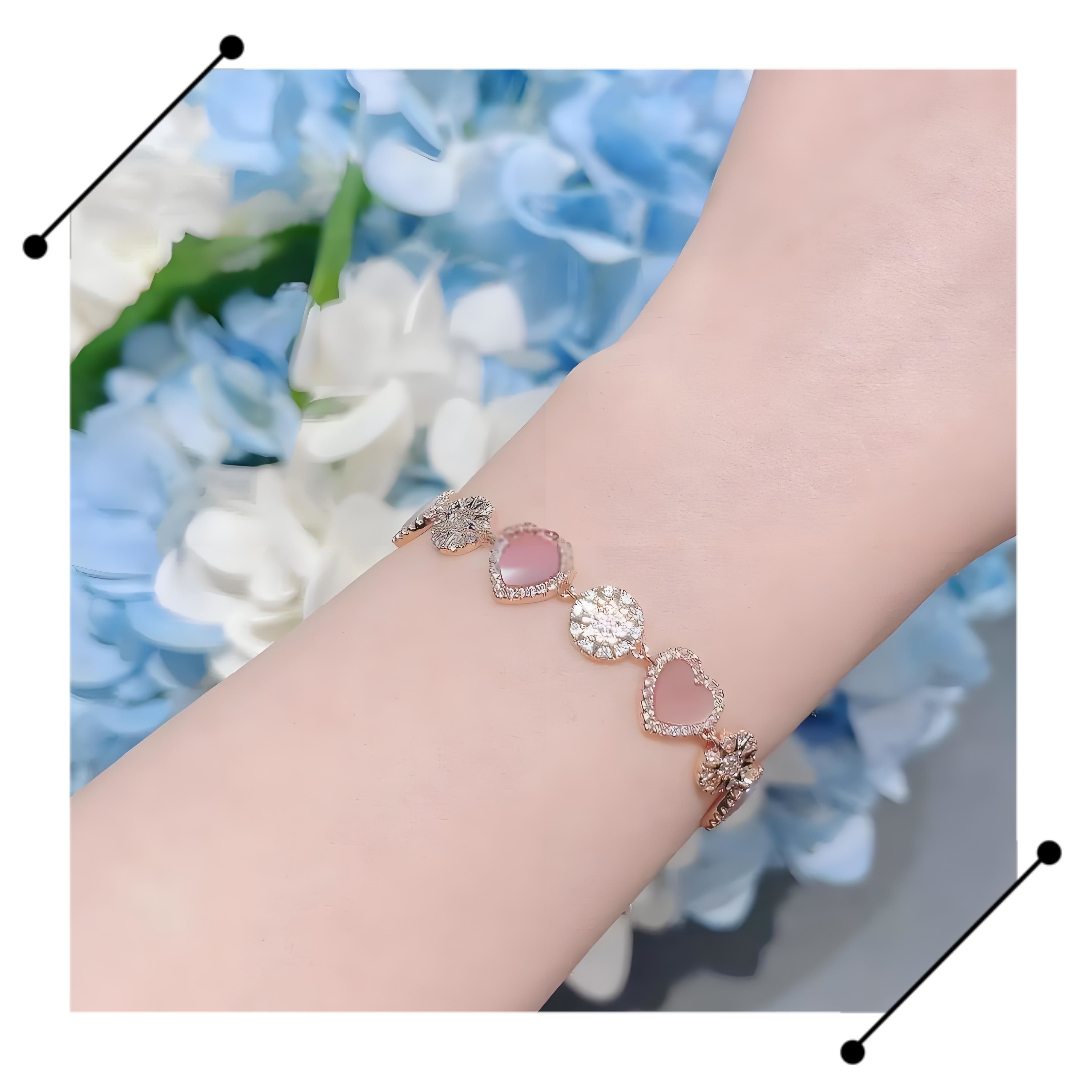 Yangyan Rose Gold Pink Fritillary Multi-Love APM Bracelet Women's Light Luxury Niche Full Diamond Sunflower Heart-Shaped Adjustable Bracelet