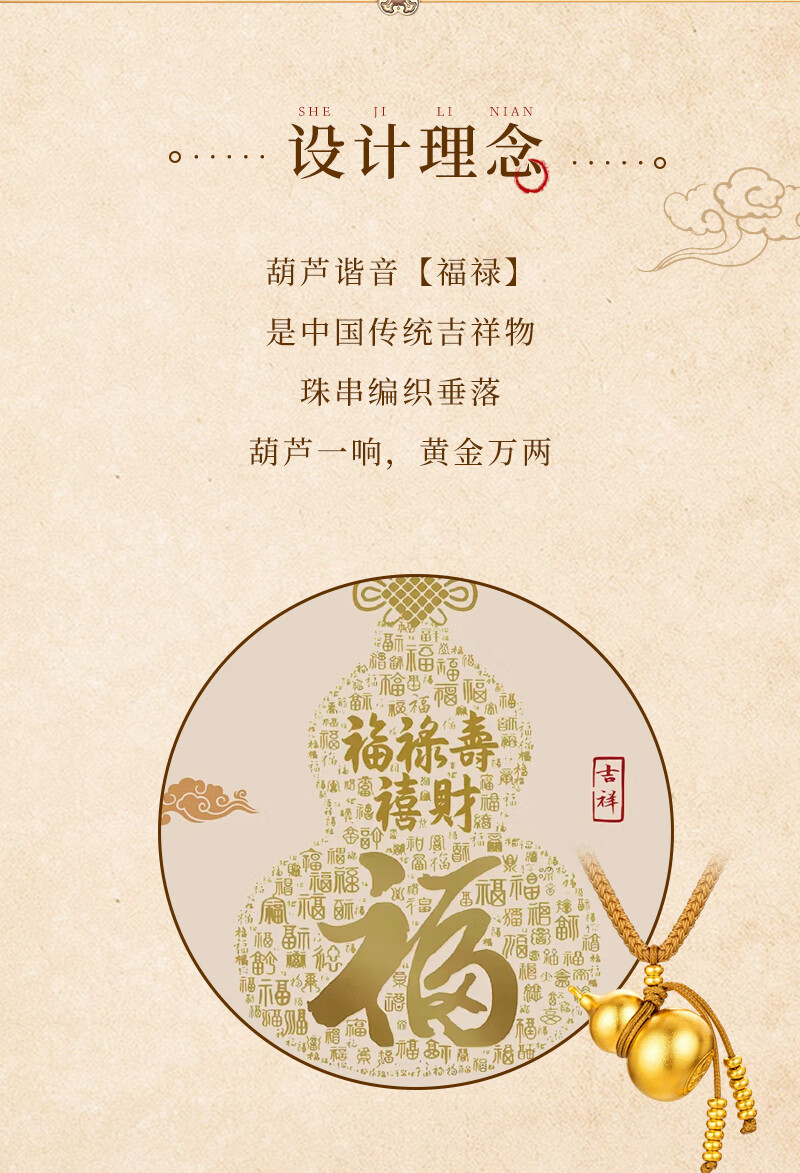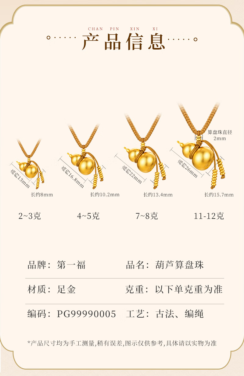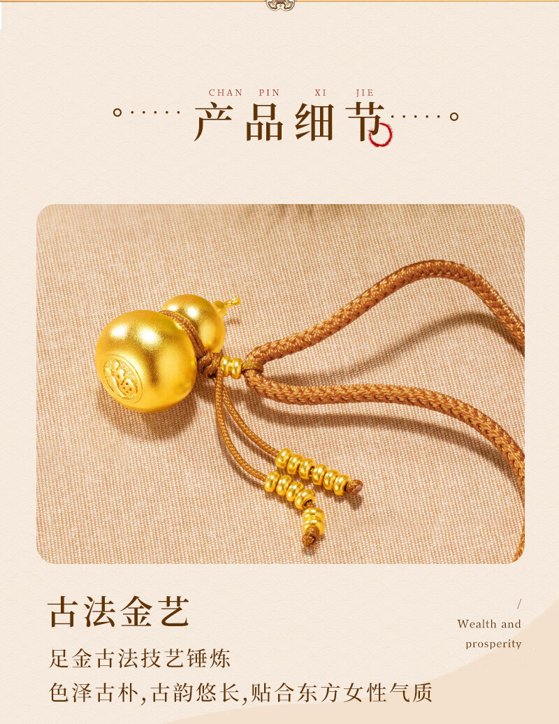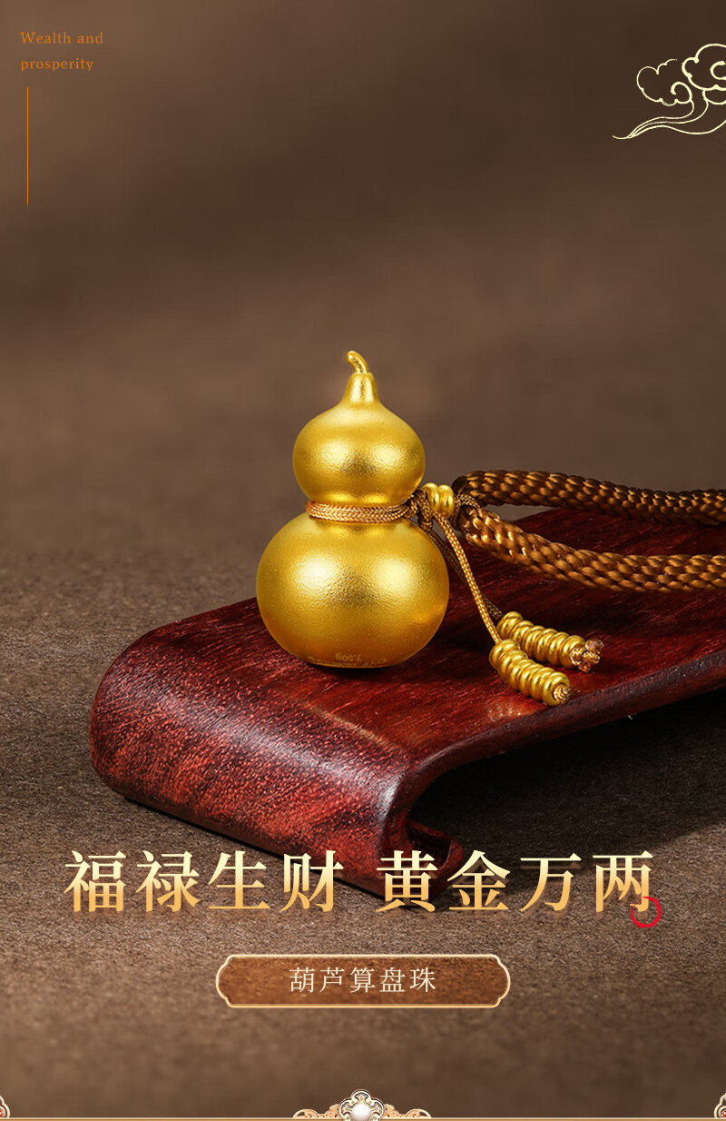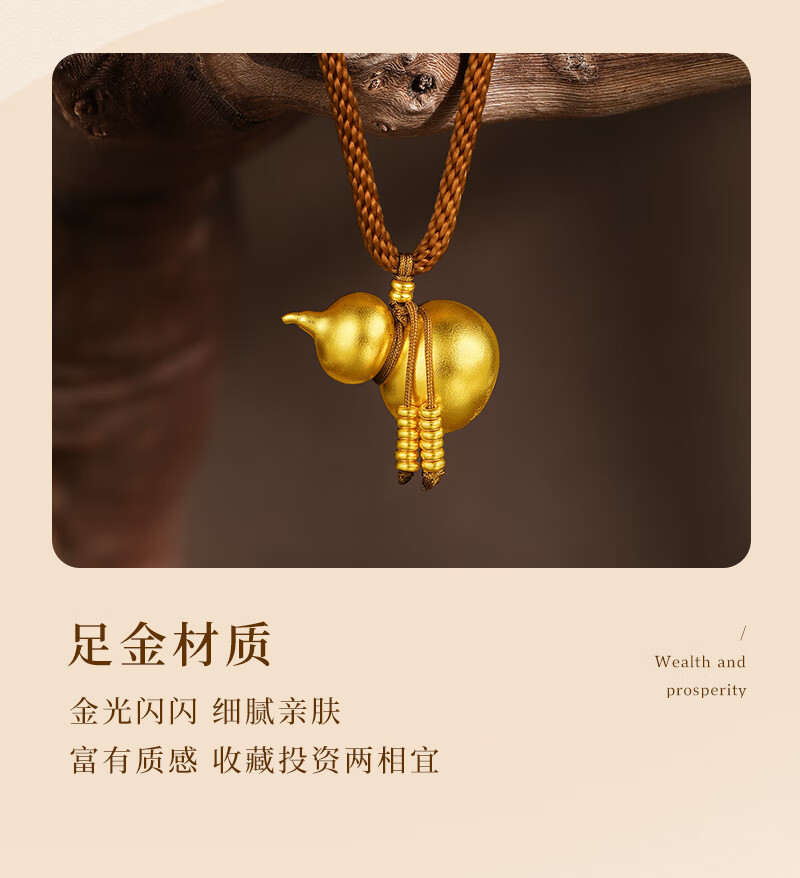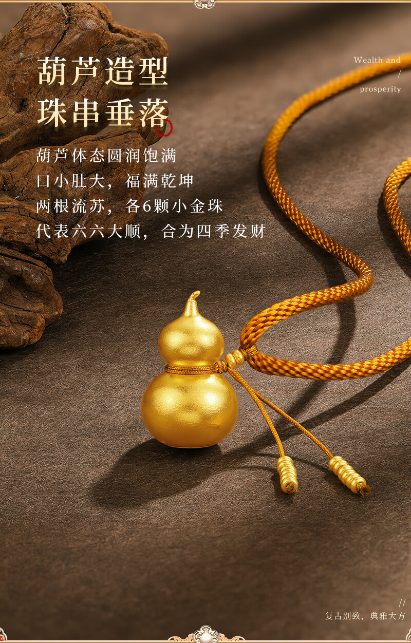 First Blessing Gold Pendant Necklace Gourd Abacus Beads Pure Gold 999 Ancient Heritage Pendant Women's Style as a Birthday Gift for Your Girlfriend Gourd Abacus Beads About 8.0g