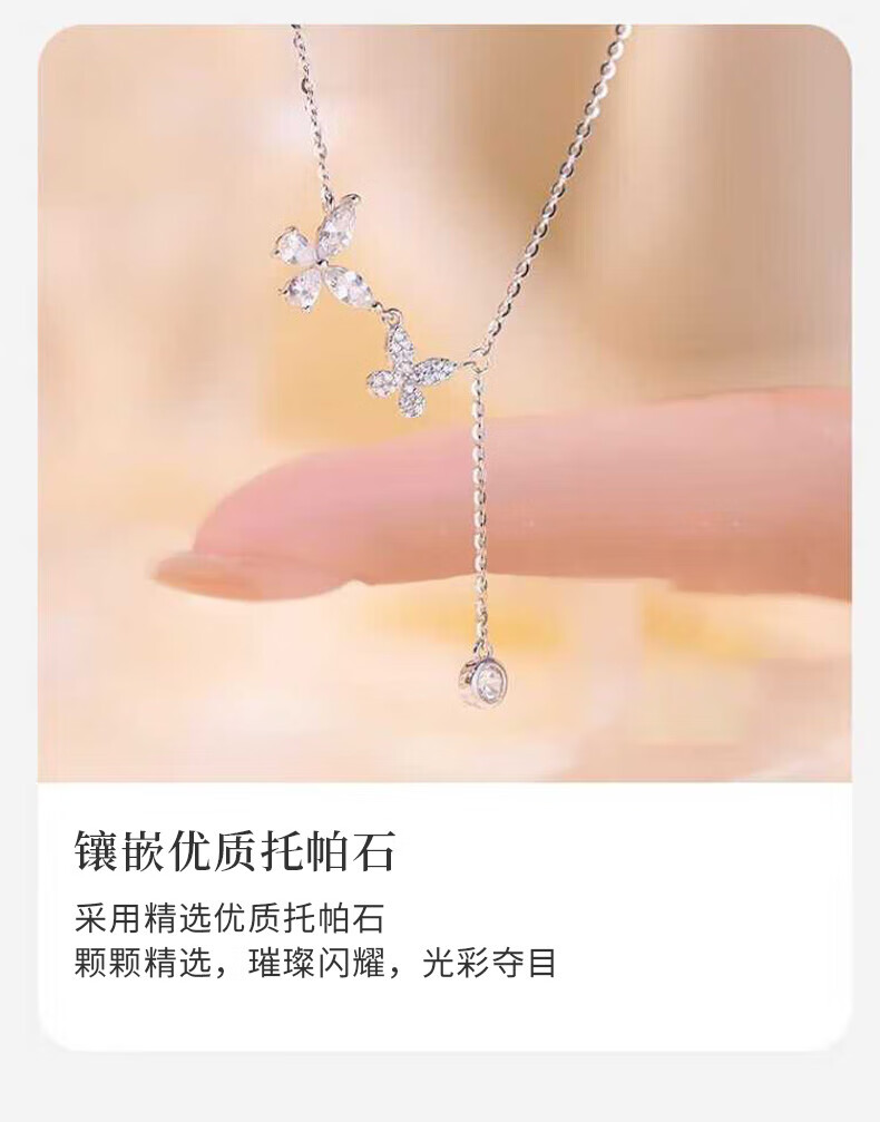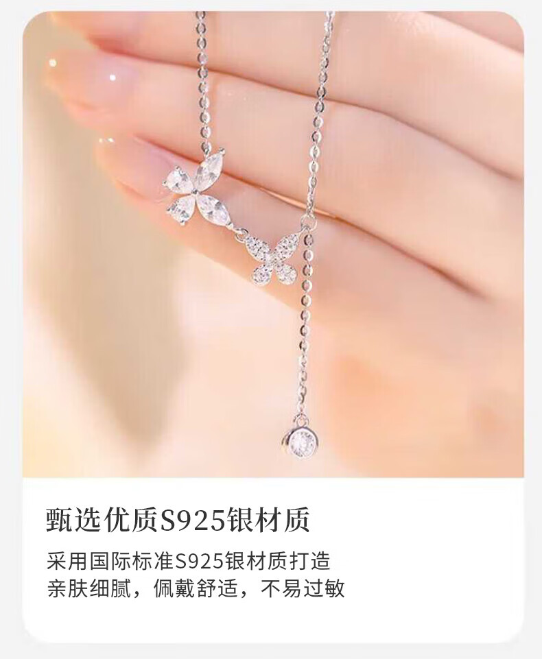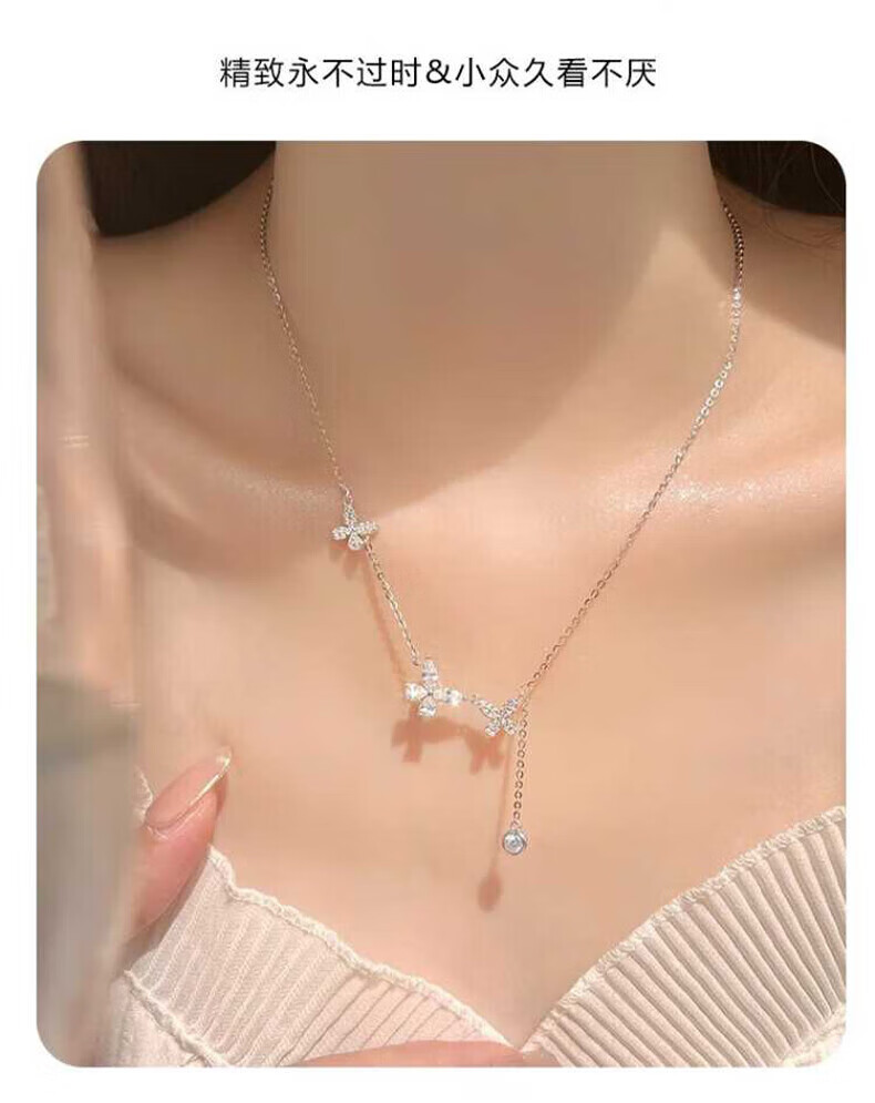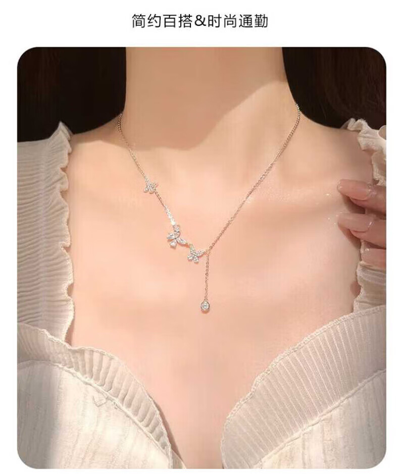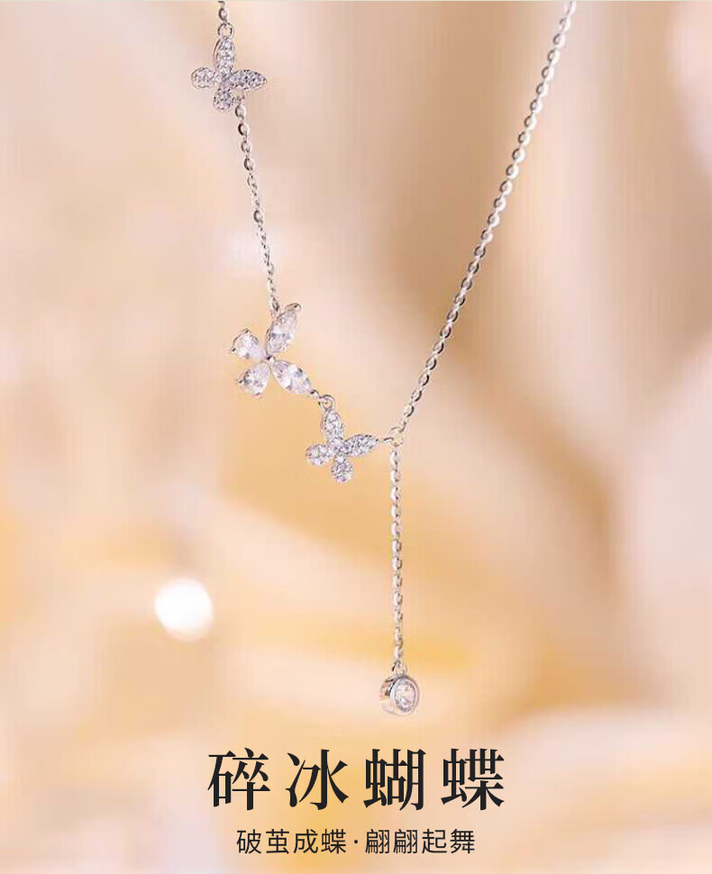 China Gold S925 Silver Crushed Ice Butterfly Necklace for Women 2025 New Clavicle Chain Pendant Practical Birthday Gift for Girlfriend Romantic Rose Gift Box *Shipping from Hachikura/Fast Delivery