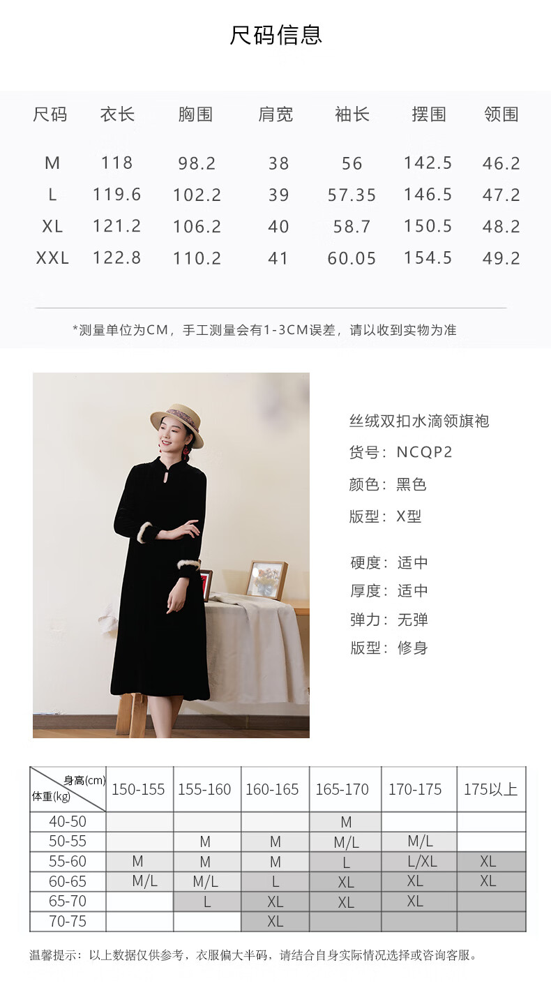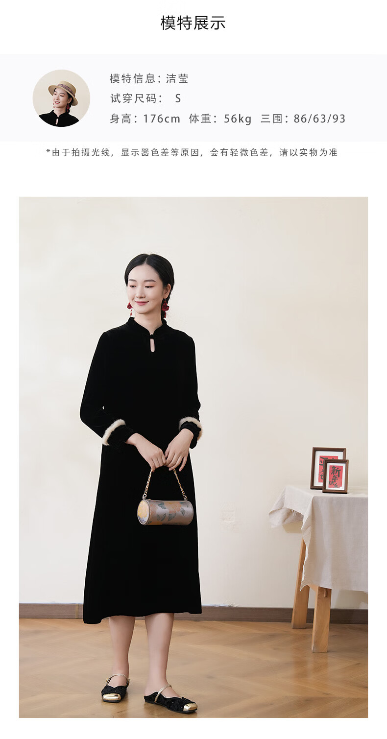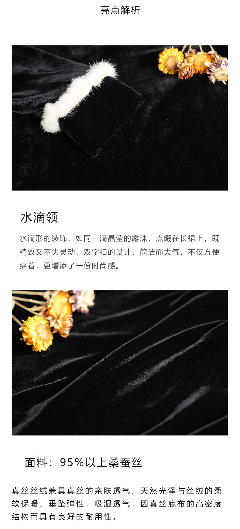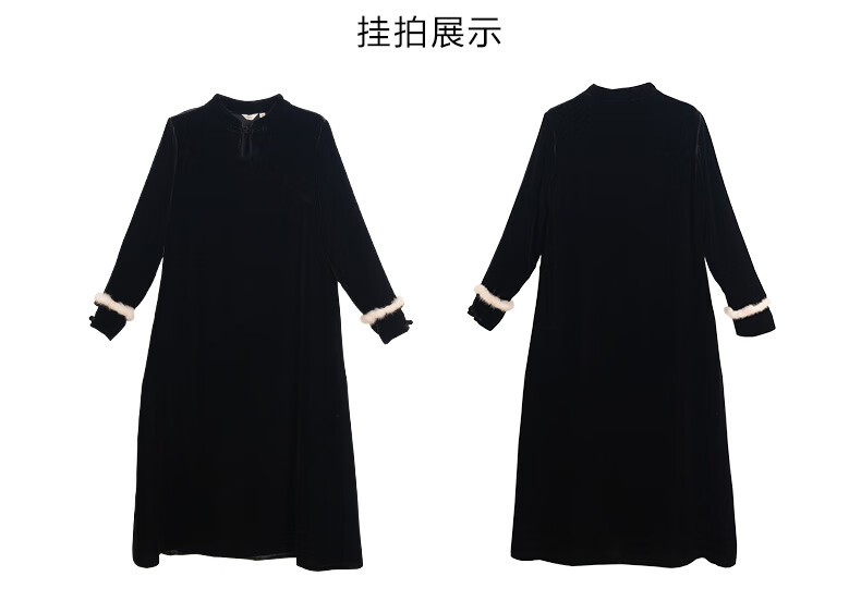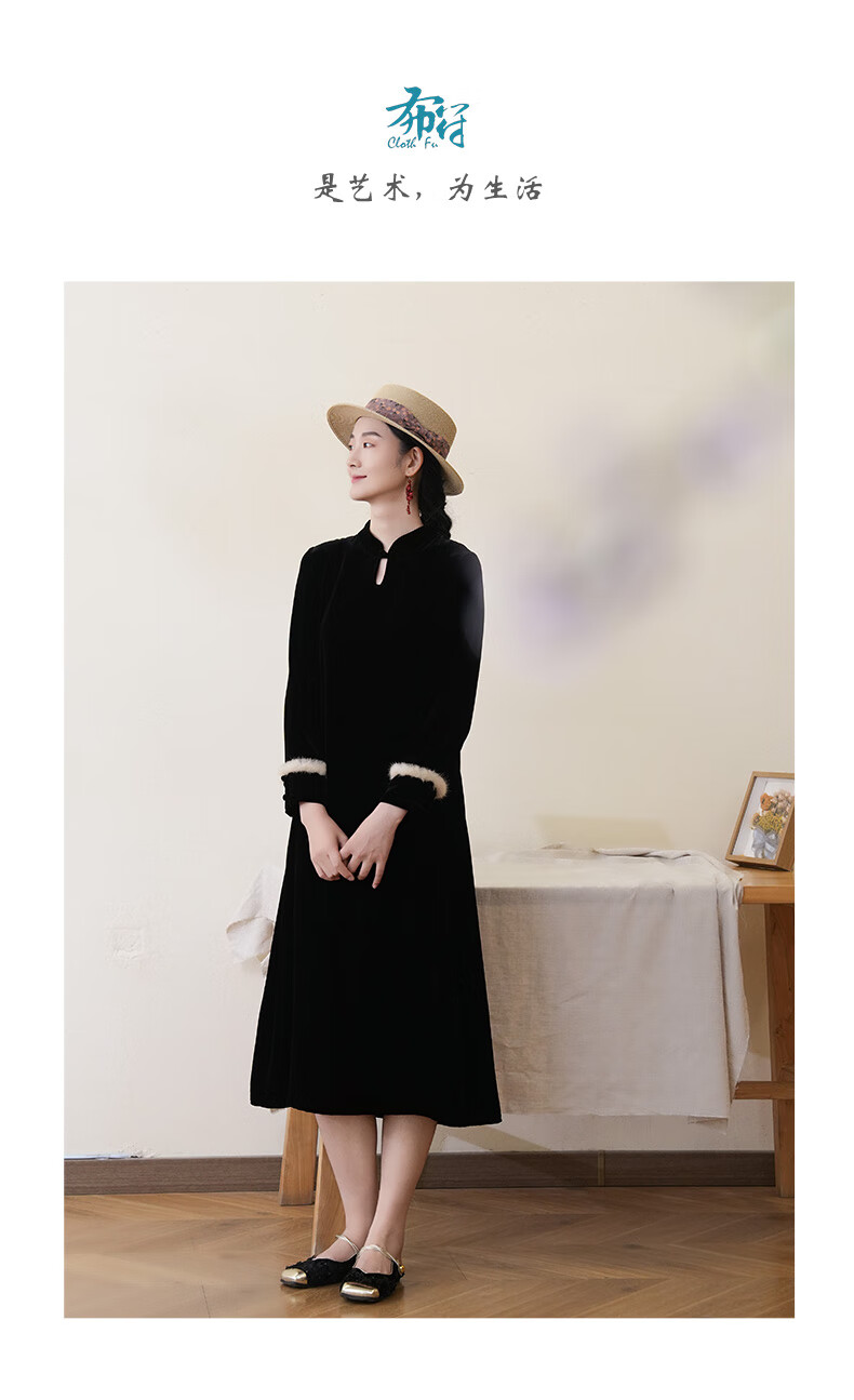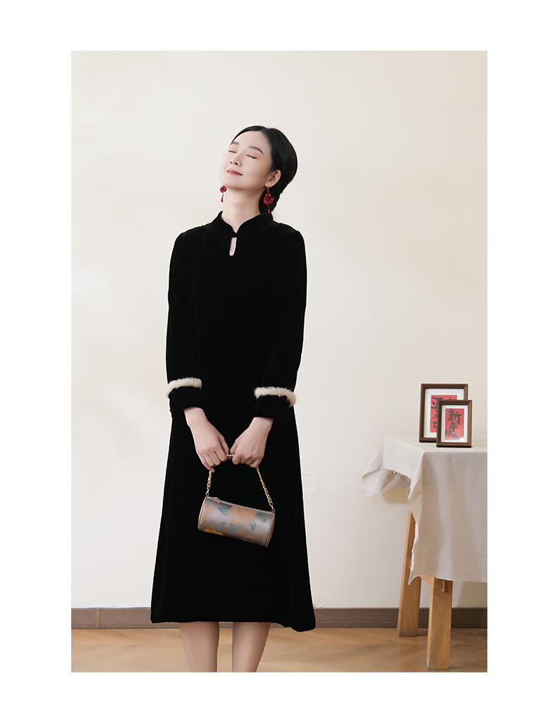 Bu Fu New Chinese Style Black Velvet Double Button Drop Collar Cheongsam 2026 New Spring Slim Long Sleeve Women's Clothing Black Velvet M