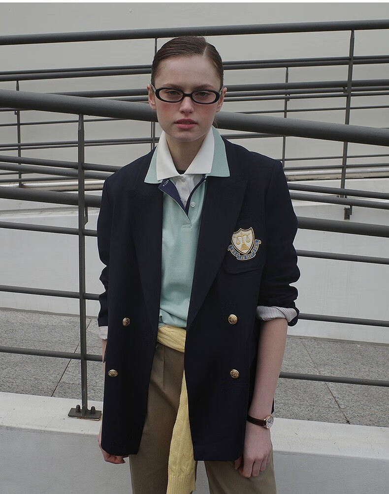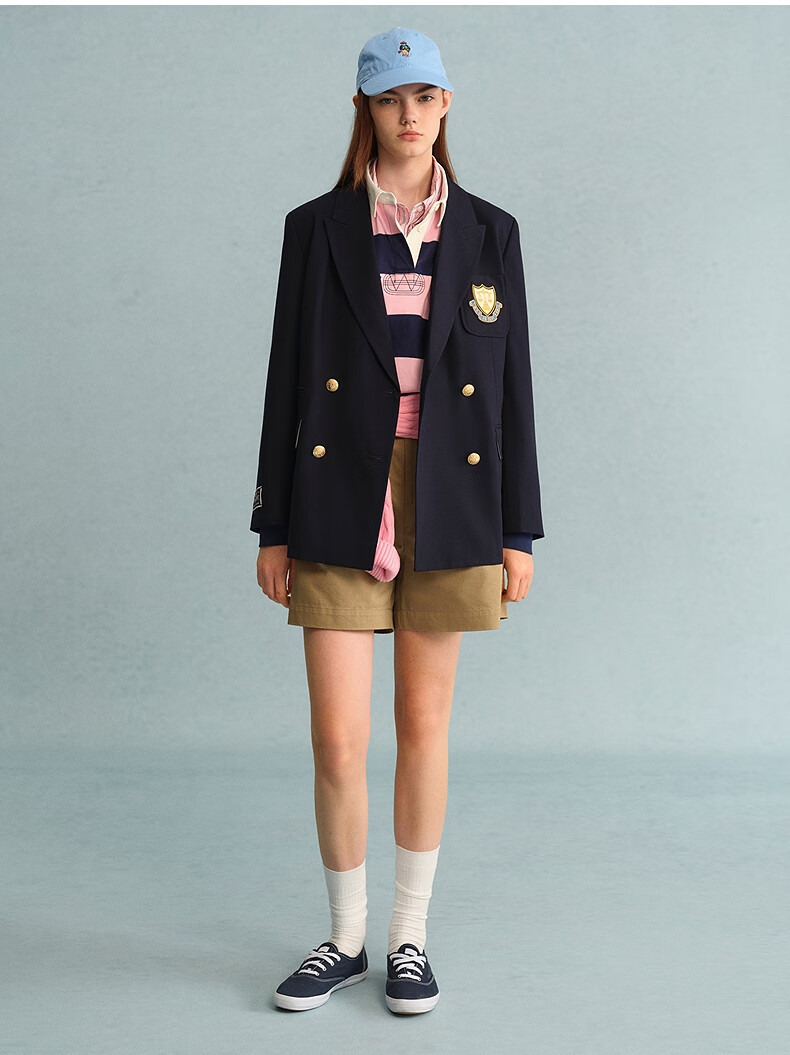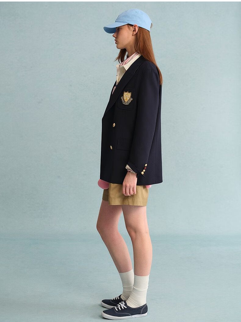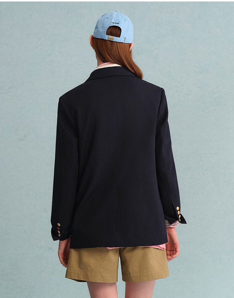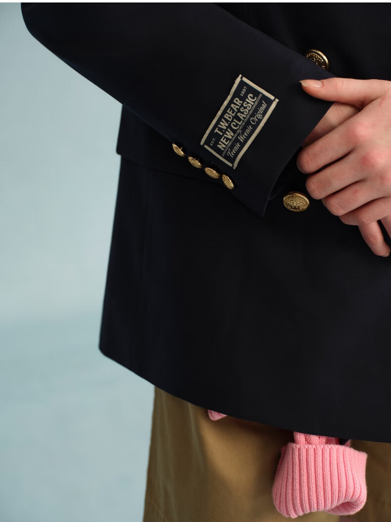 Teenie Weenie Bear Women's Blazer Autumn Retro College Temperament Double-breasted Suit Navy XS