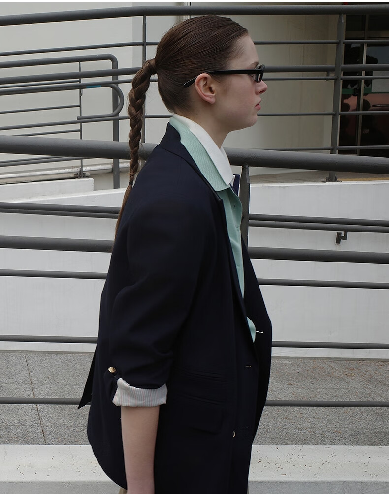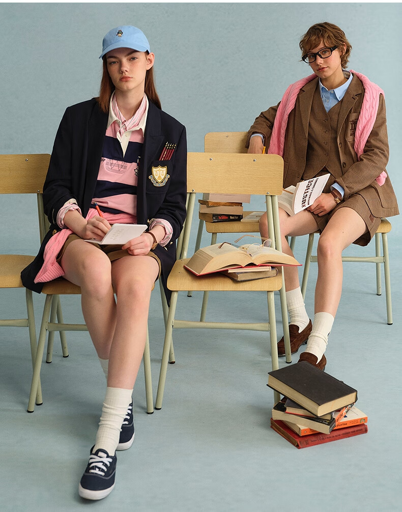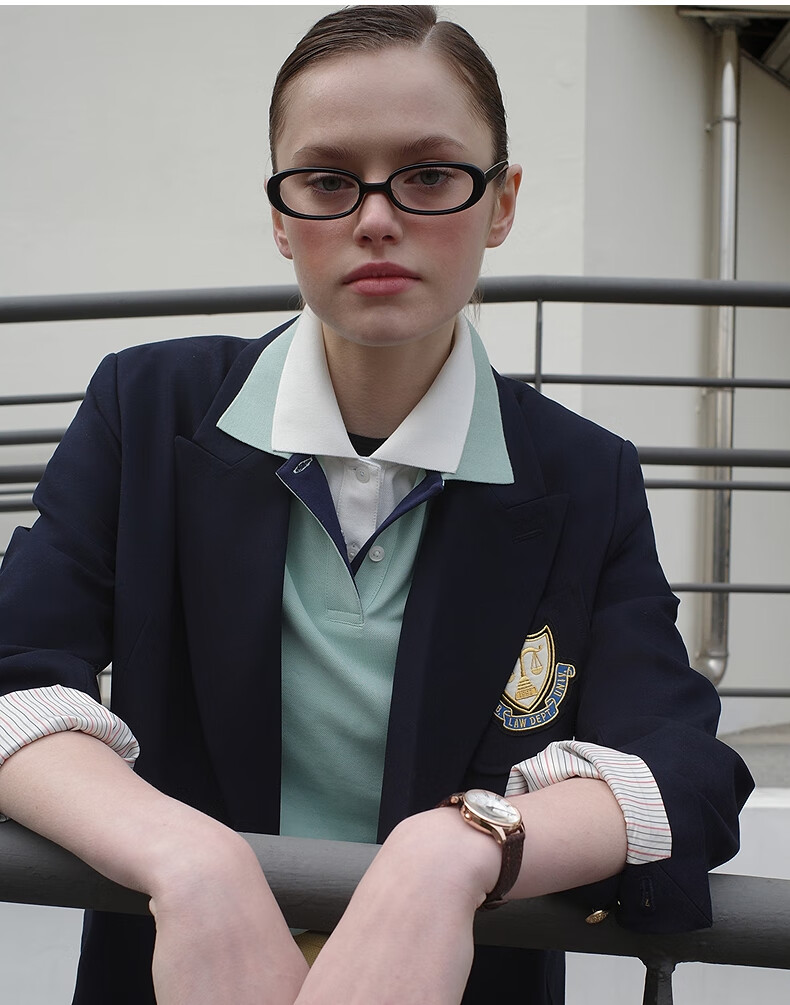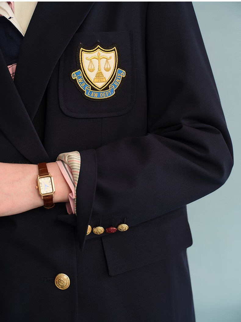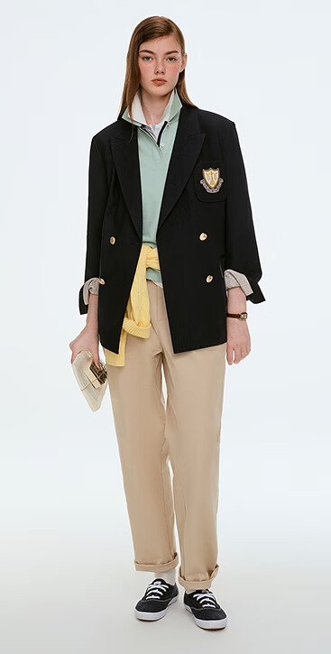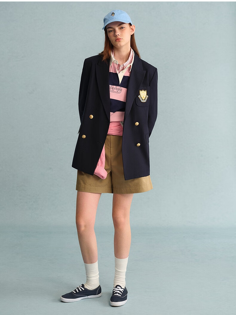 Teenie Weenie Bear Women's Blazer Autumn Retro College Temperament Double-breasted Suit Navy XS