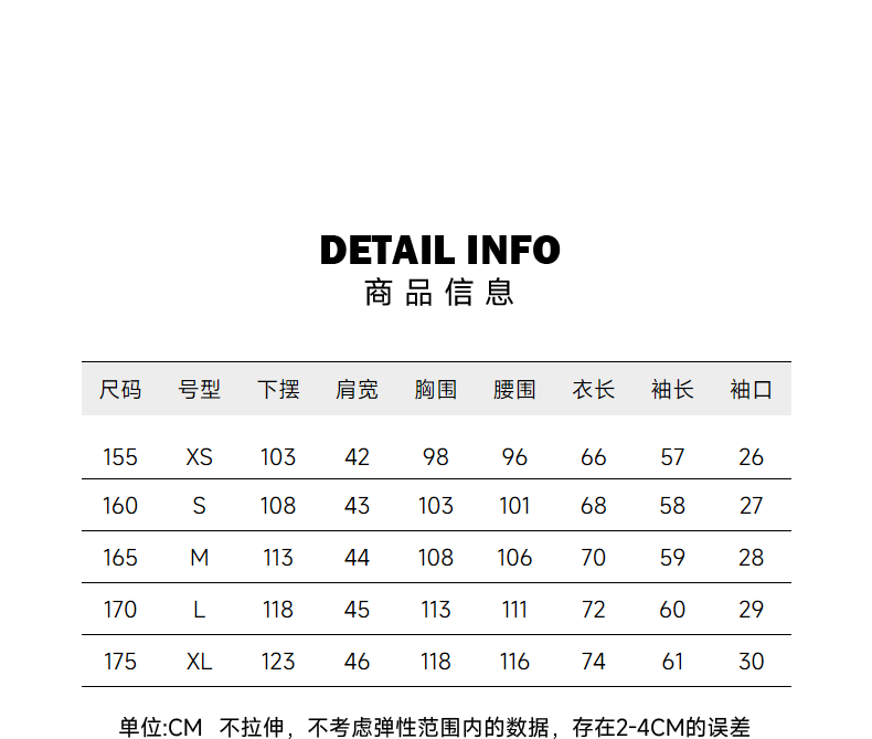 China (cm) 160-165/84-86 165-170 / 88-90 167-172 / 92-96 168-173 / 98-102 170-176 / 106-110