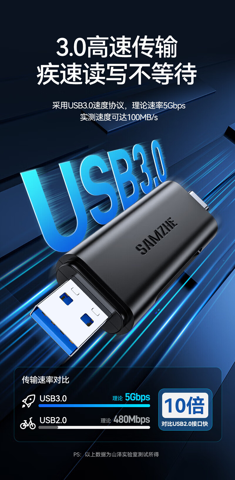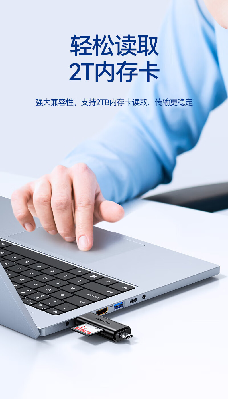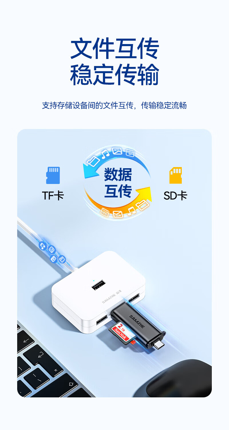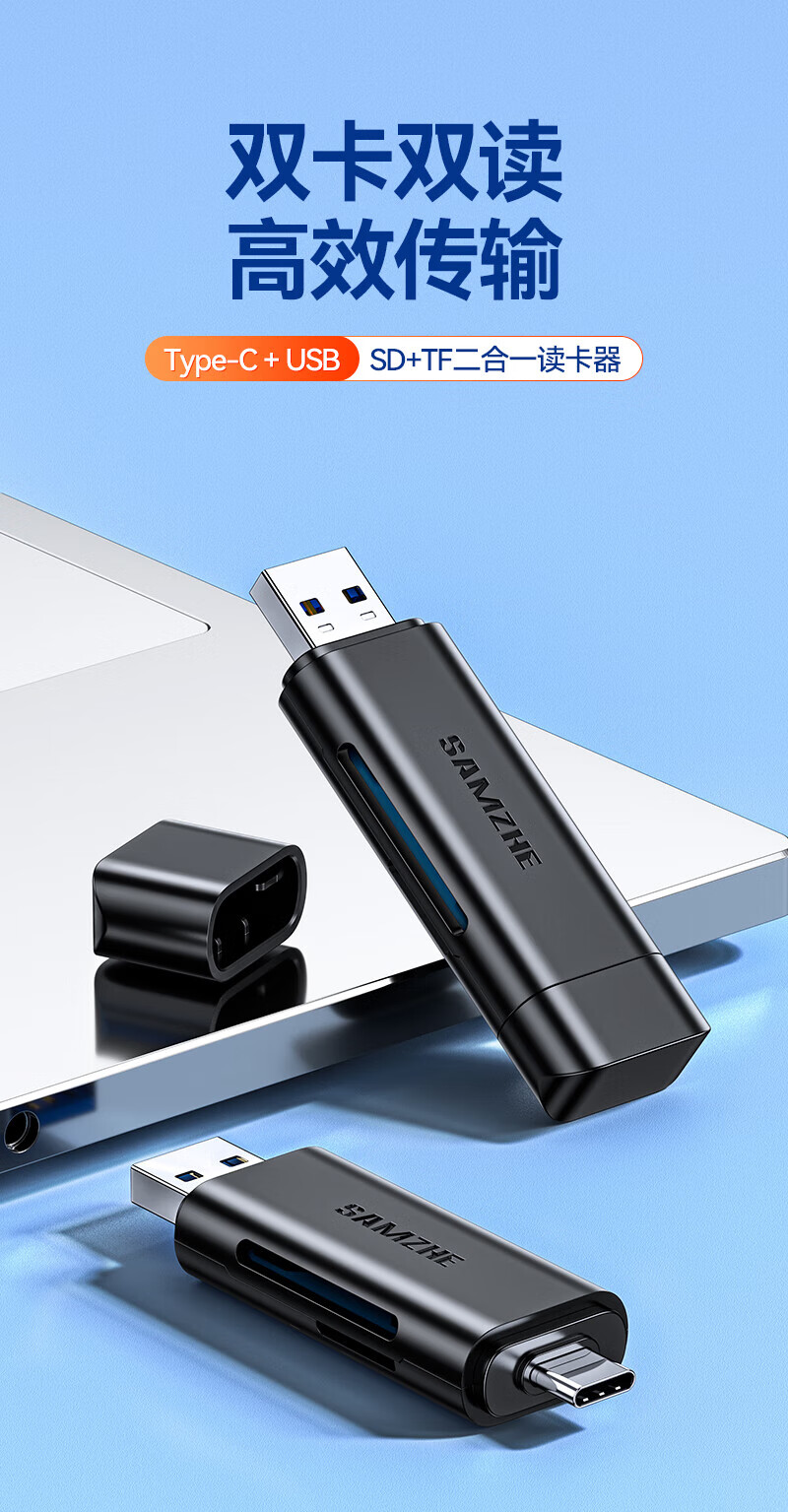 Shanze USB3.0 high-speed card reader dual card dual reading multi-functional SD/TF card reader supports mobile phone SLR camera driving recorder monitoring storage memory card Type-c dual card simultaneous reading 176MB/s