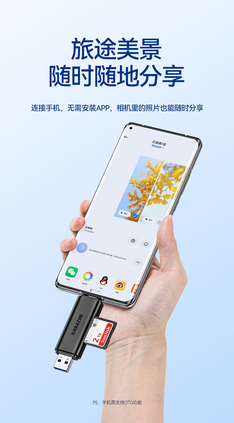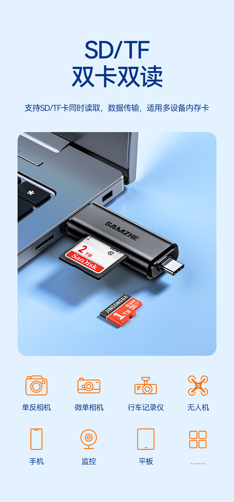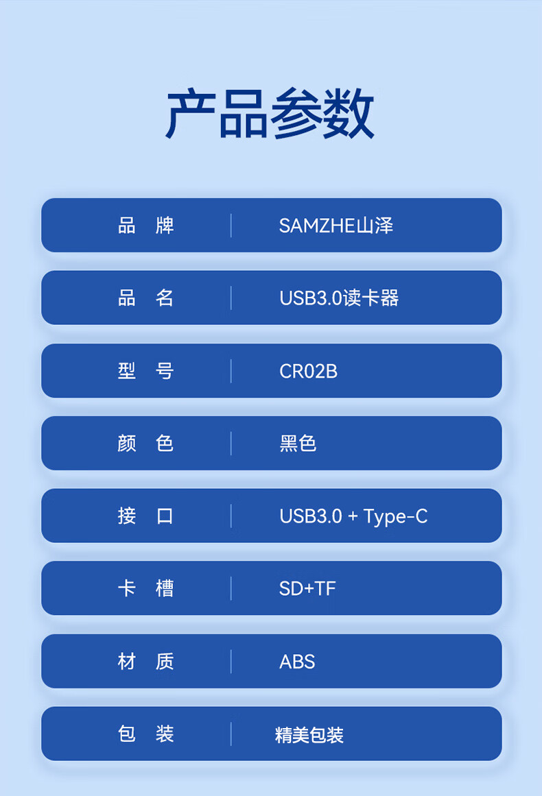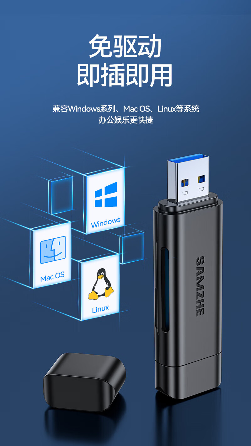 Shanze USB3.0 high-speed card reader dual card dual reading multi-functional SD/TF card reader supports mobile phone SLR camera driving recorder monitoring storage memory card Type-c dual card simultaneous reading 176MB/s