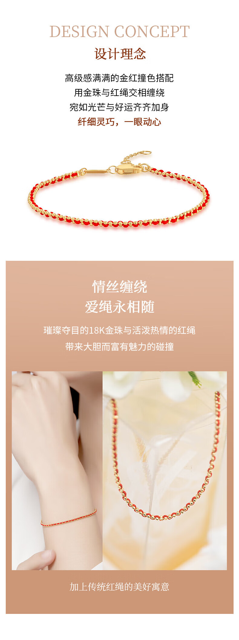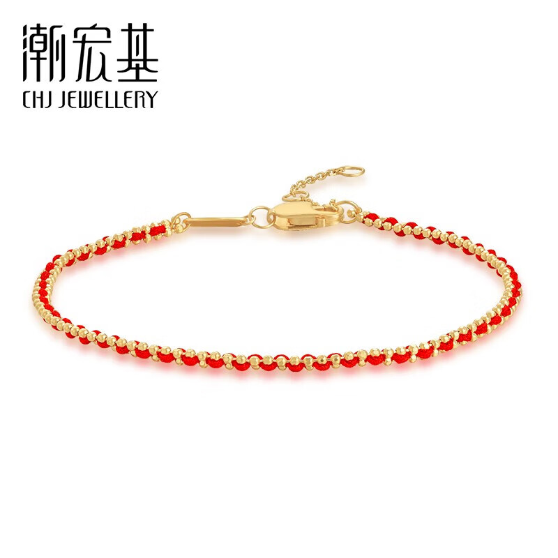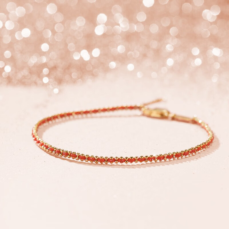 Chao Acer Little Love Rope Yellow 18K Gold Bracelet Women's Gold Stacked Bead Chain Gold Beads Zodiac Year Red Rope Birthday Gift Chain Approximately 15cm+