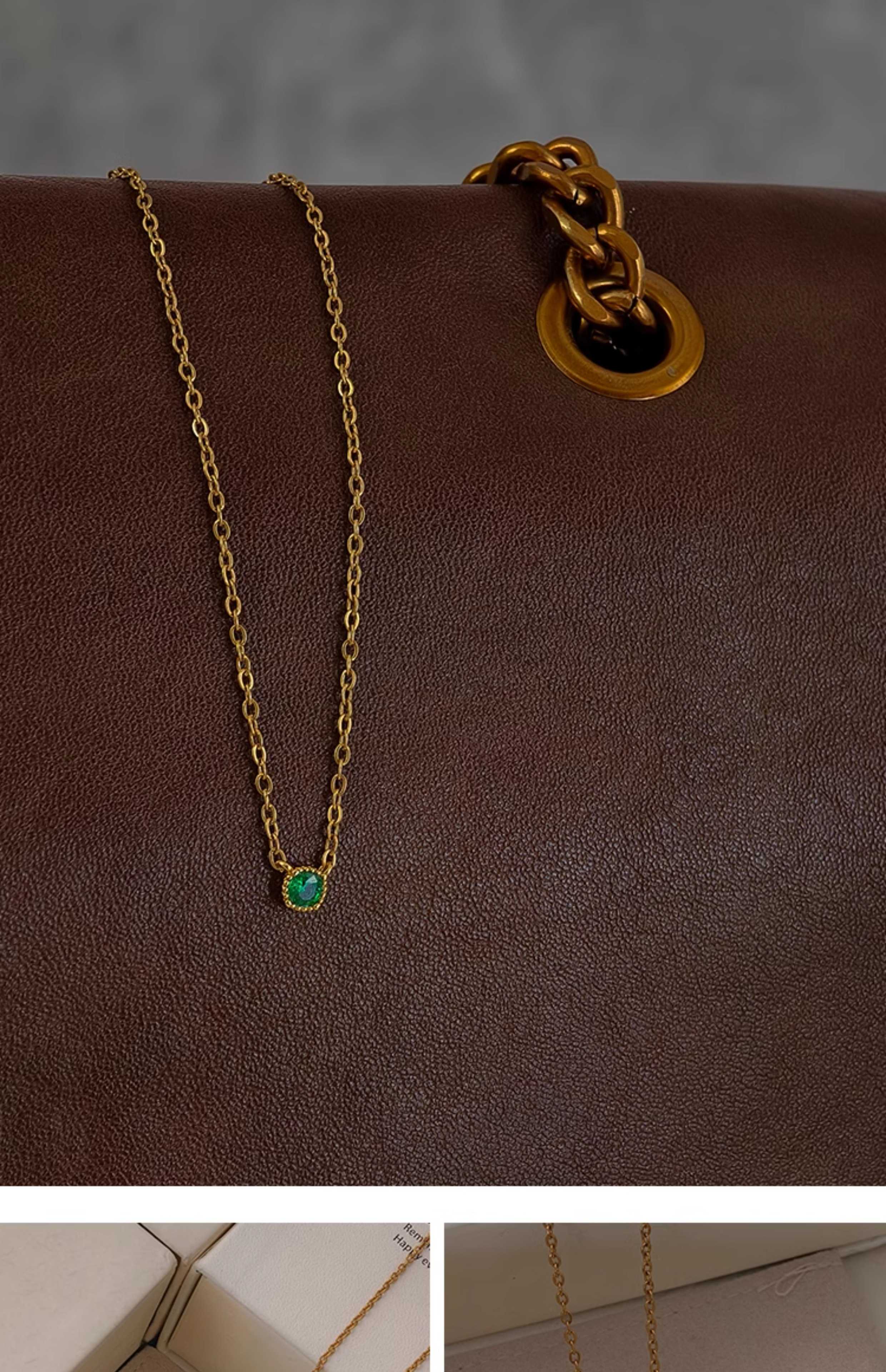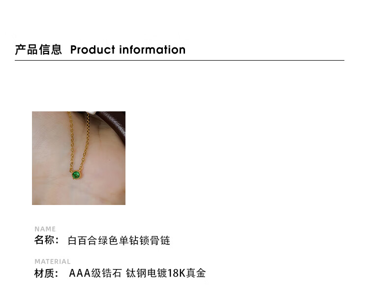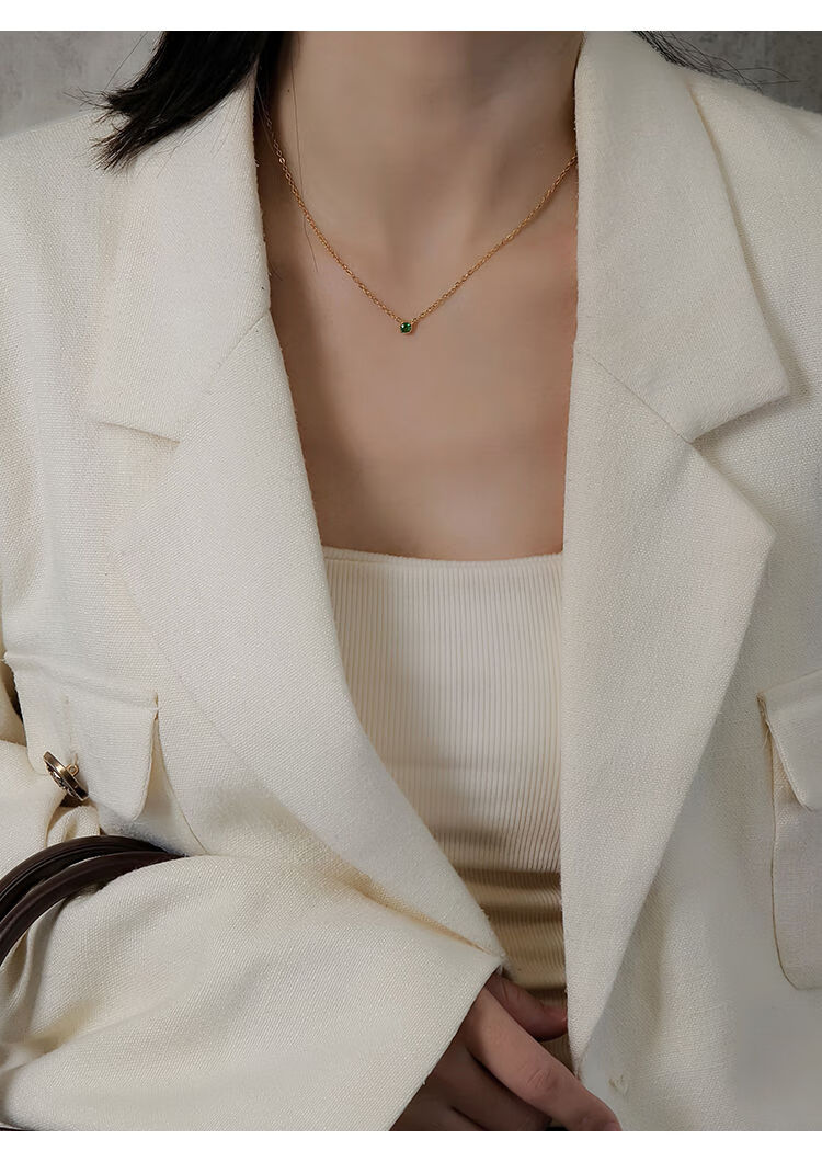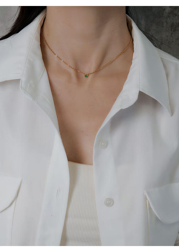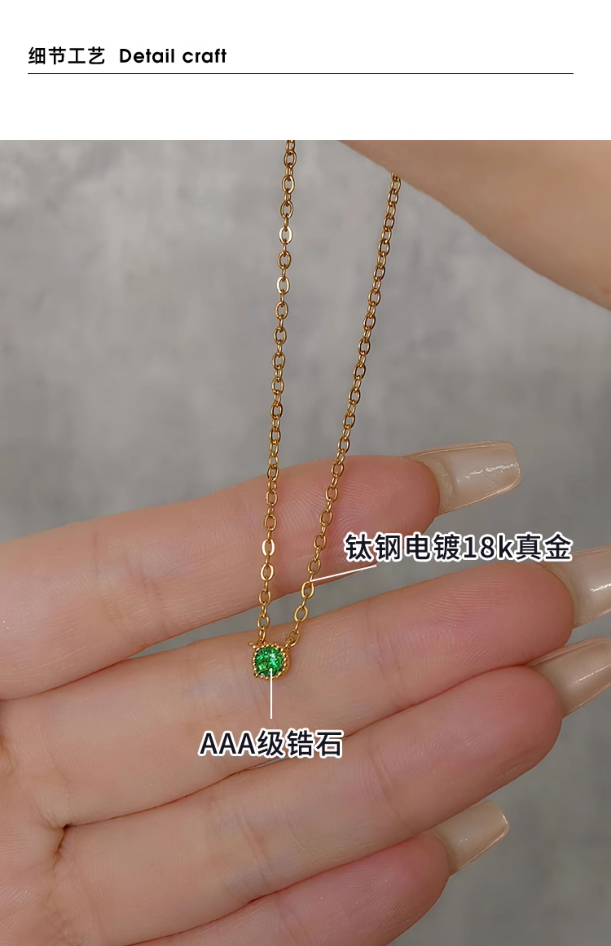 Zhongchi Good Reunion and Forward Bai Baihe same necklace green single diamond clavicle chain short non-fading titanium steel accessories green-handmade gemstone gold titanium steel chain