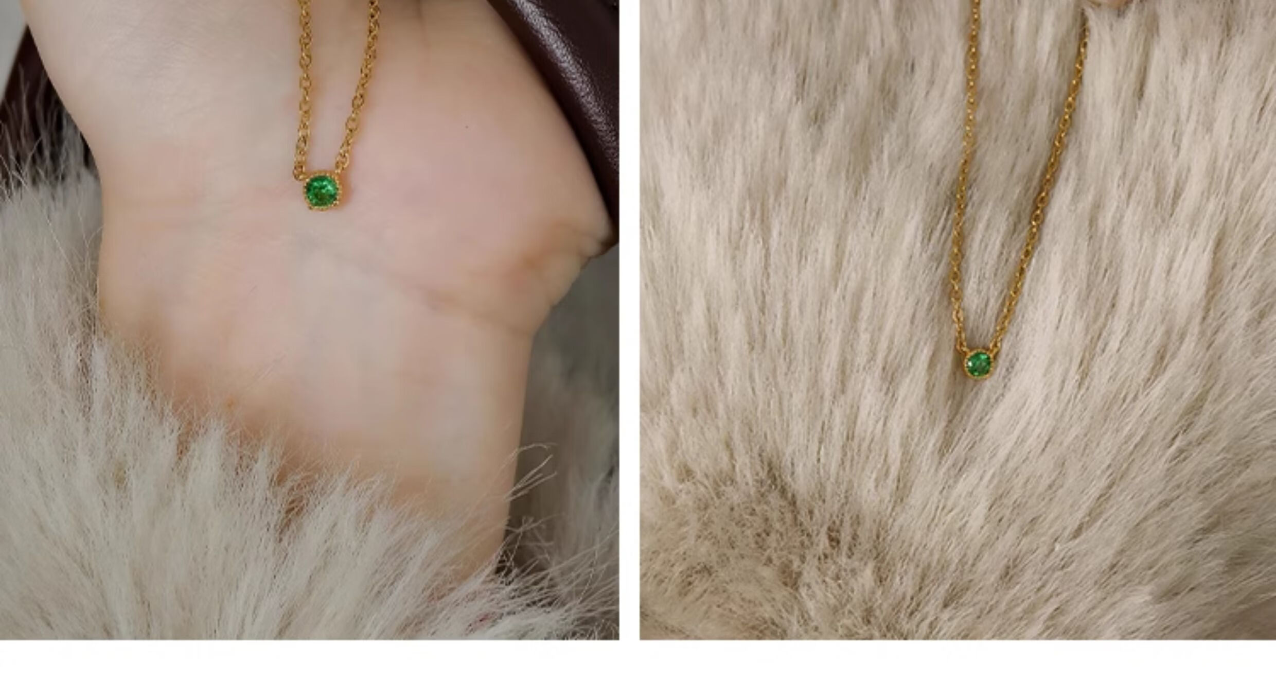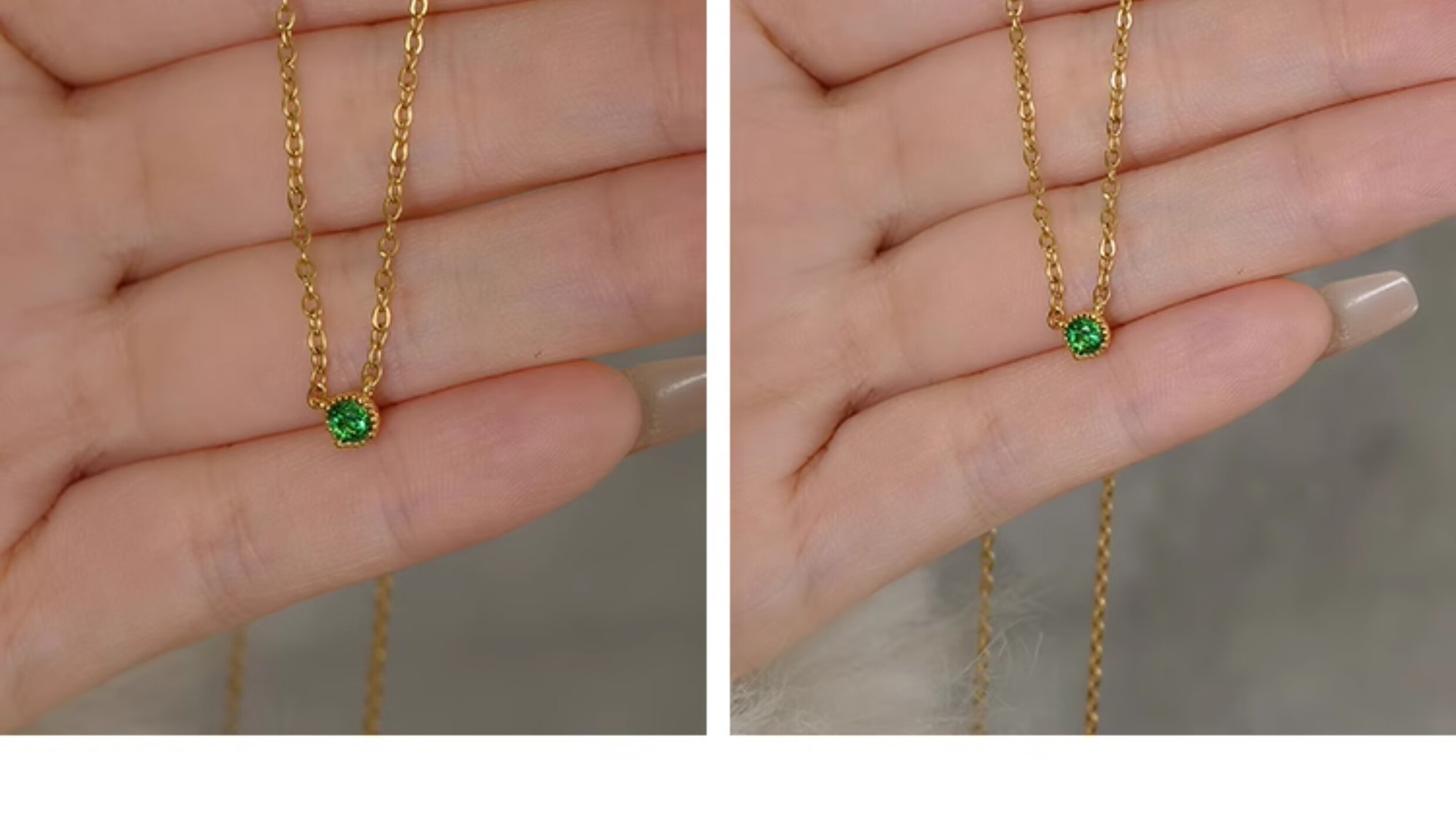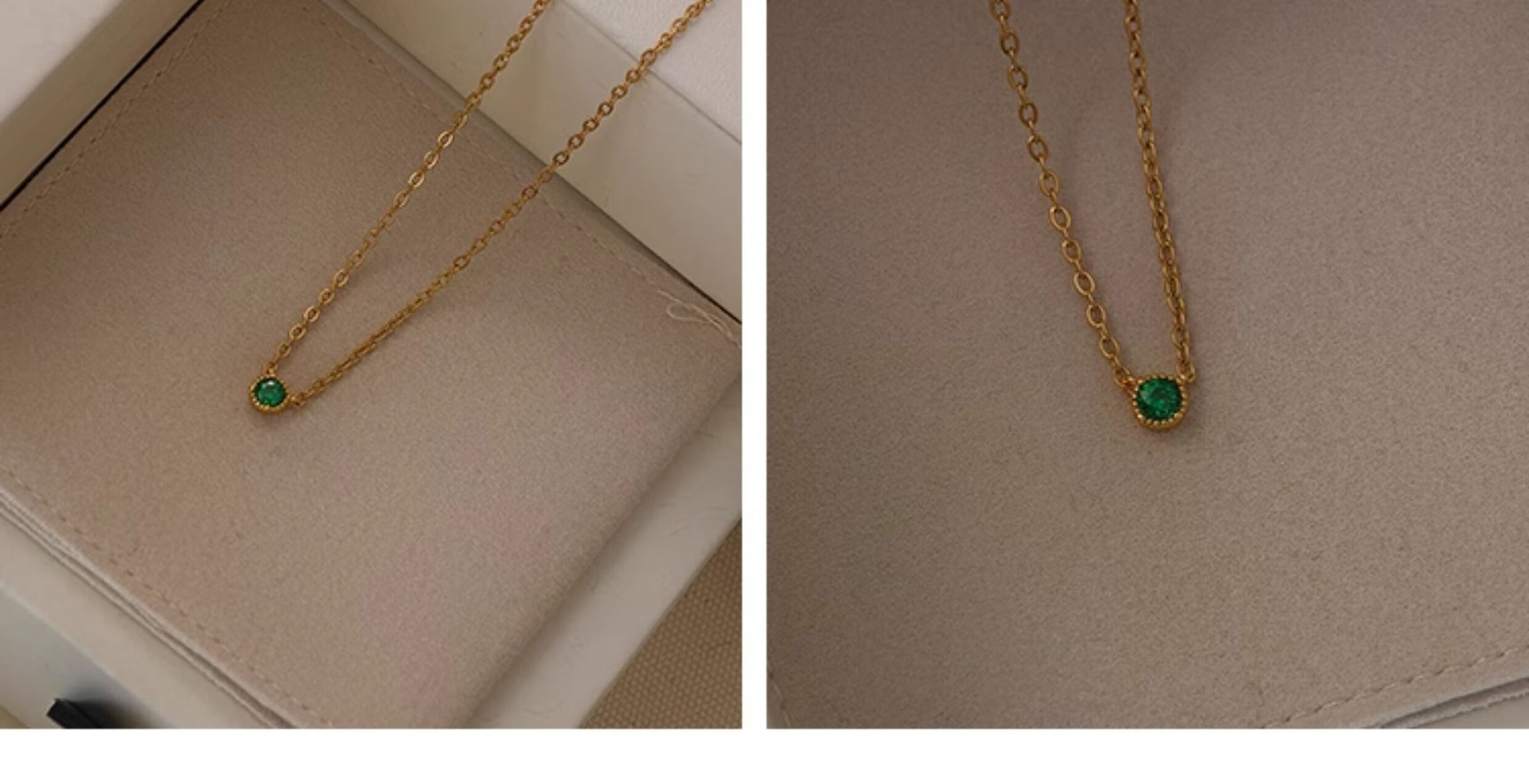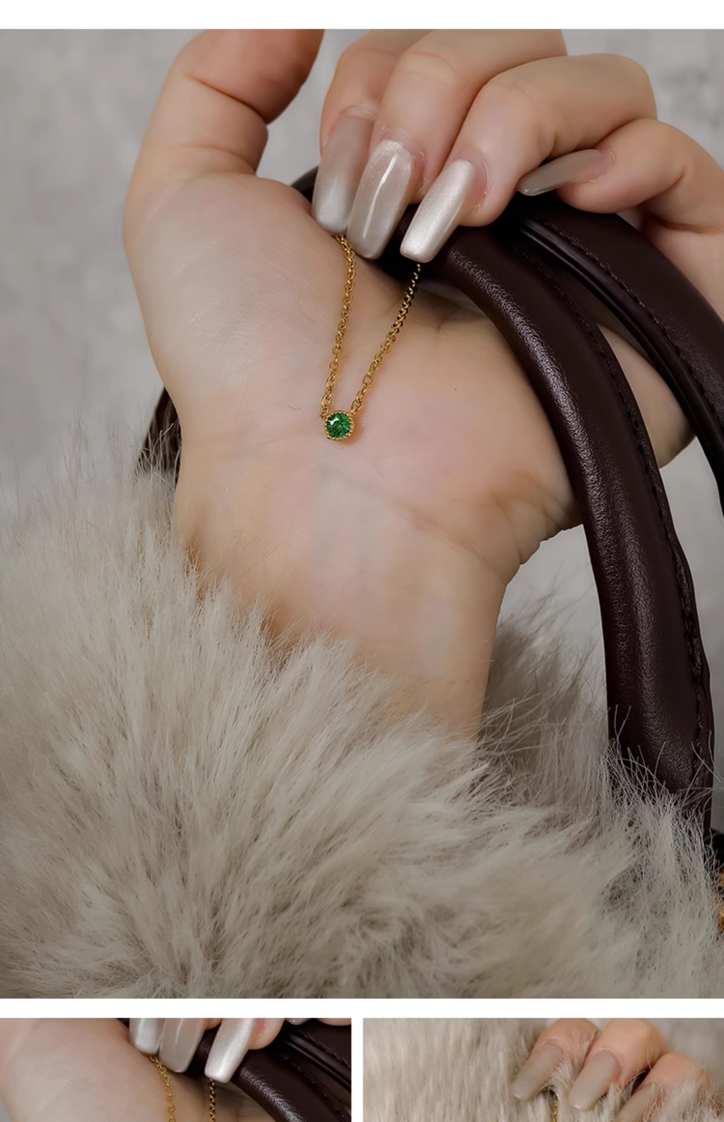 Zhongchi Good Reunion and Forward Bai Baihe same necklace green single diamond clavicle chain short non-fading titanium steel accessories green-handmade gemstone gold titanium steel chain