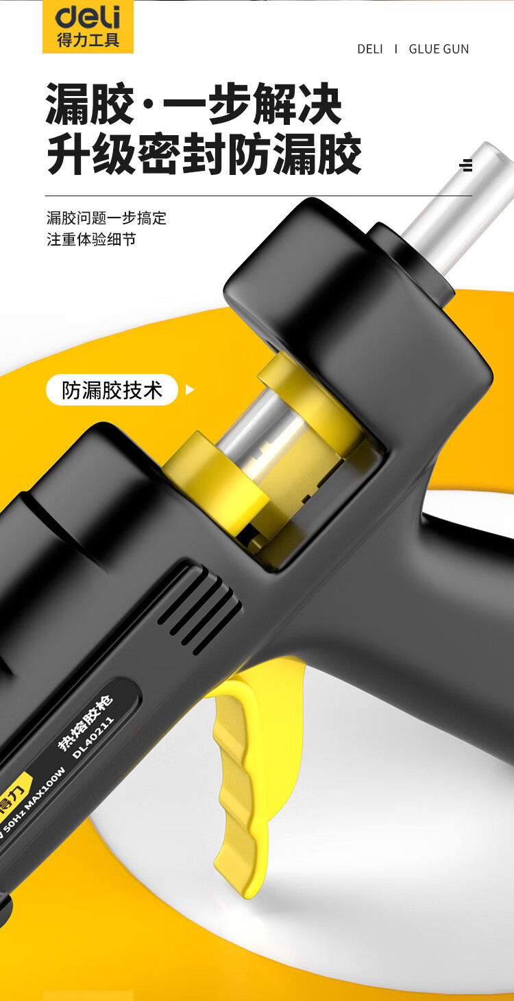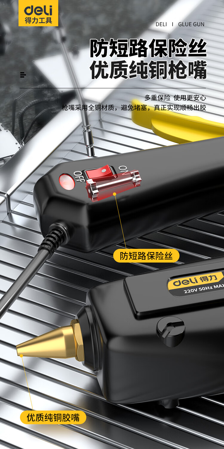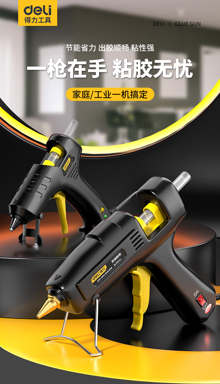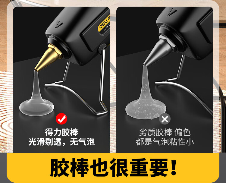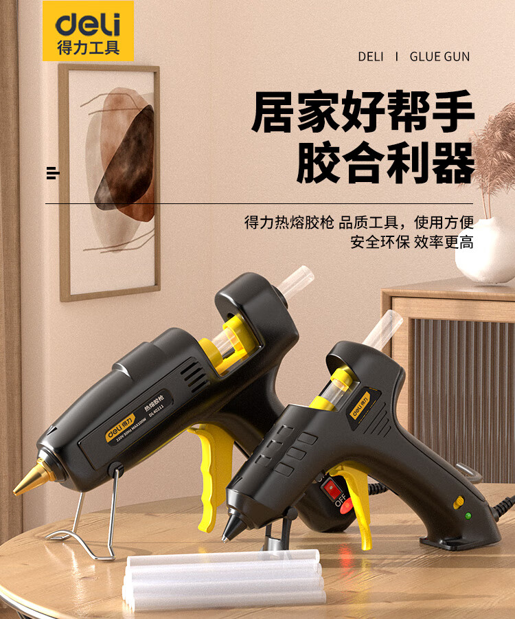Deli hot melt glue gun household manual glue gun industrial grade color hot melt glue stick high power copper mouth hot melt gun 40w+60 glue stick+cloth bag