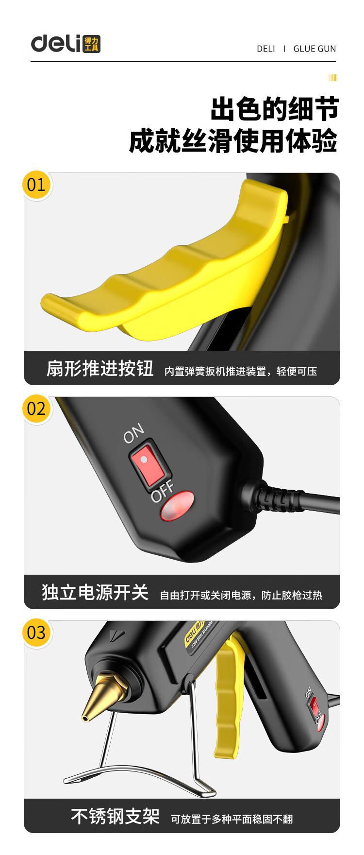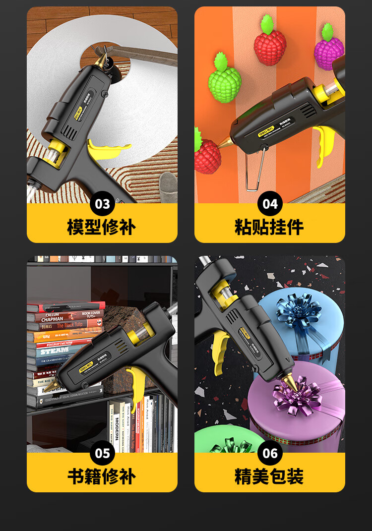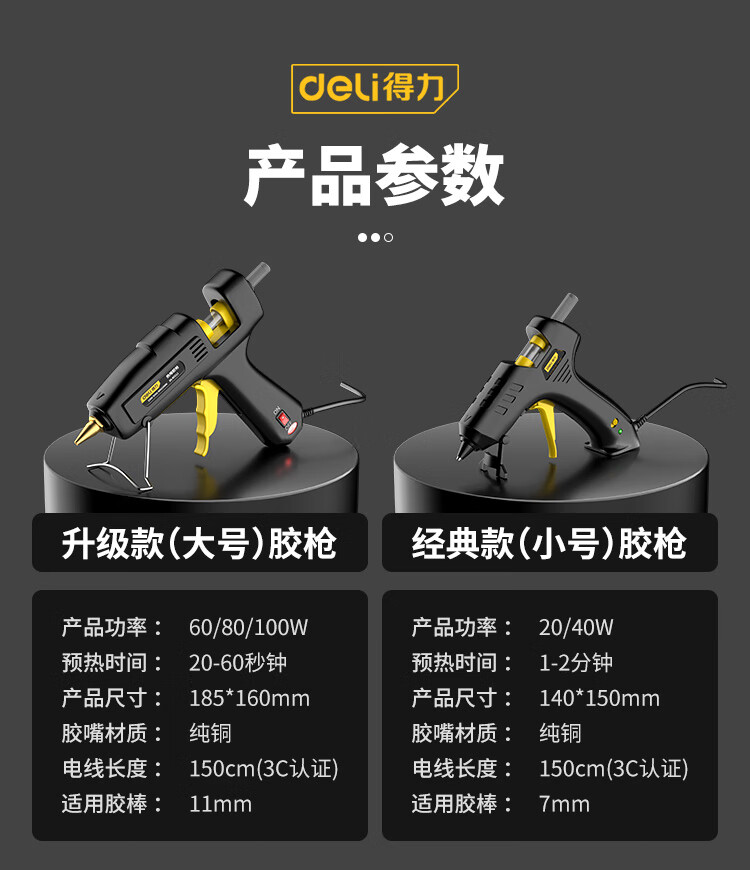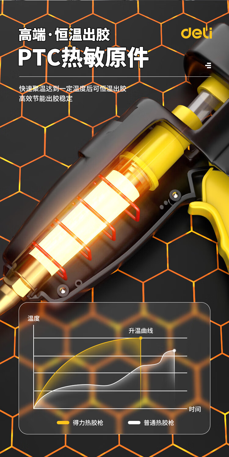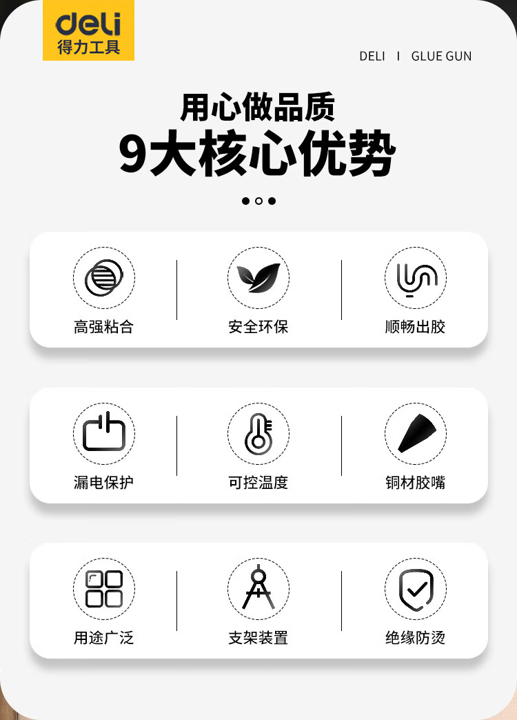 Deli hot melt glue gun household manual glue gun industrial grade color hot melt glue stick high power copper mouth hot melt gun 40w+60 glue stick+cloth bag