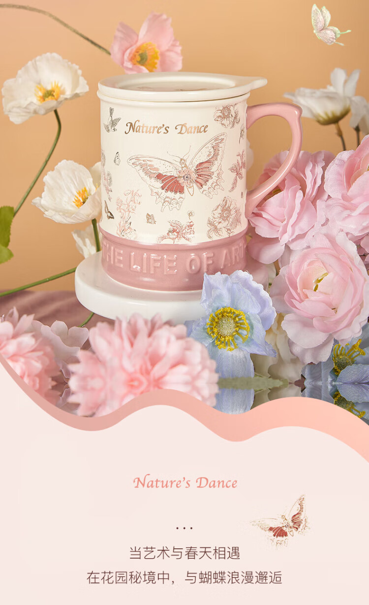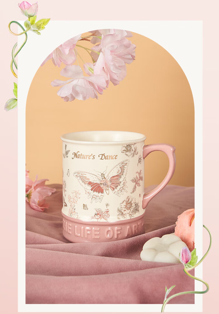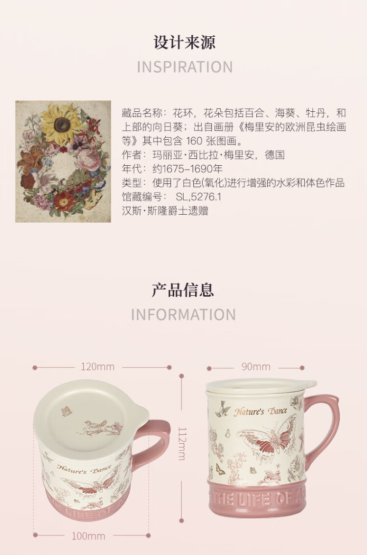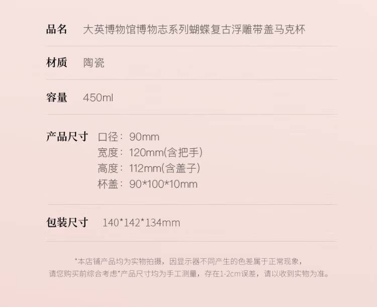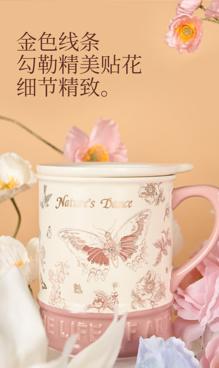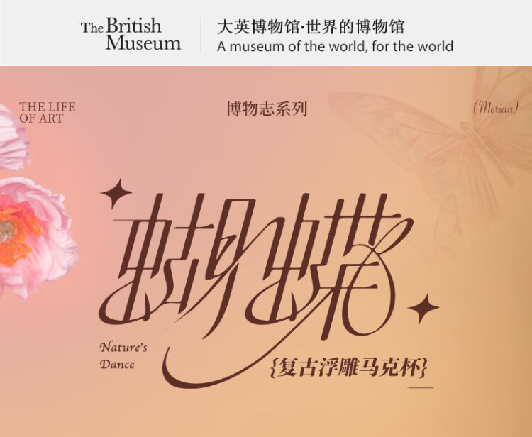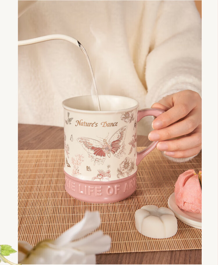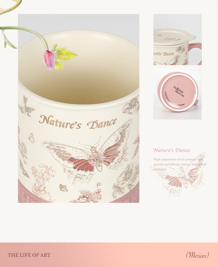 British Museum Birthday Gift Natural History Butterfly Retro Embossed Mug with Cover Cultural and Creative Gifts Birthday Gift Butterfly Embossed Mug 450ml 1 piece