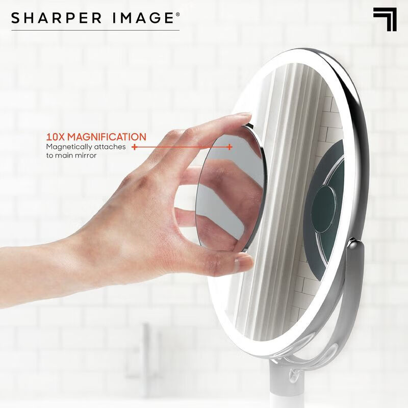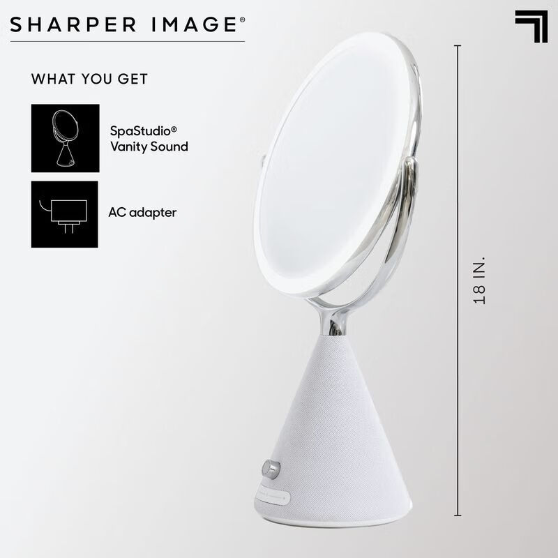 SHARPER IMAGE SPASTUDIO 9-inch double-sided vanity mirror with built-in speaker wireless Bluetooth 360 rotary touch control adjustable LED light white