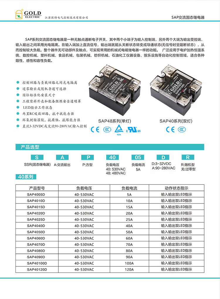 New GOLD solid state relay SAP40100D DC control AC 4090D 40120D SAP4005D