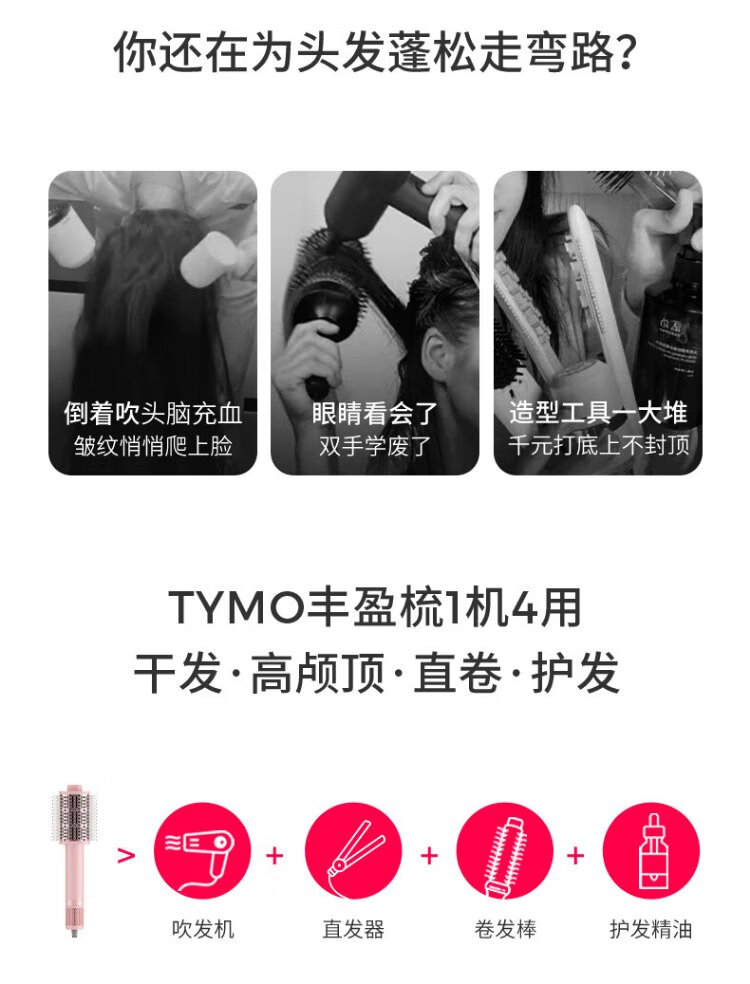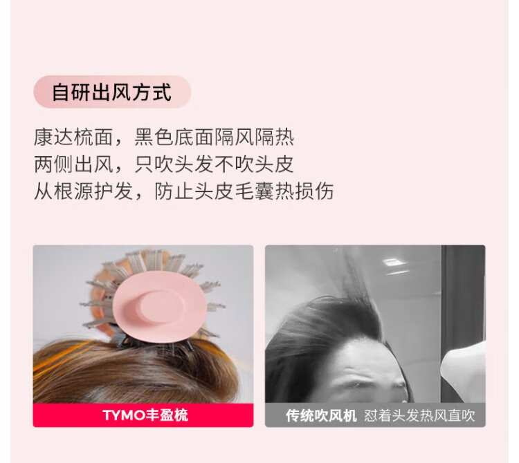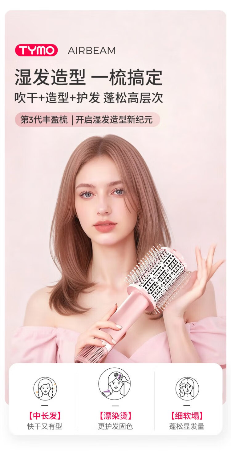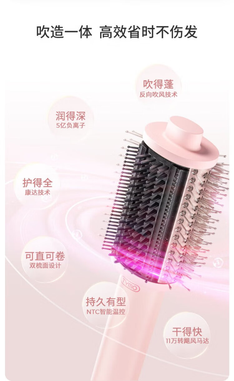 TYMO 3rd generation volumizing comb, fluffy blow drying comb, high-speed blow drying straightening comb, negative ion hair care, no damage to hair, wet and dry use, Coanda effect, blow-drying, fluffy and long-lasting styling