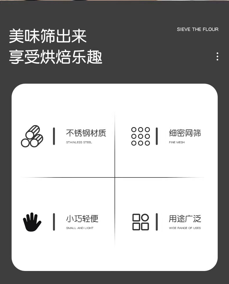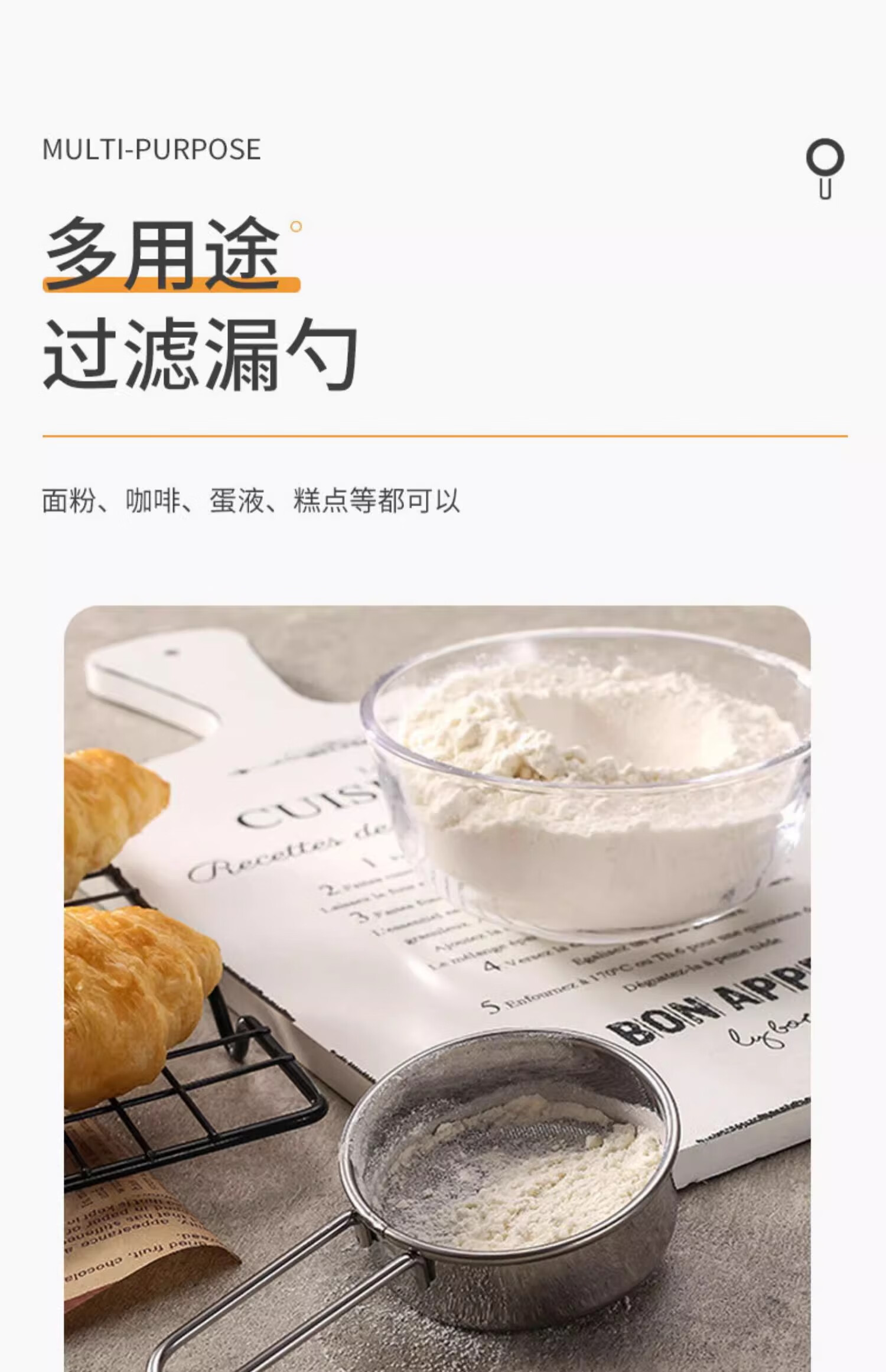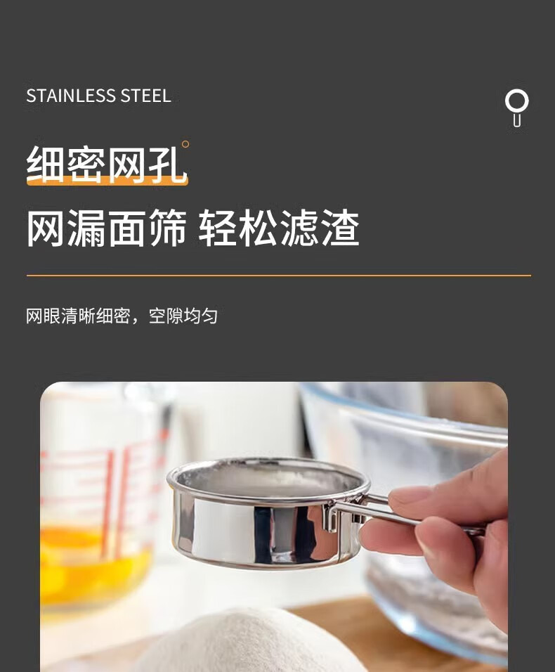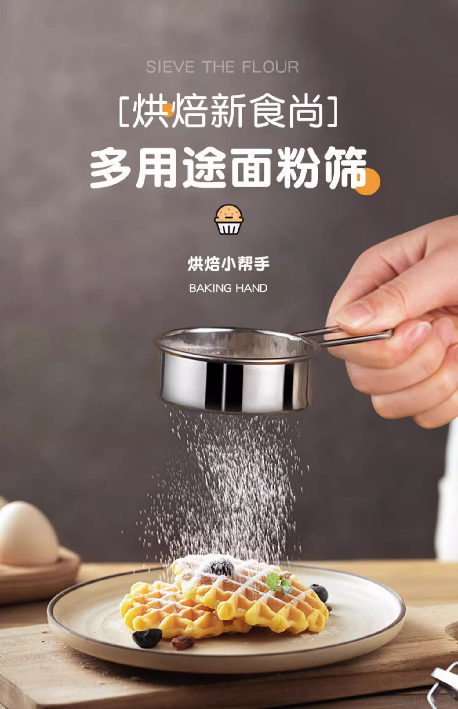 Youpin stainless steel powder spreader ultra-fine leaky mesh jar matcha sieve cocoa powder coffee small sieve flour sugar powder sieve household flour sieve