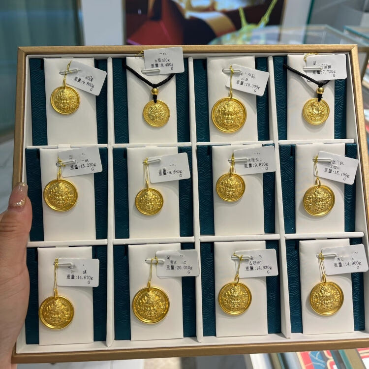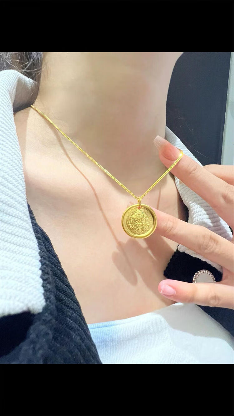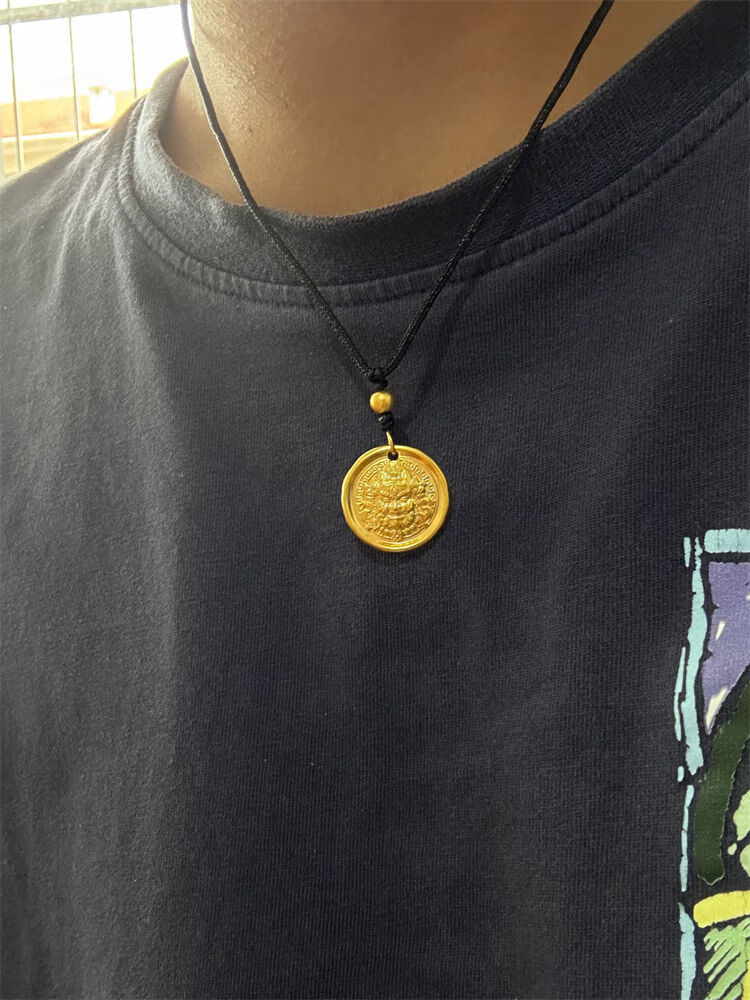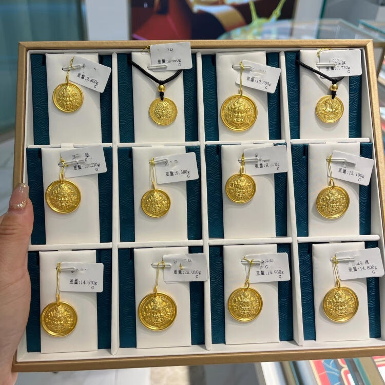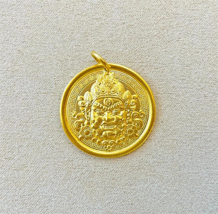 Zhongchi gold-wrapped silver-yellow God of Wealth pendant for men and women, solid eight treasures compass round plate, auspicious words handmade pendant necklace, 3CM auspicious words, yellow God of Wealth, gold-wrapped about 1.1 grams