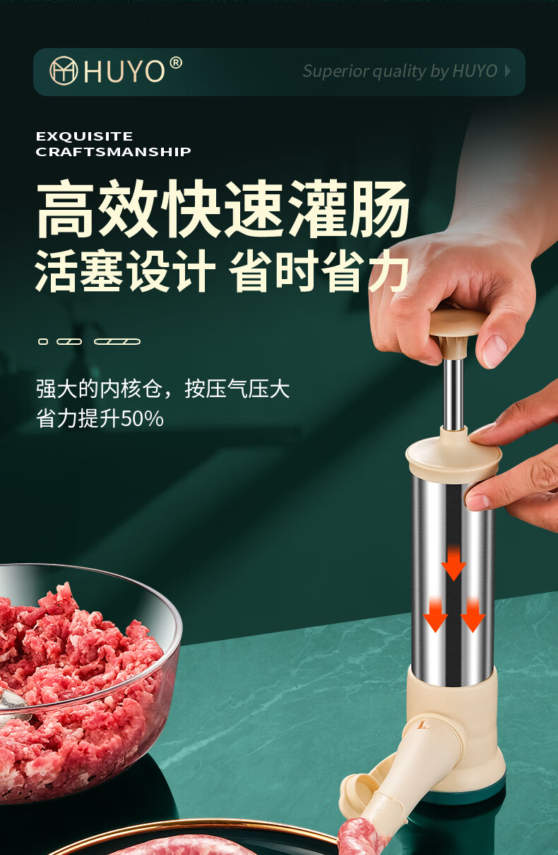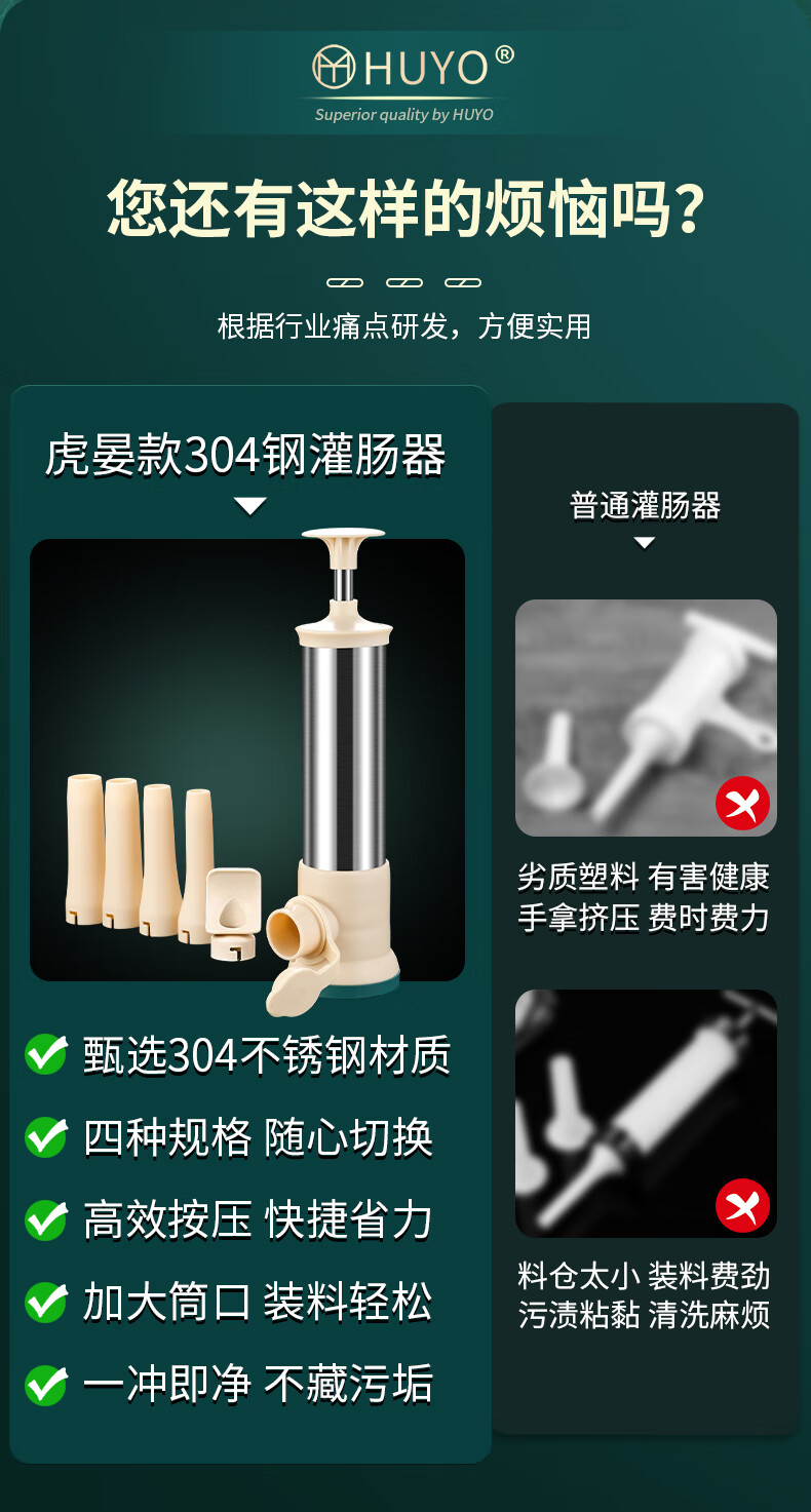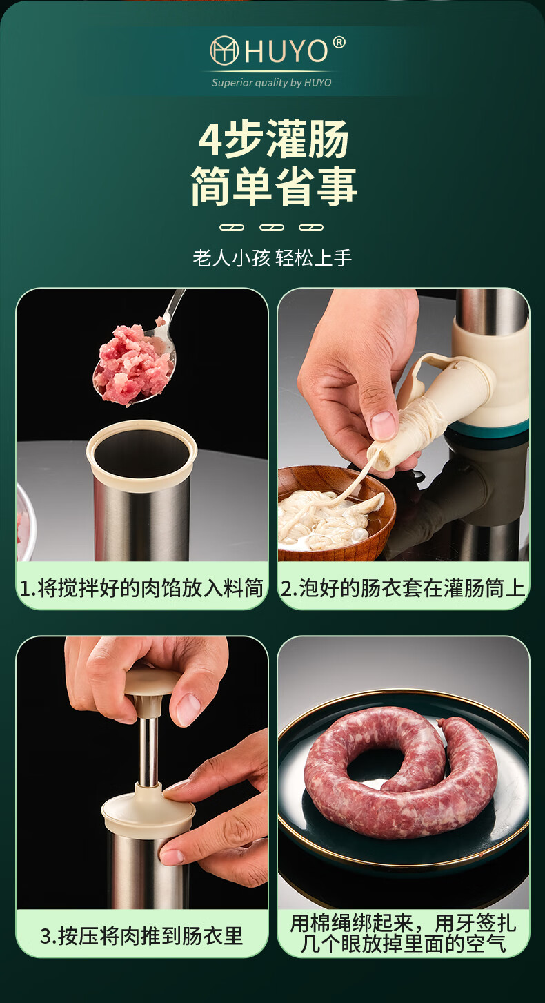 HUYO homemade sausage enema machine, household handmade children's sausage filling tool, food-grade pig casing meat filling artifact, four-mouth sausage enema, high barrel 28*7cm