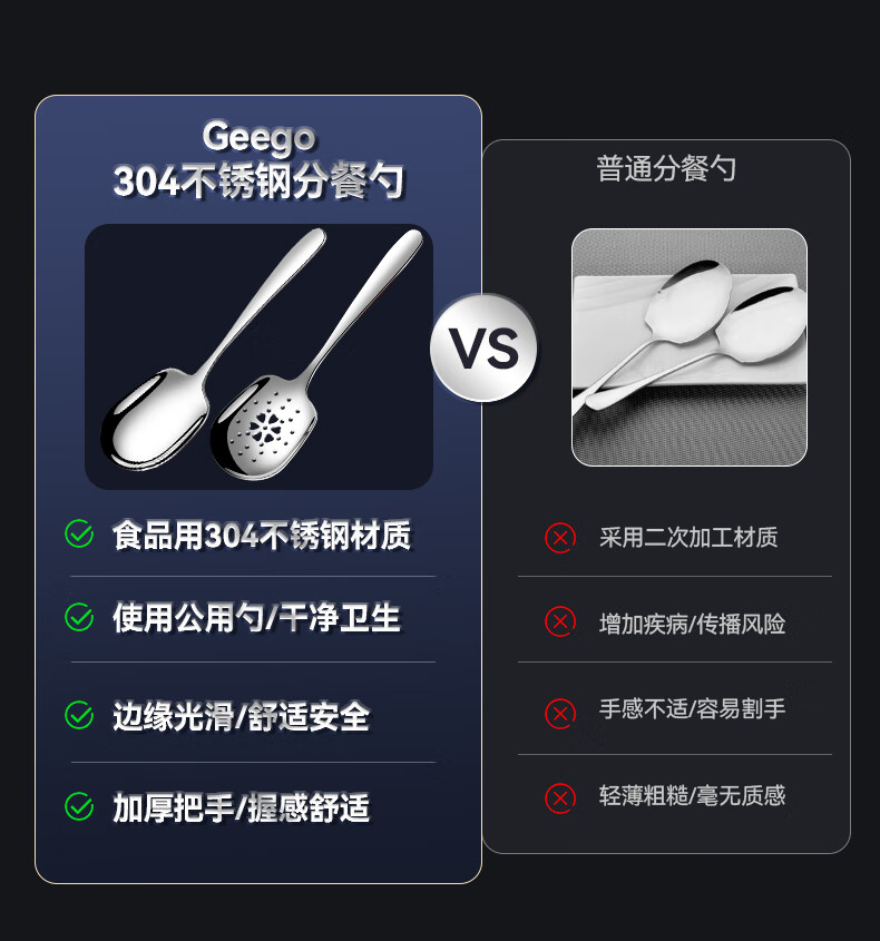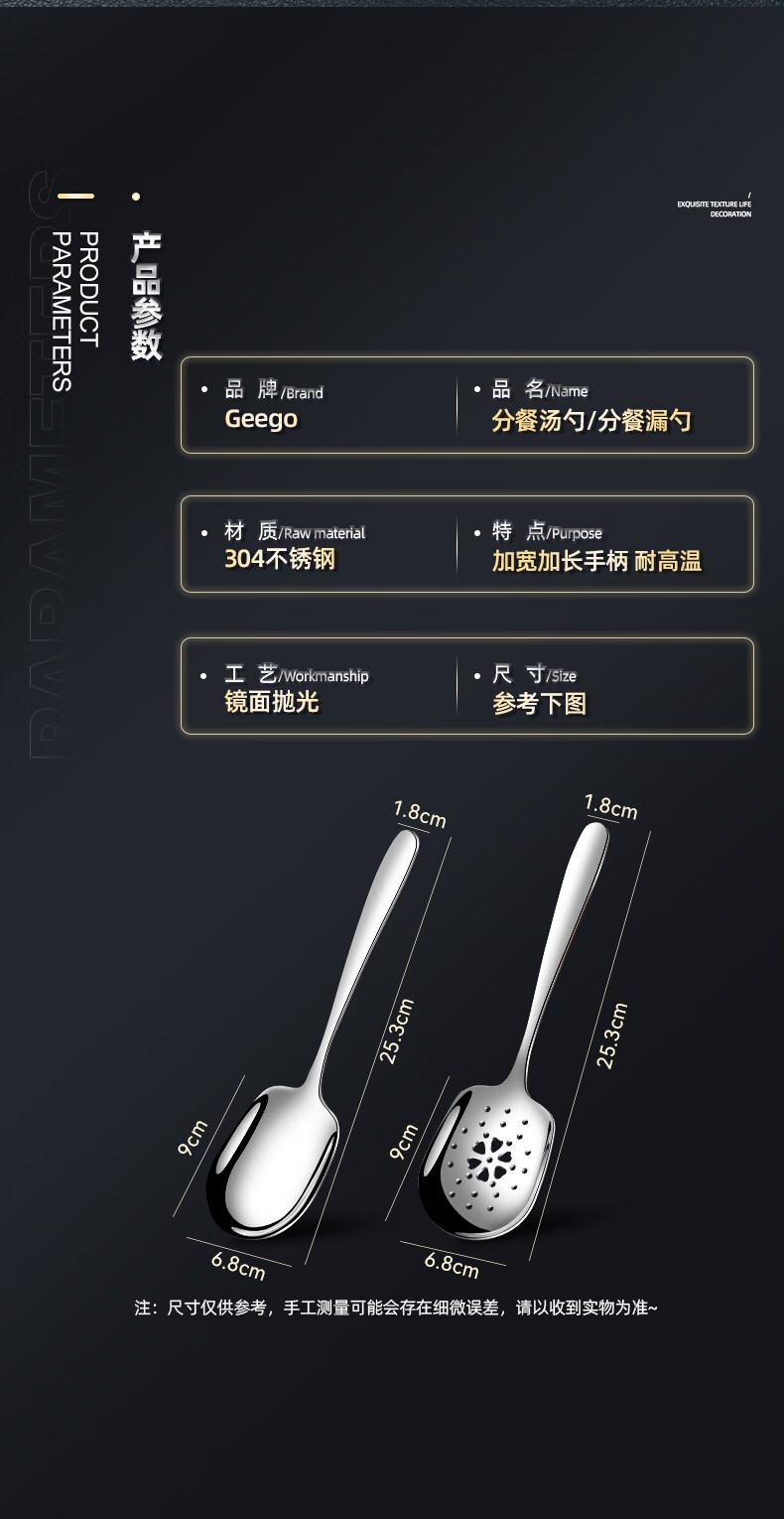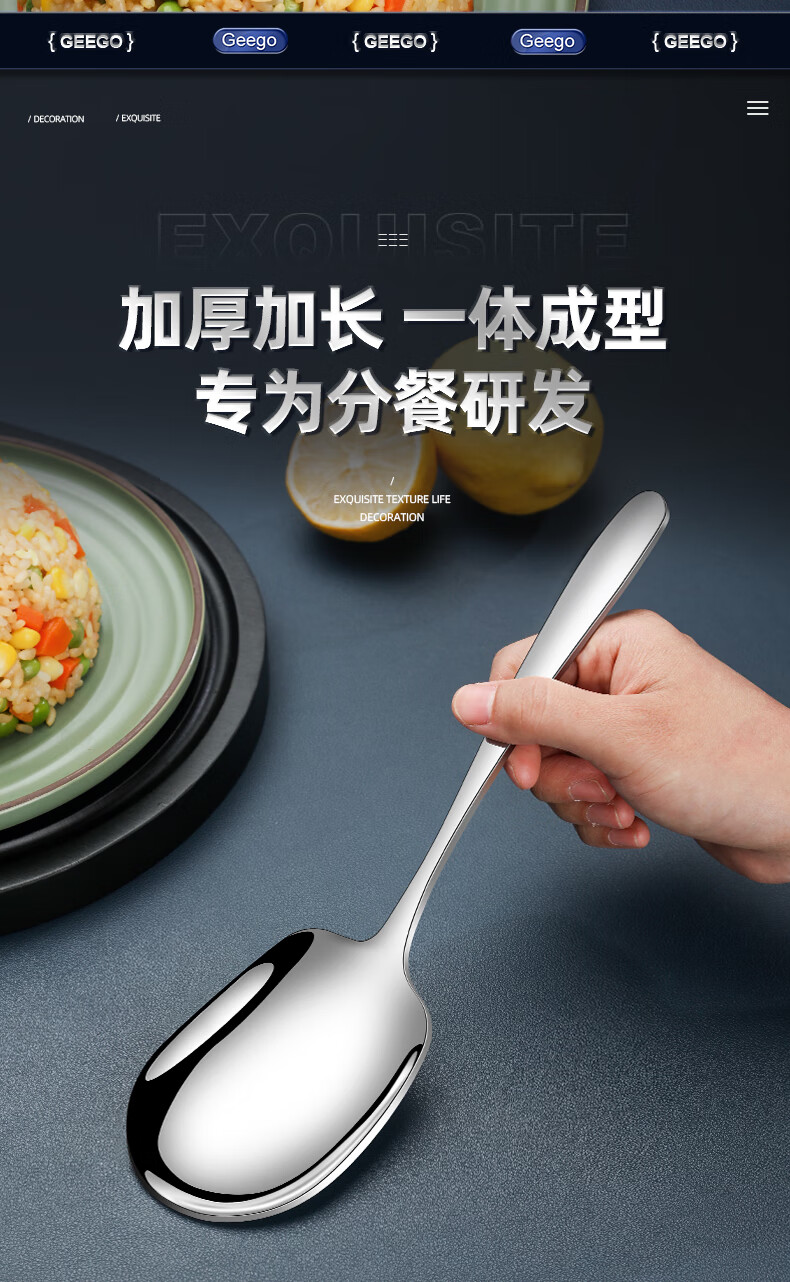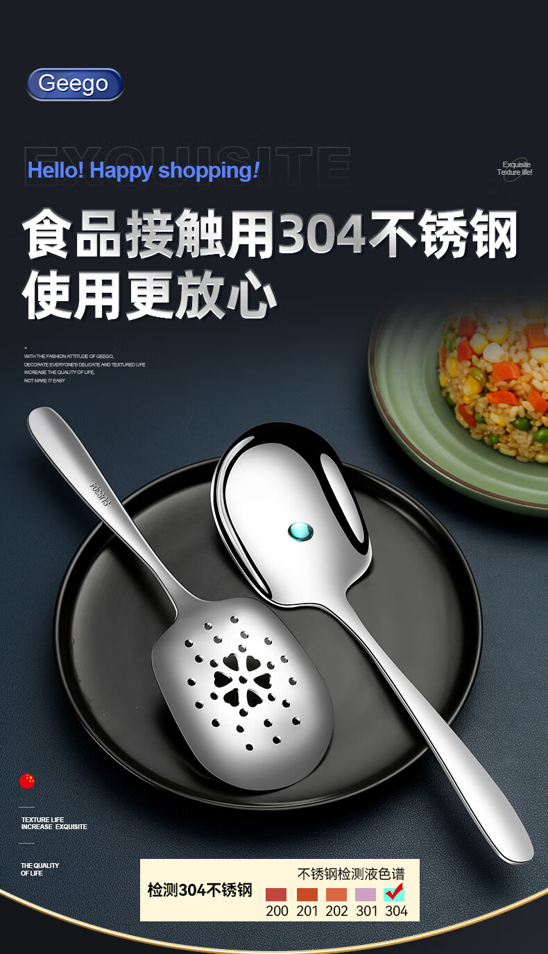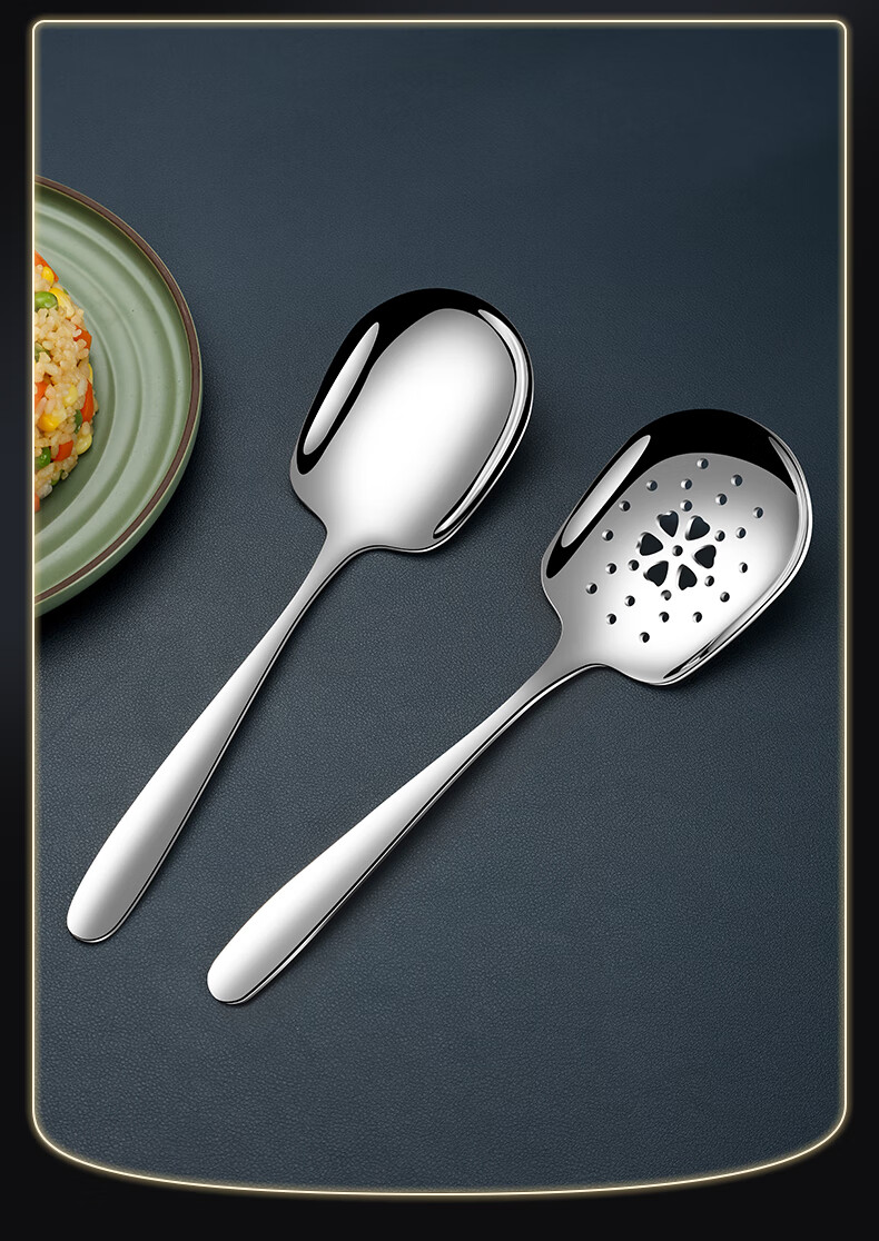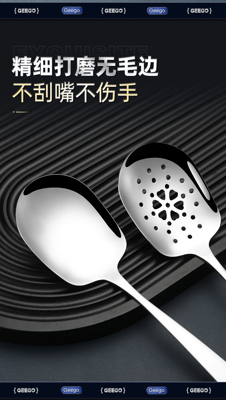 GEEGO304 stainless steel spoon, male spoon, serving spoon, communal spoon, eating spoon, large soup spoon, serving spoon, colander, soup spoon, 304 stainless steel serving spoon (widened and deepened)