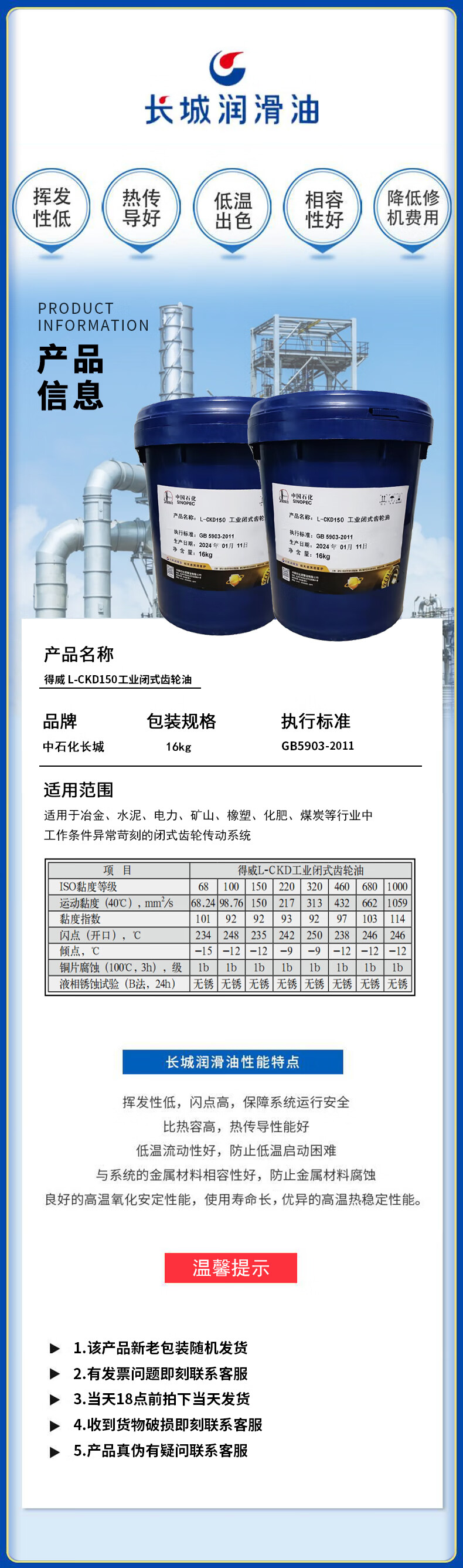 Great Wall L-CKD150 Industrial Closed Gear Oil Heavy Duty Gear Oil 170KG