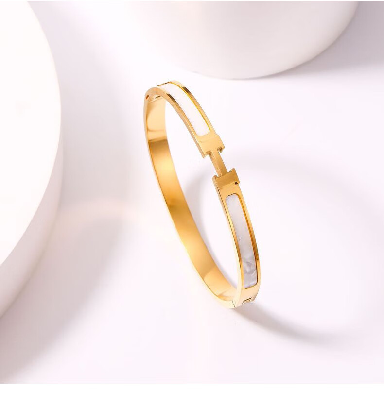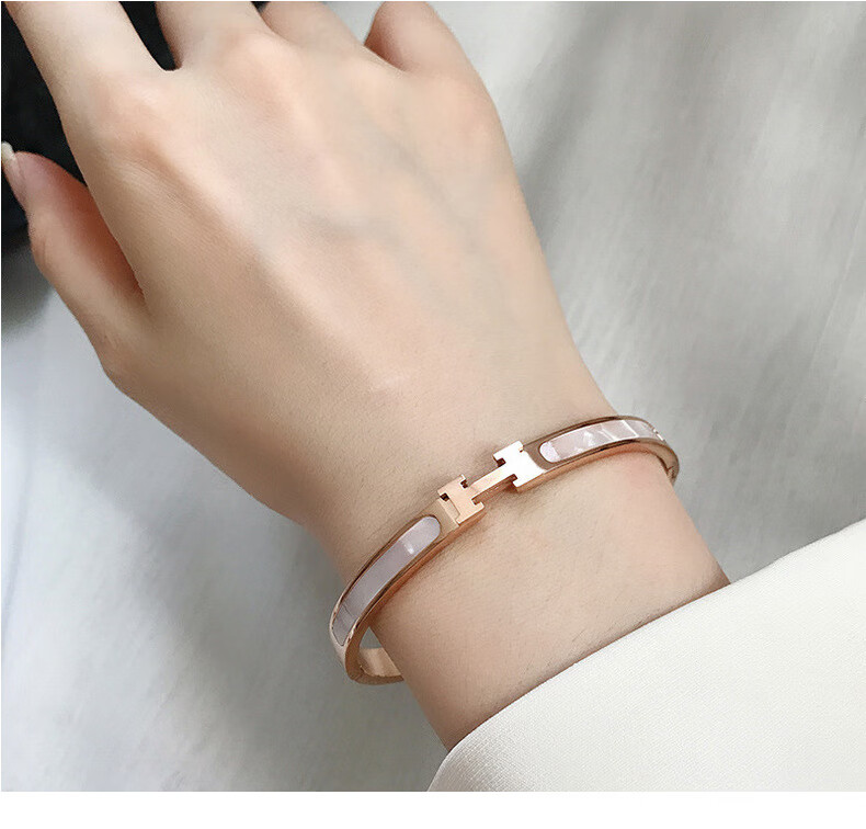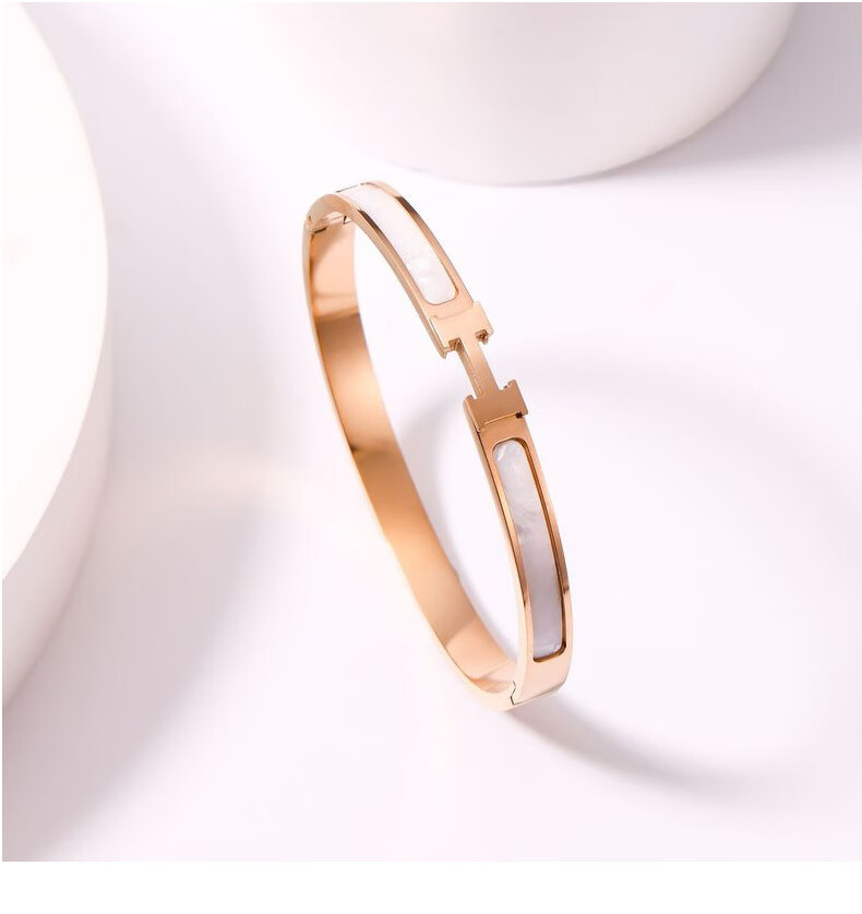 Medium red rose gold H letter bracelet light luxury exquisite ins niche design bracelet 18k titanium steel female internet celebrity white gold H bracelet