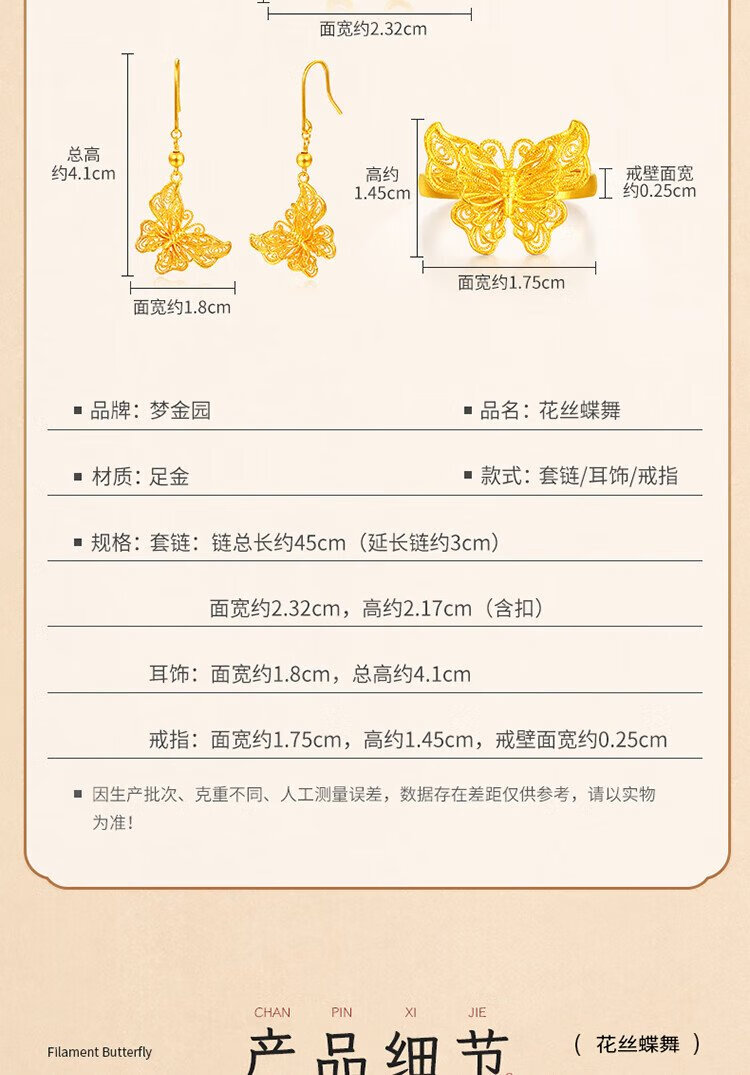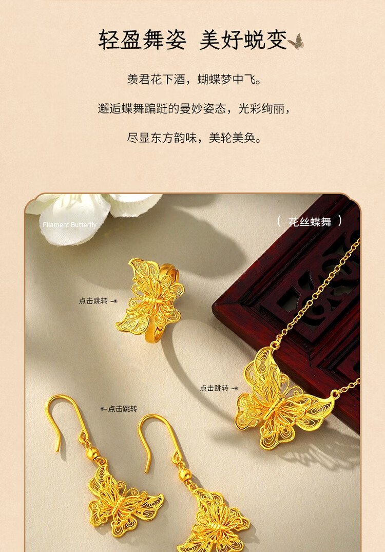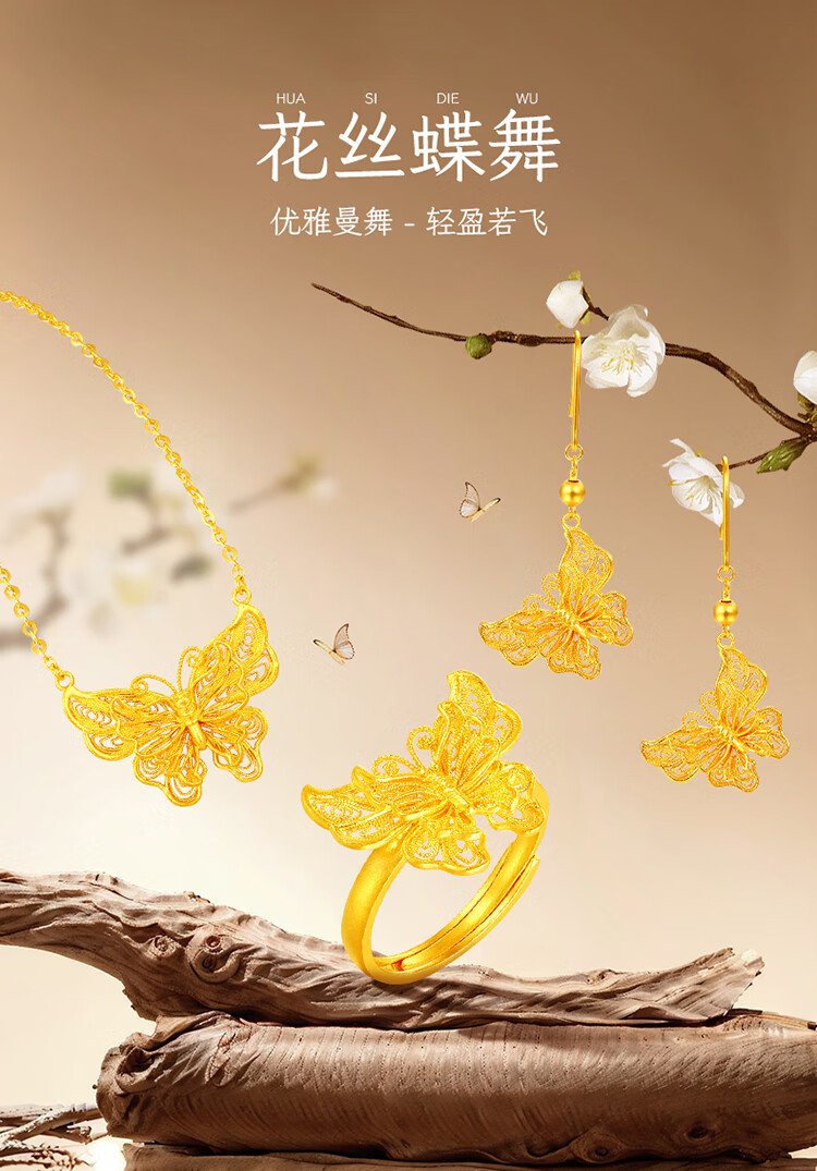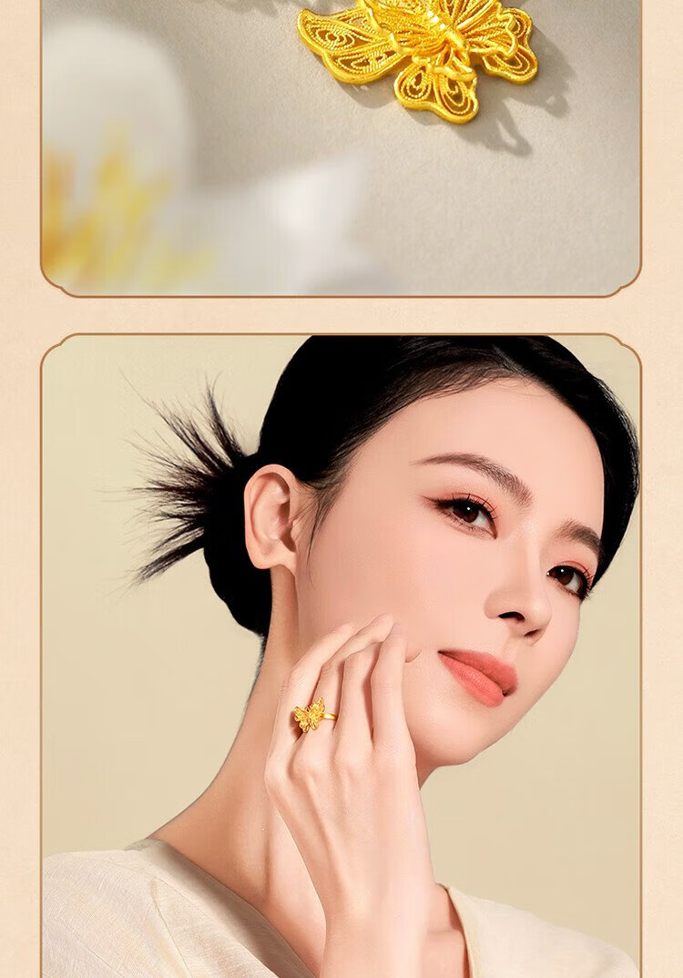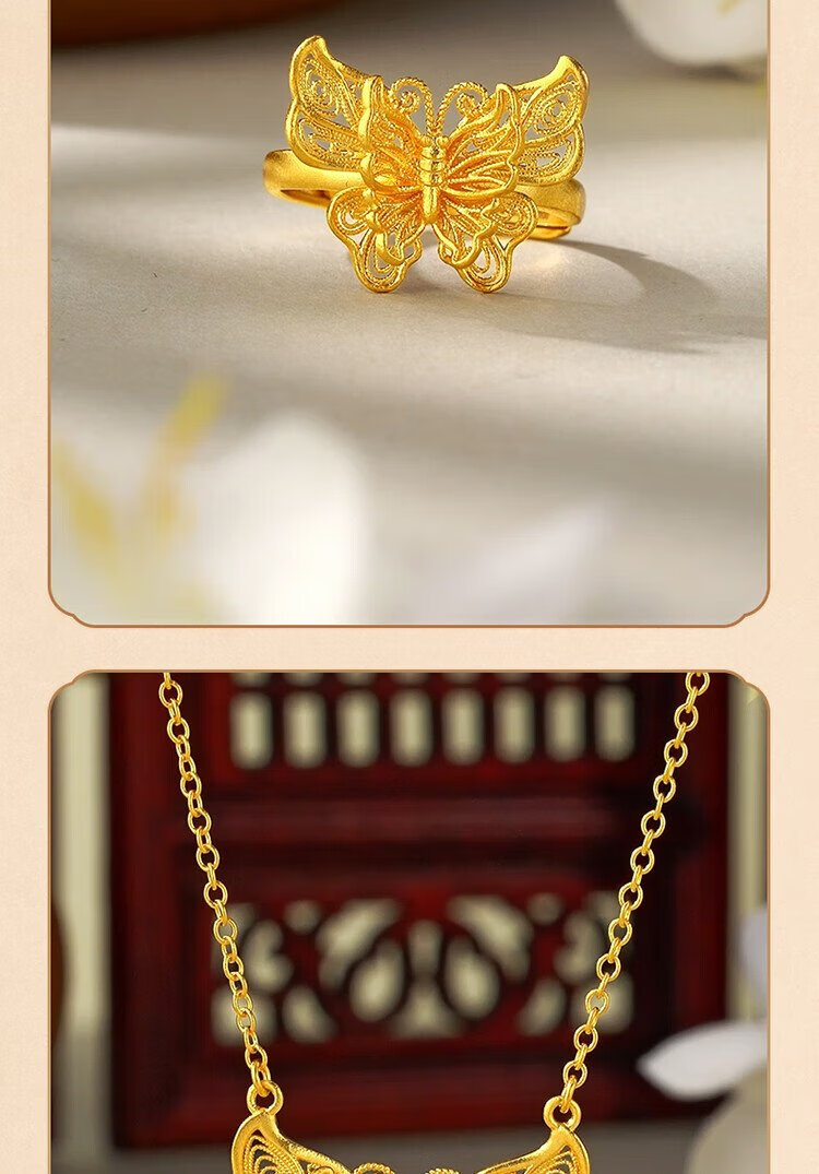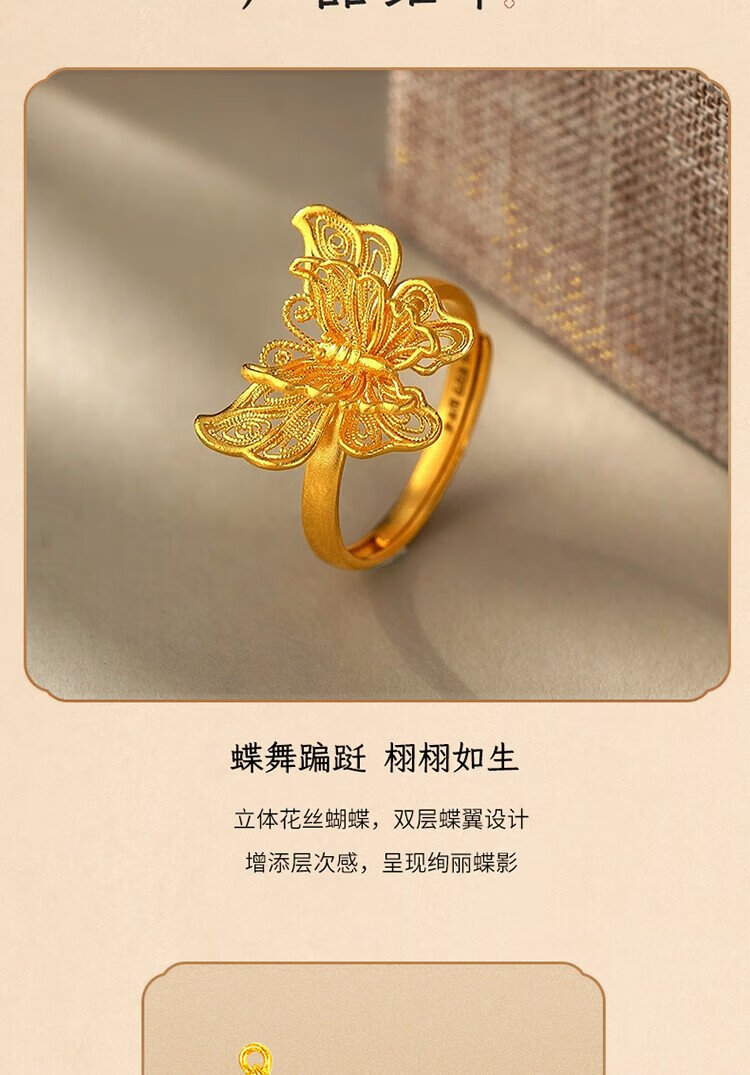 Mengjinyuan pure gold ancient gold ring for women, hollow filigree butterfly dance gold ring as a birthday gift for girlfriend, about 4.74g