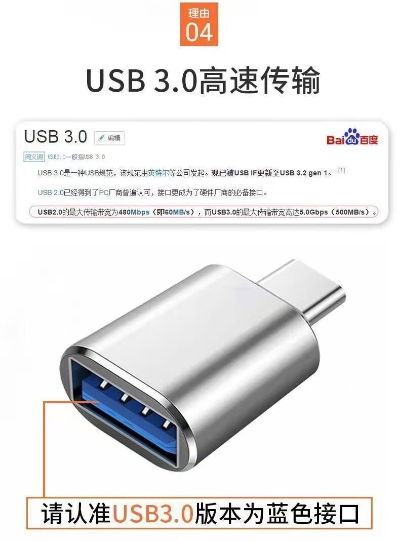 Typec to USB3.0 adapter OTG converter tpc suitable for Huawei Xiaomi Android interface mobile phone laptop universal connection U disk mouse keyboard typec to USB3.0 black