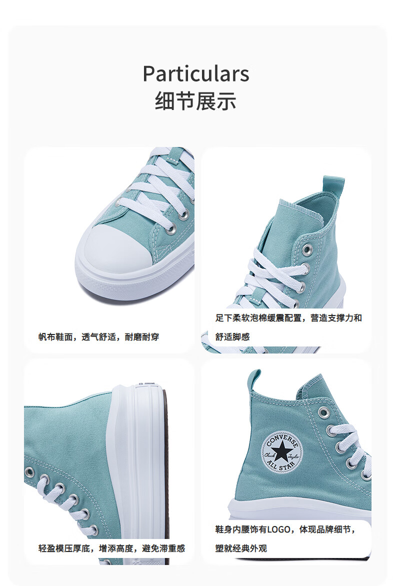 Converse children's clothing girls canvas shoes spring new high-top thick-soled big children's fashion casual shoes A10703C blue 39 recommended foot length 24.5cm