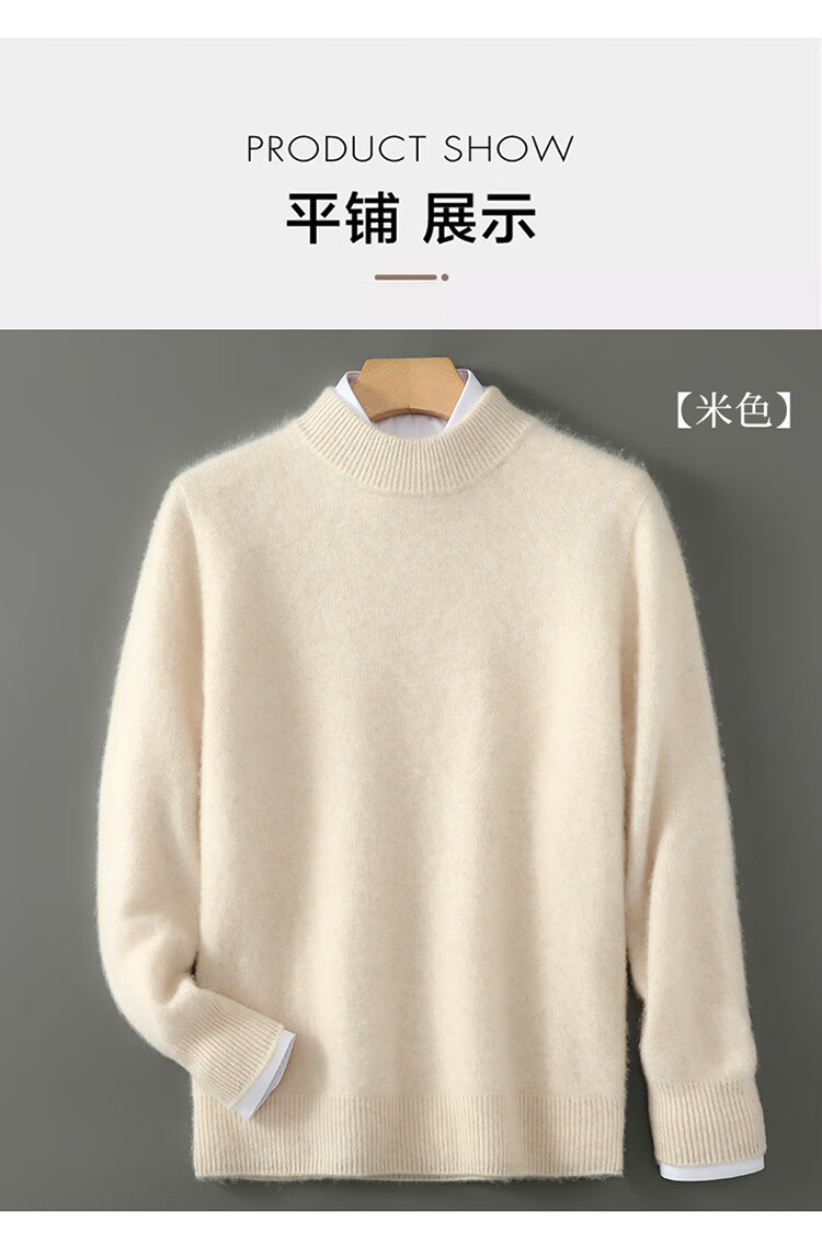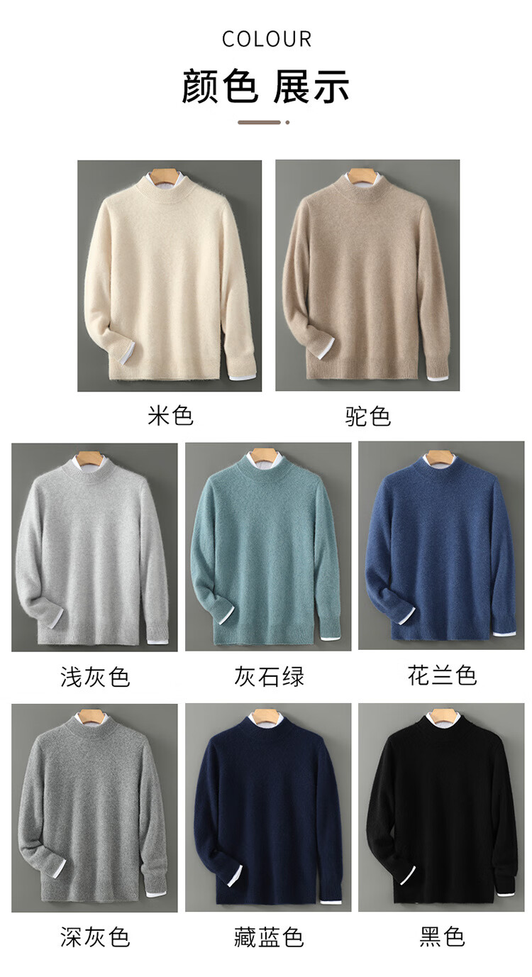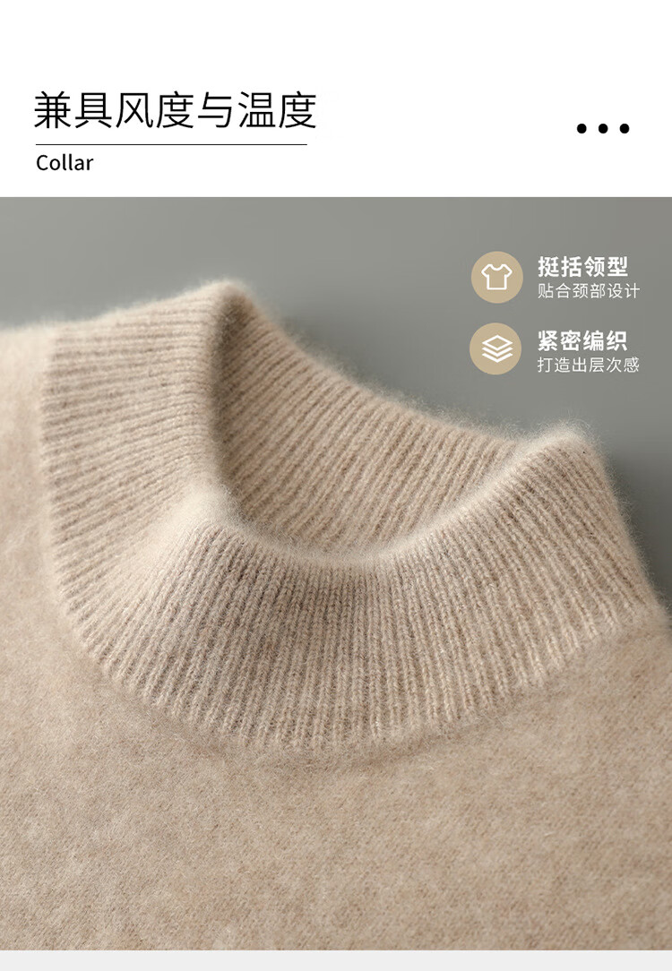 ROMON high-end first-line ready-to-wear pure wool sweater men's autumn and winter half turtleneck thickened warm pullover sweater loose bottoming shirt camel half turtleneck-826 XL