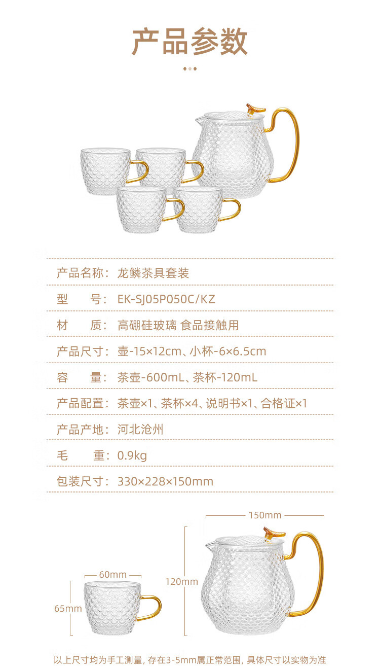 Corning 5-piece heat-resistant glass tea set teapot teacup 1 pot 4-cup tea set Dragon scale tea set