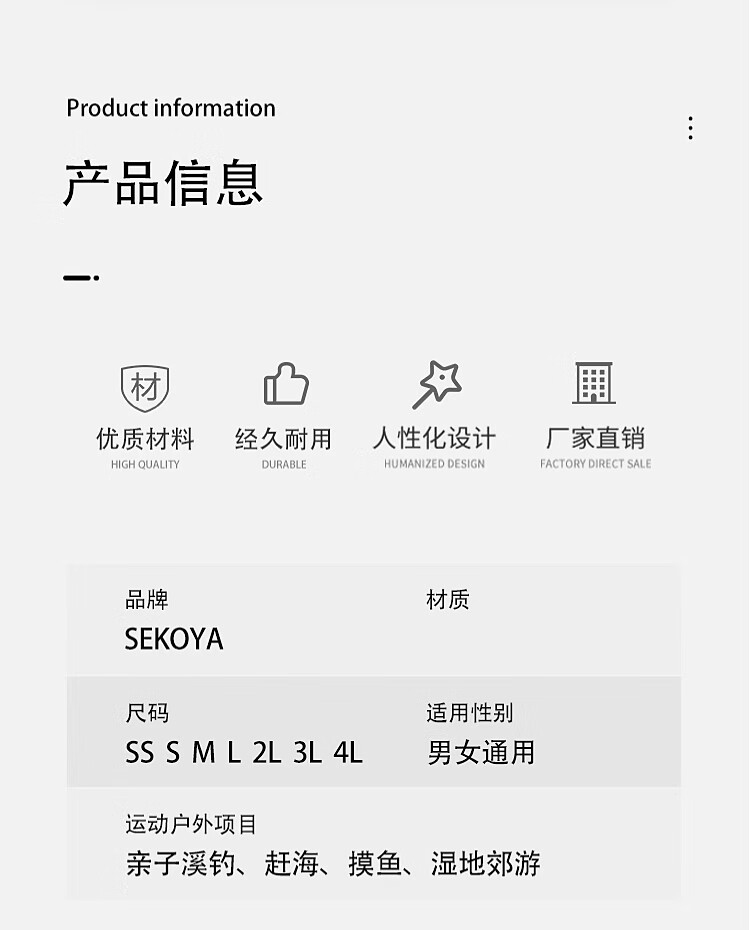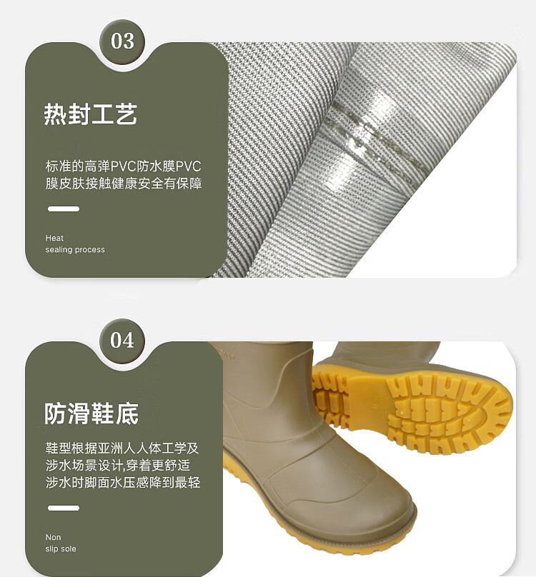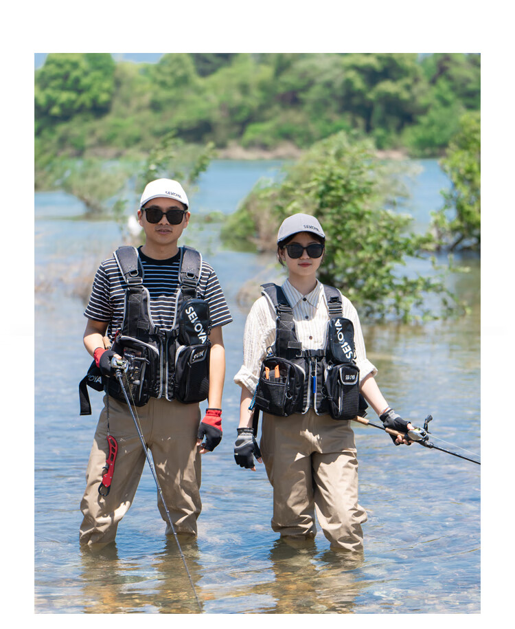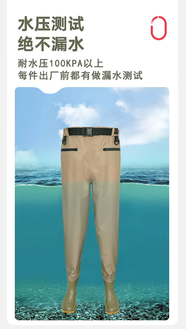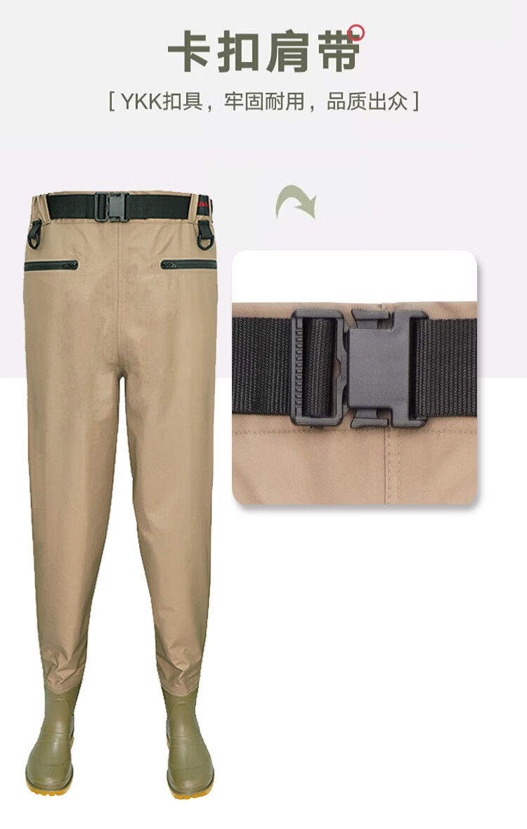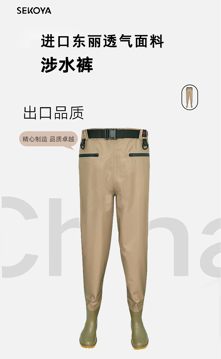 SEKOYA waist-length breathable fishing clothing wading pants Luya equipment stream fishing one-piece waterproof rain pants for the sea wear-resistant lower body Khaki (6006) L (shoe size 42)