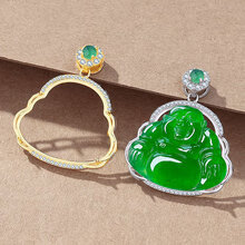 Tanhai s925 sterling silver luxury platinum Buddha pendant empty holder emerald Maitreya Buddha statue rose gold pendant holder edge 18*28*25 sterling silver 18K gold