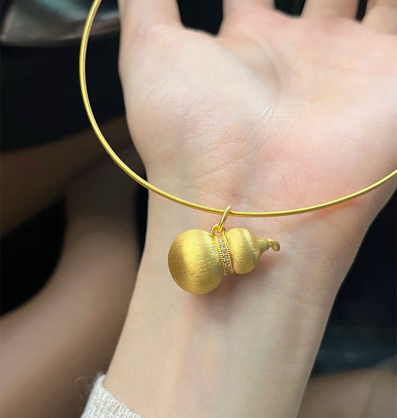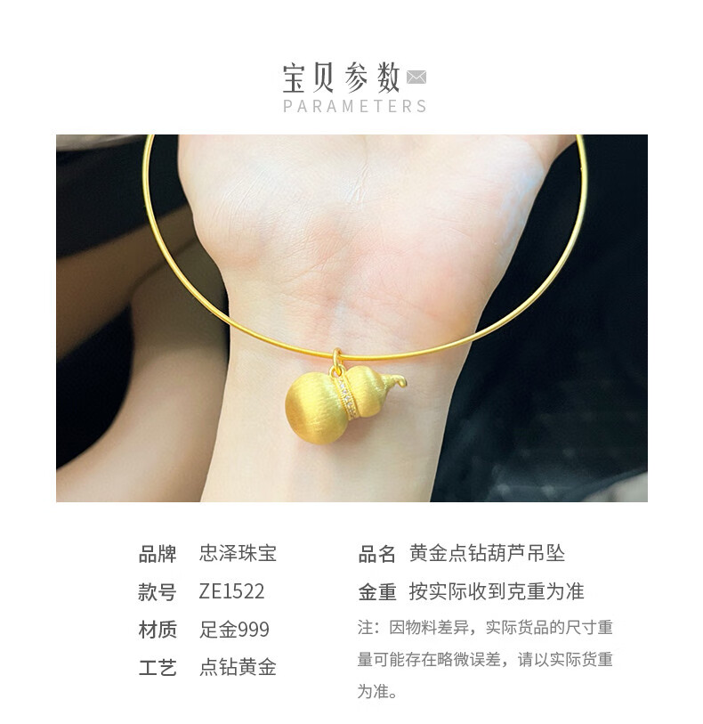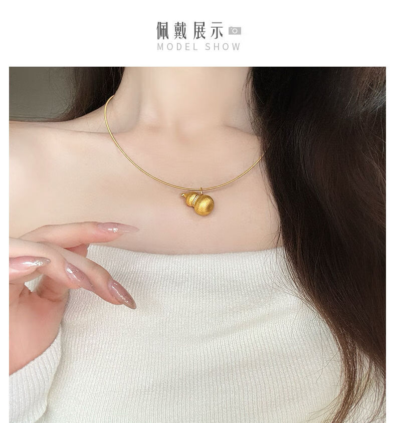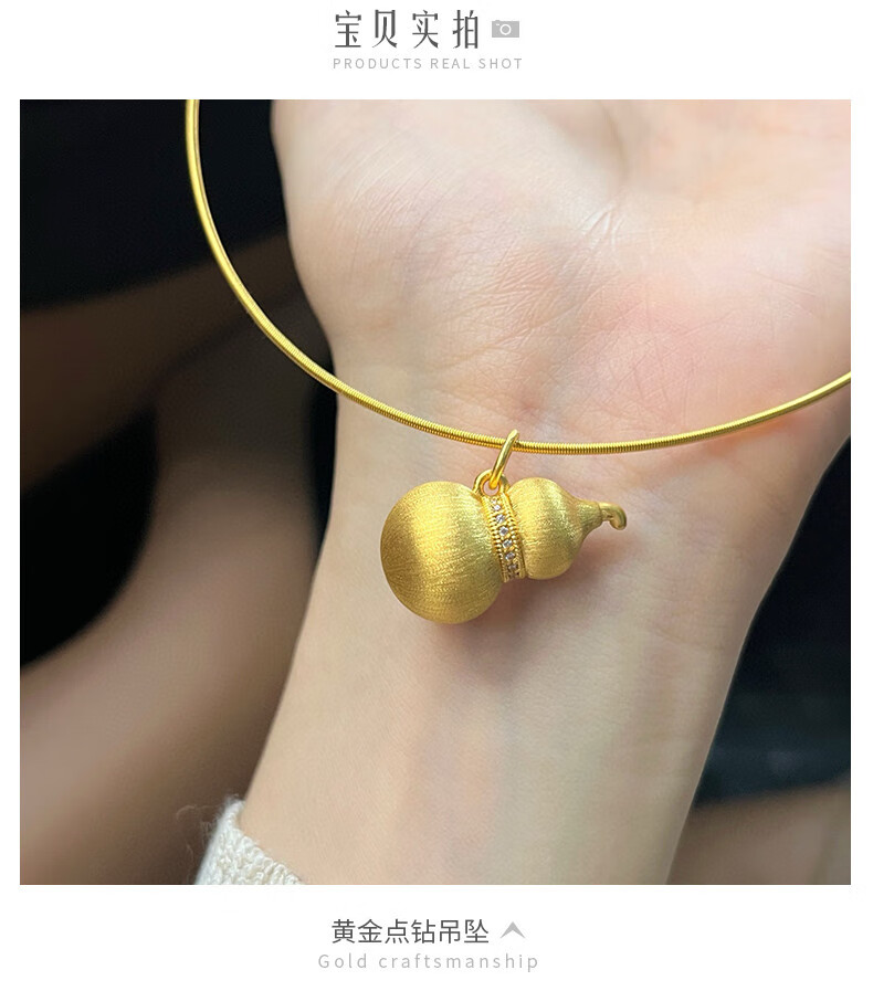 Tanhai Pure Gold 999 Points Diamond Brushed Fulu Gourd Pendant Gold Stone Clavicle Necklace Women's Necklace for Your Girlfriend The gold gourd pendant weighs about 2.65 grams