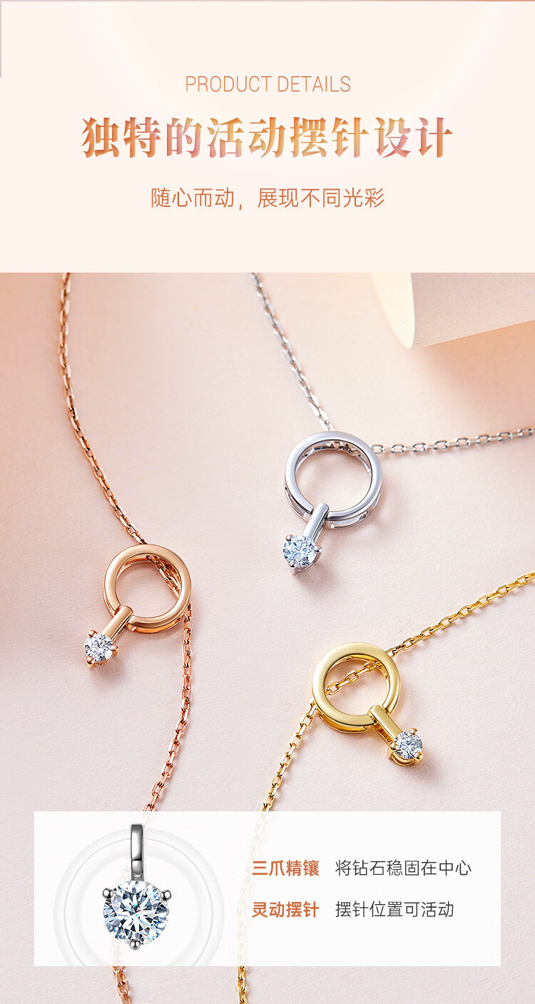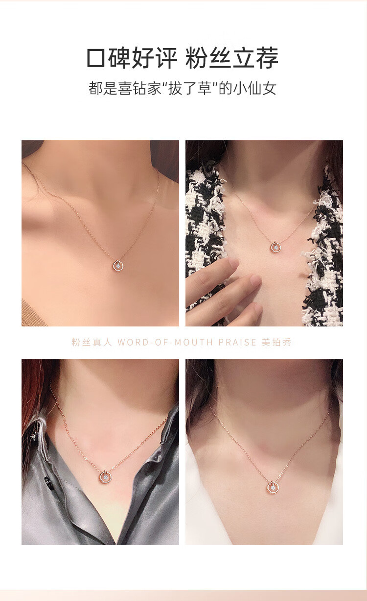 Tanhaixi Diamond Time Lover Series Diamond Necklace for Women 18K Gold Rose Gold Real Diamond Pendant Clavicle Chain Birthday Gift I-J/Light White Not Graded Below 20 Points White 18K Gold 13 Points
