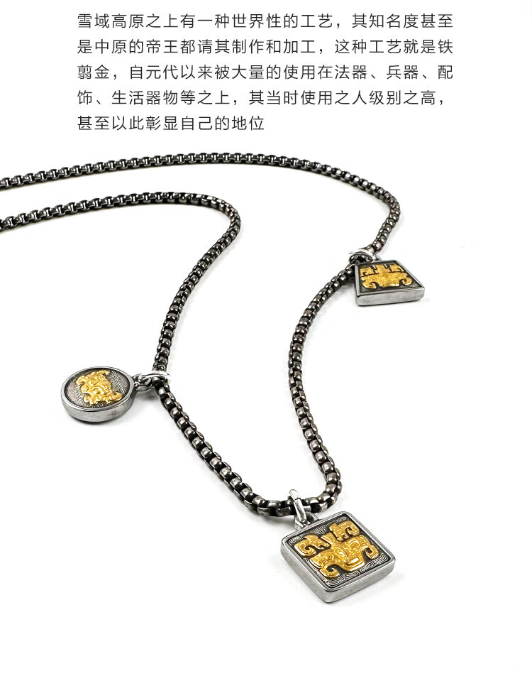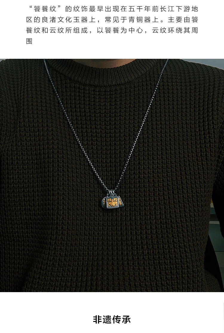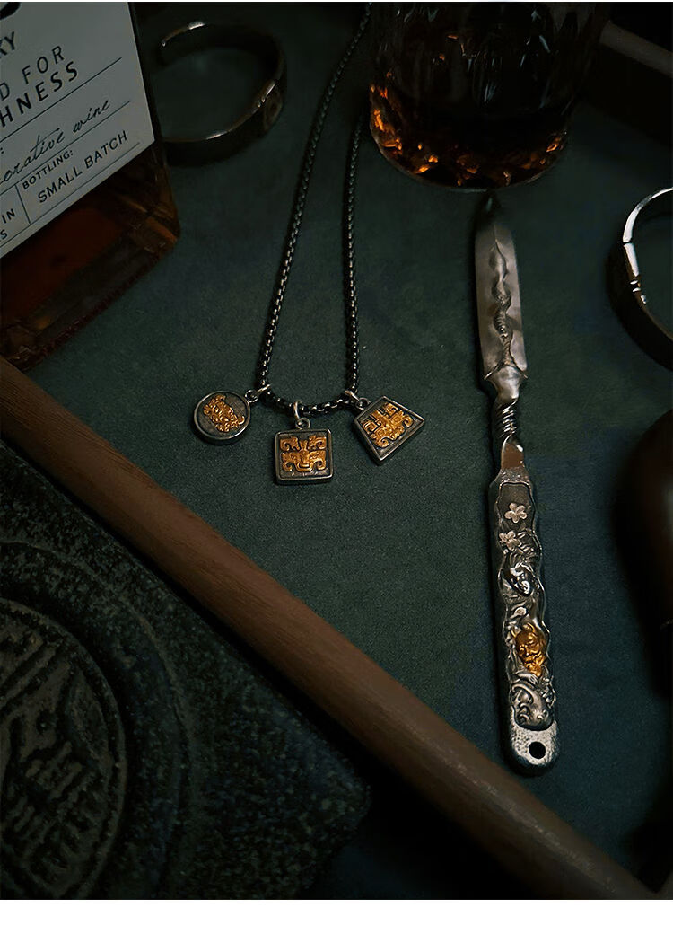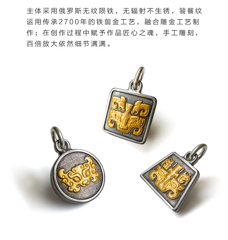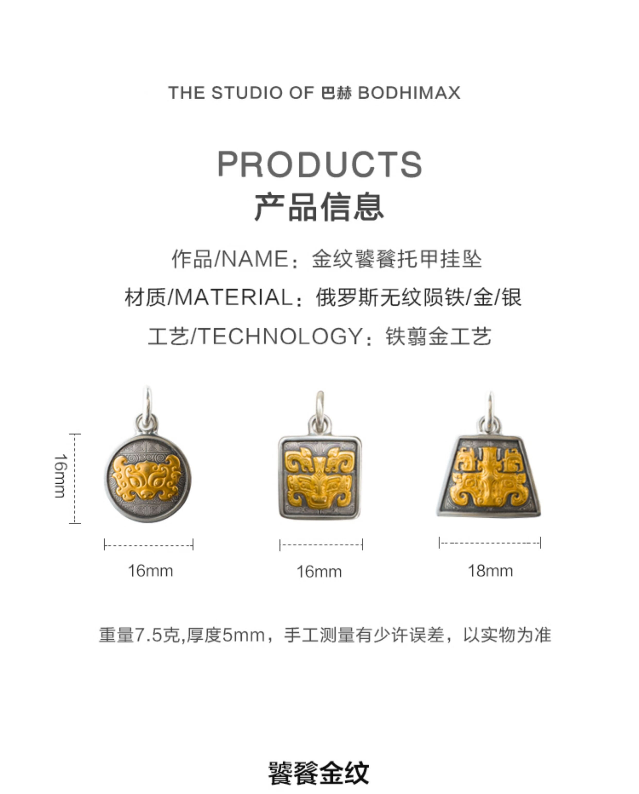 Tanhai Studio National Intangible Cultural Heritage Ancient Iron Jianjin Craft Carved Gold 24K Gold Meteor Iron Taotie Pattern Pendant Pendant Type A