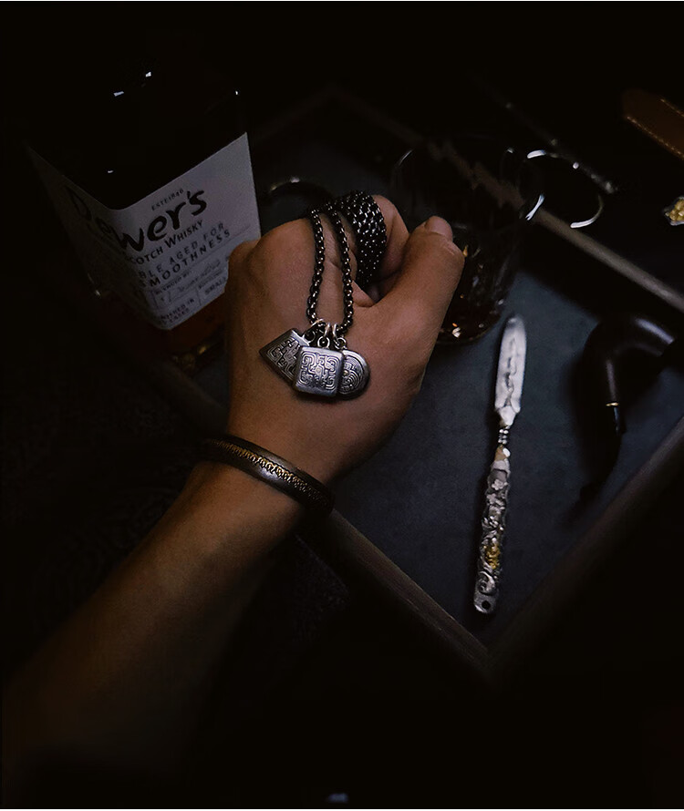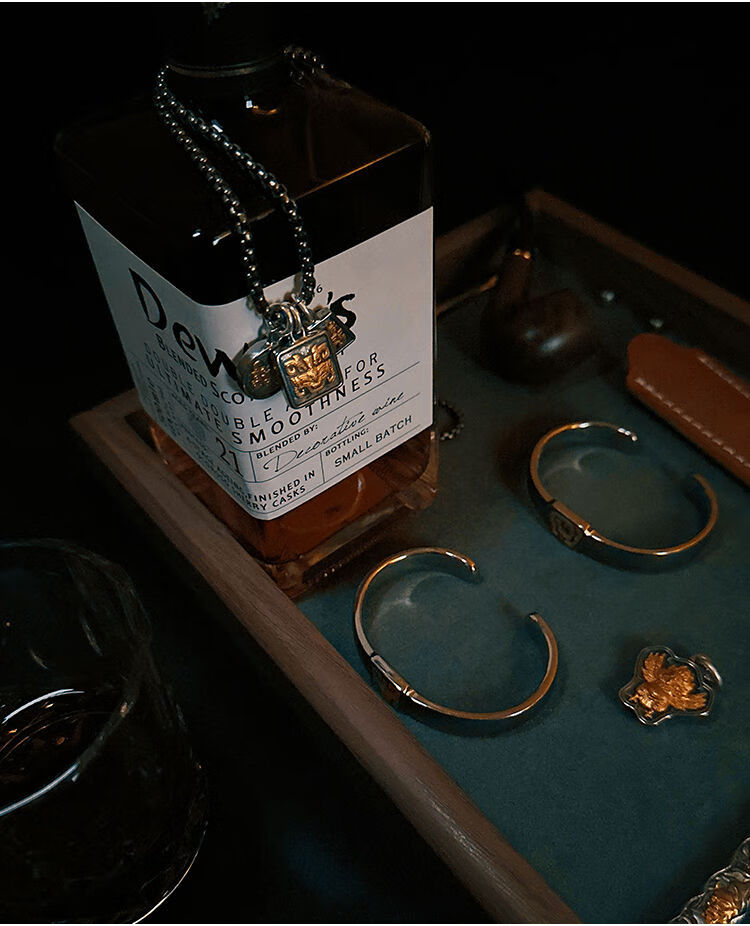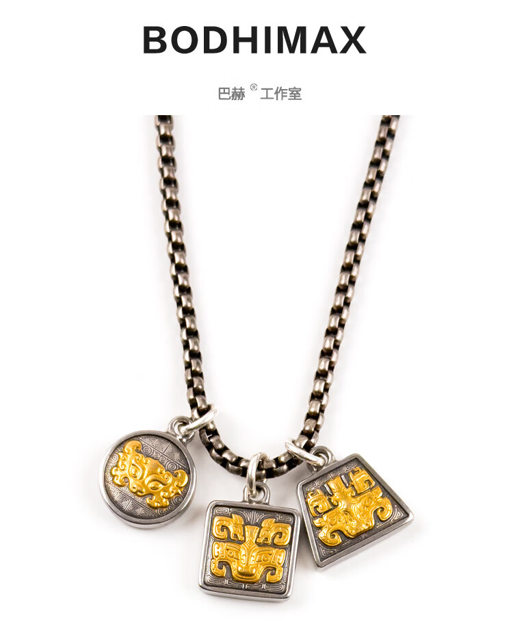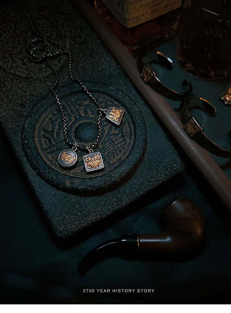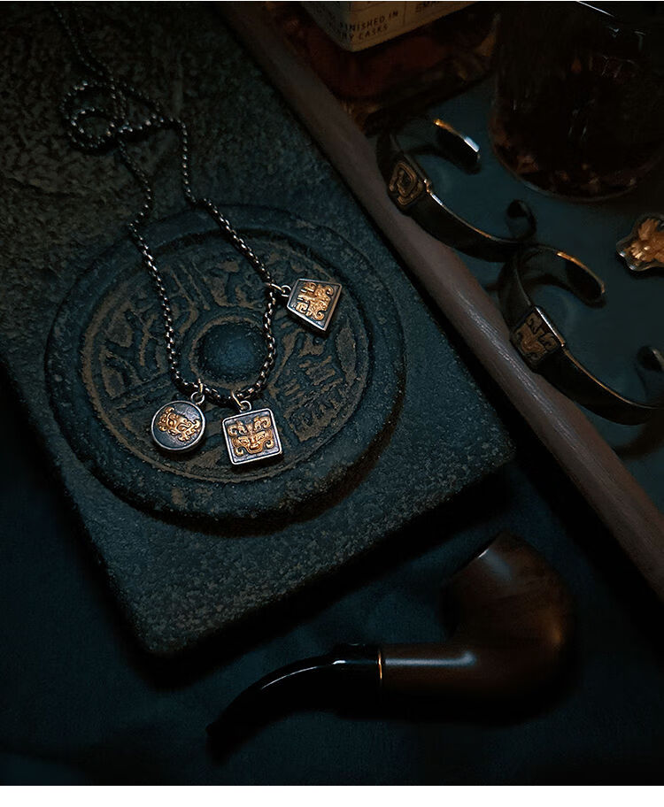 Tanhai Studio National Intangible Cultural Heritage Ancient Iron Jianjin Craft Carved Gold 24K Gold Meteor Iron Taotie Pattern Pendant Pendant Type A